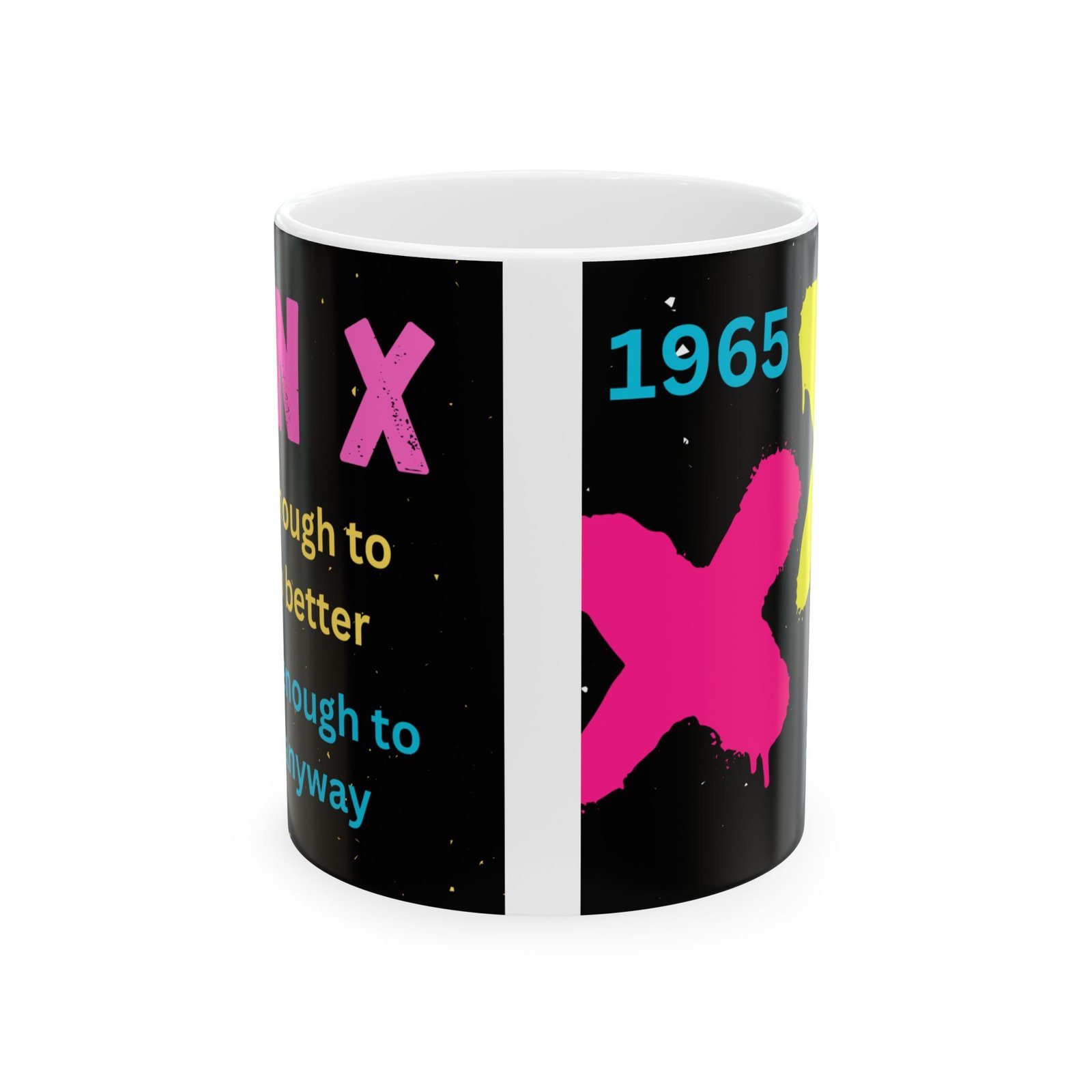 Start your day with a smile and a touch of nostalgia! This 11 oz ceramic mug features the witty quote “Old Enough to Know Better, Young Enough to Do It Anyway,” making it the perfect gift or personal pick-me-up for any Generation X coffee lover.