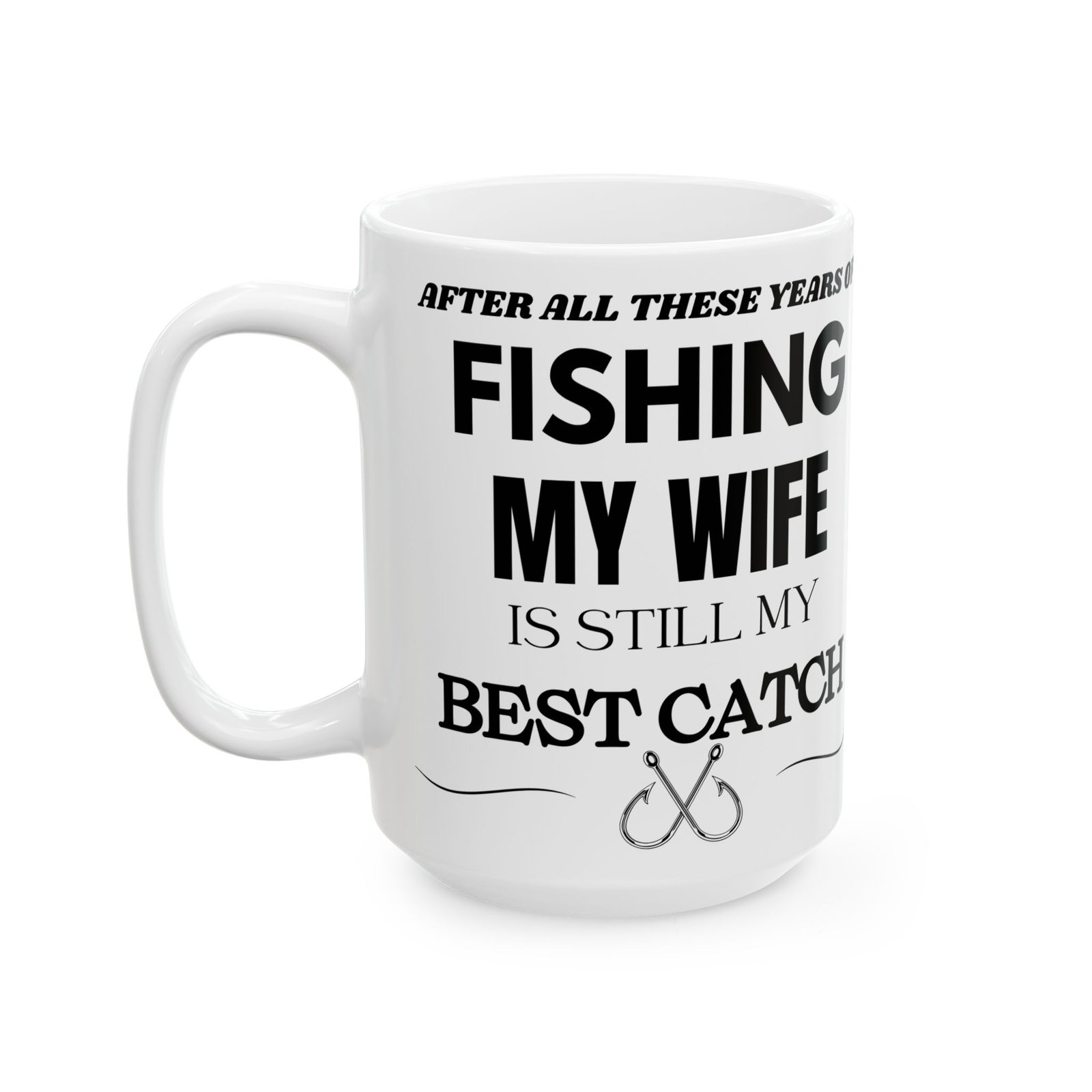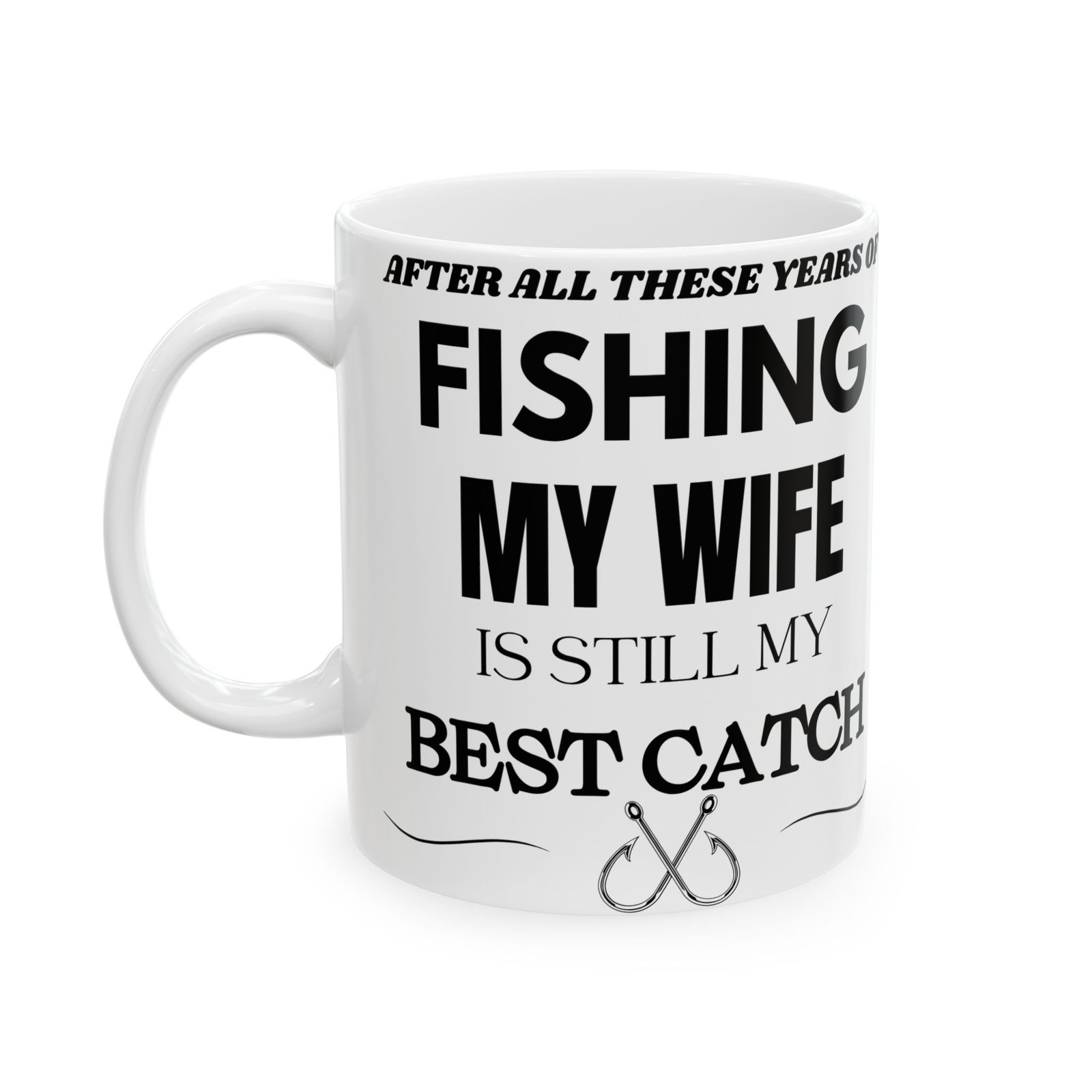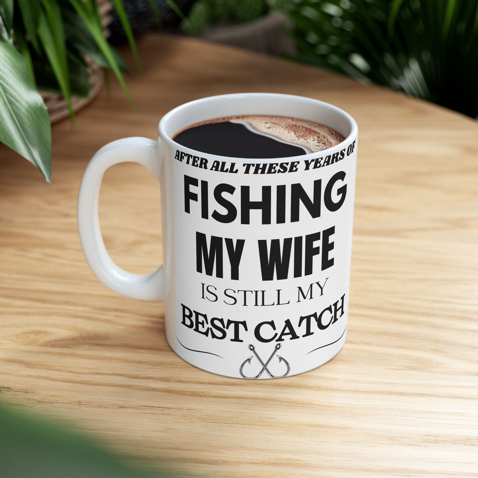 Celebrate your best catch with our “After All These Years of Fishing, My Wife Is Still My Best Catch” mug! Whether you’re an avid fisherman or just love a good laugh, this mug combines humor and sweetness in one thoughtful design. Featuring a playful hooks and fishing theme, it’s perfect for sipping your morning coffee or tea while thinking of your favorite fishing buddy—your wife! Made from high-quality ceramic, it’s both microwave and dishwasher safe, making it the perfect practical yet sentimental gift for any occasion.