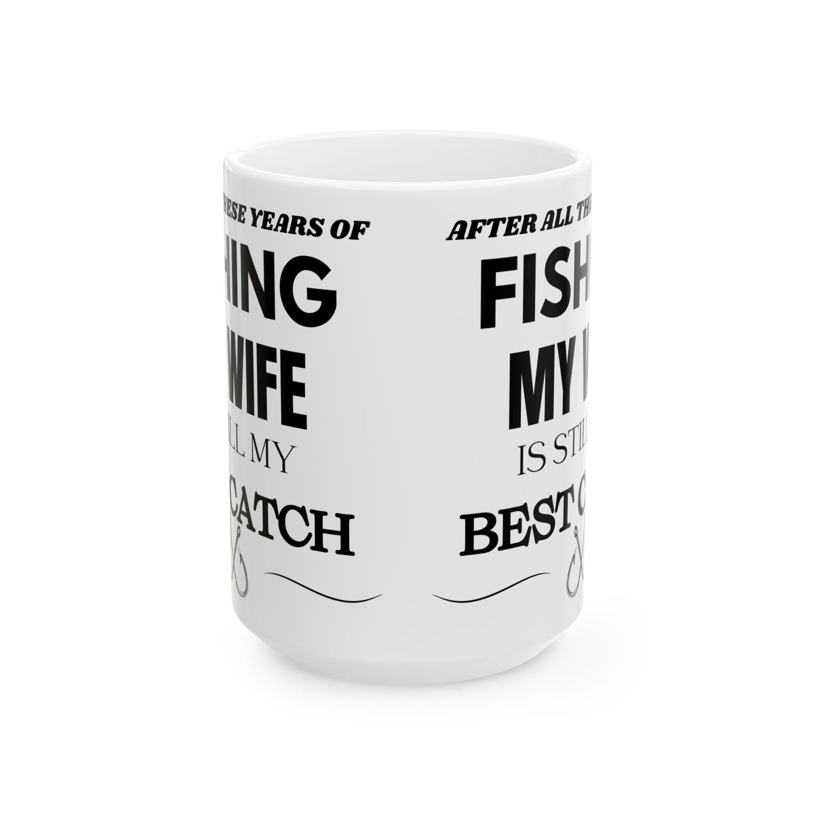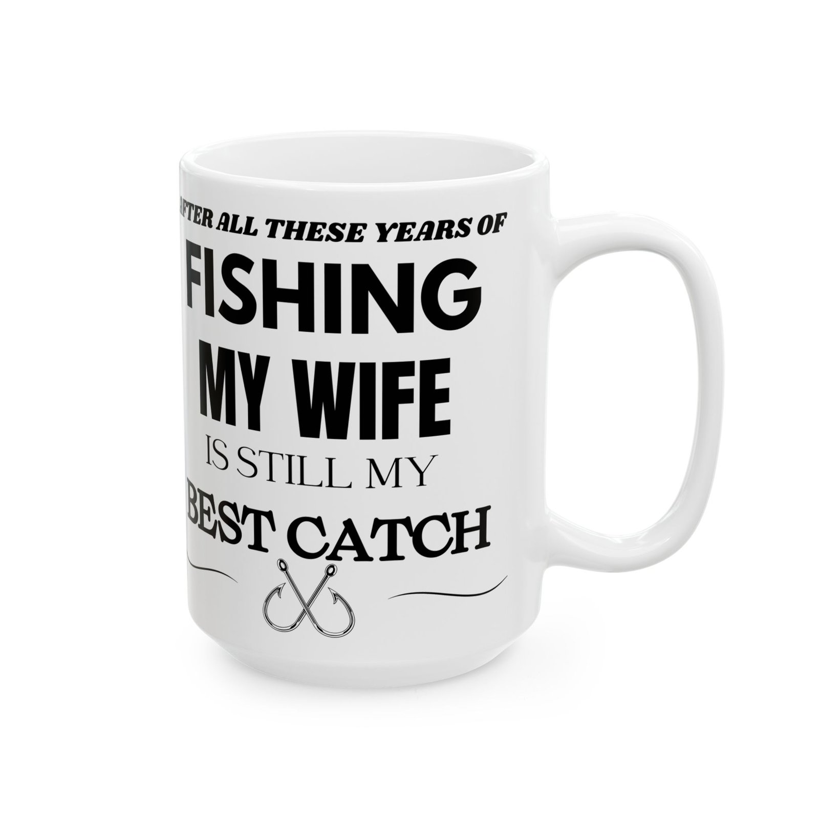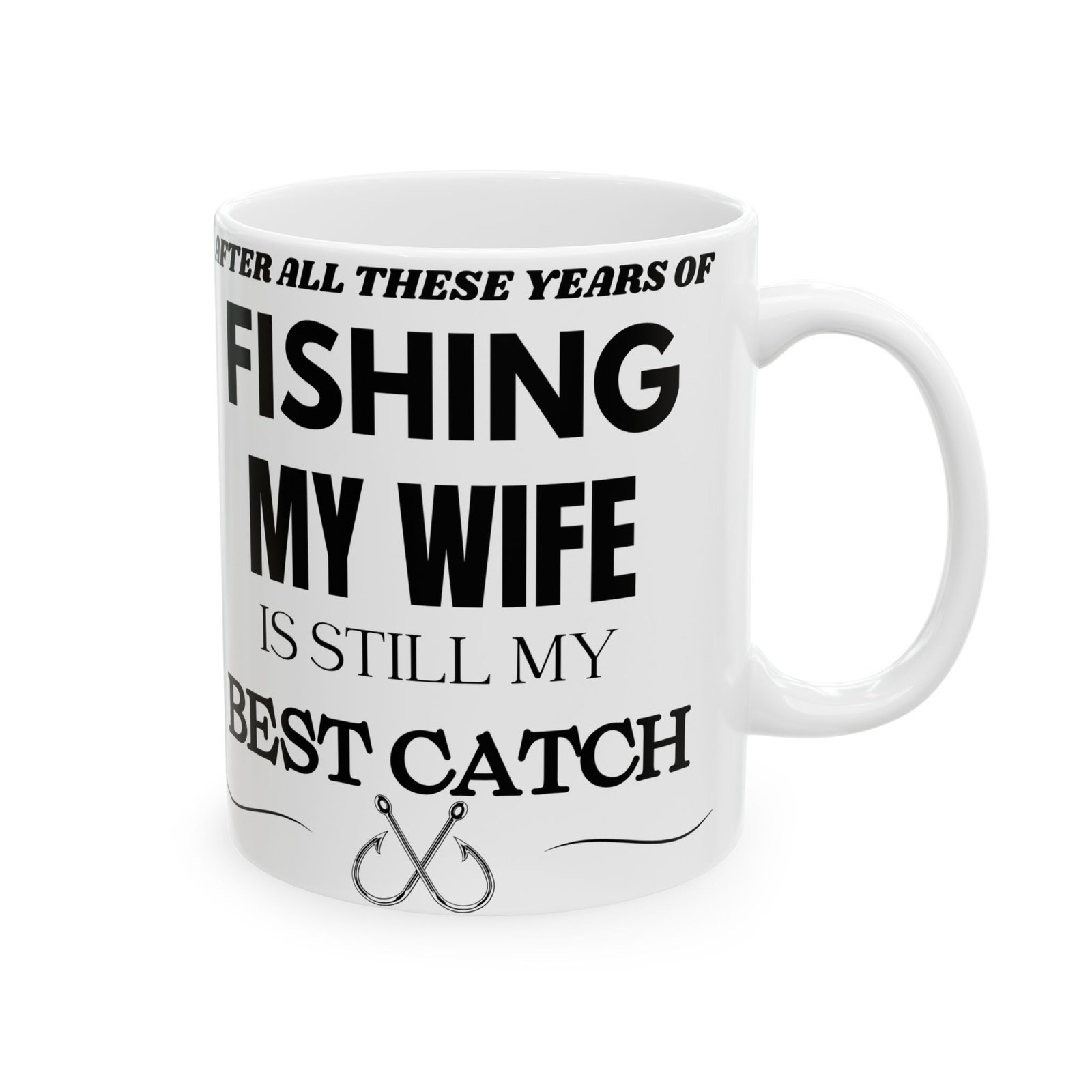 Celebrate your best catch with our “After All These Years of Fishing, My Wife Is Still My Best Catch” mug! Whether you’re an avid fisherman or just love a good laugh, this mug combines humor and sweetness in one thoughtful design. Featuring a playful hooks and fishing theme, it’s perfect for sipping your morning coffee or tea while thinking of your favorite fishing buddy—your wife! Made from high-quality ceramic, it’s both microwave and dishwasher safe, making it the perfect practical yet sentimental gift for any occasion.