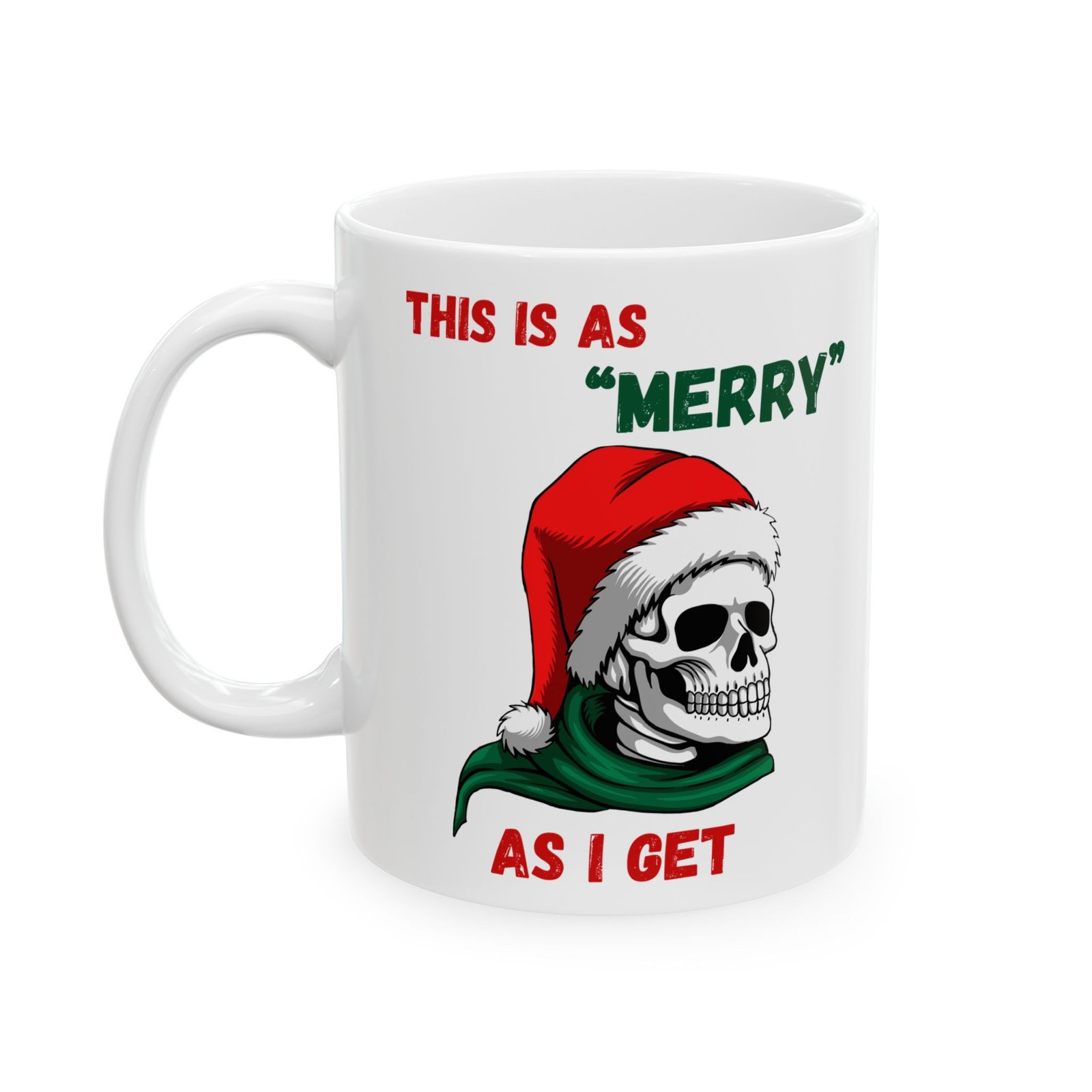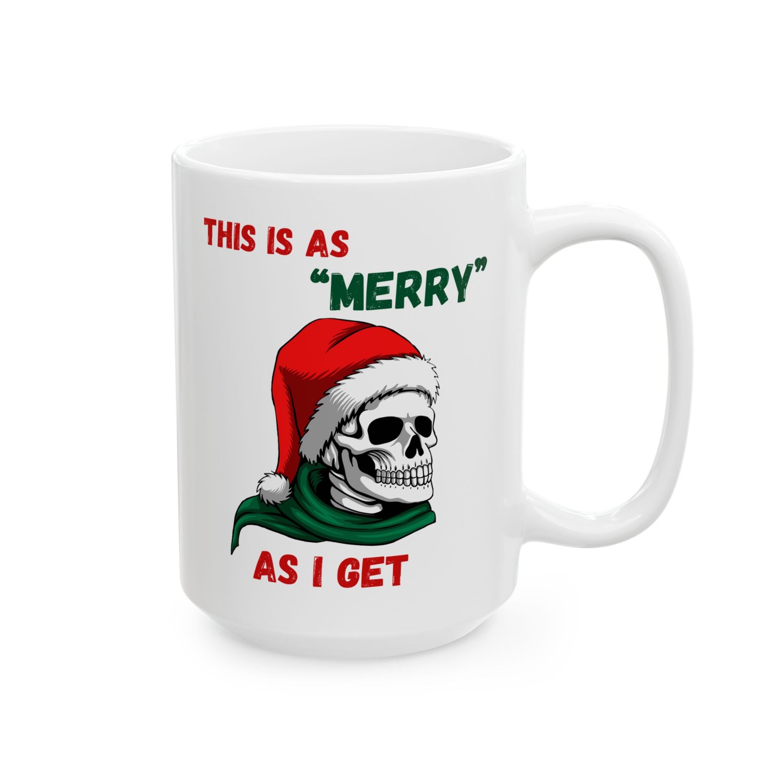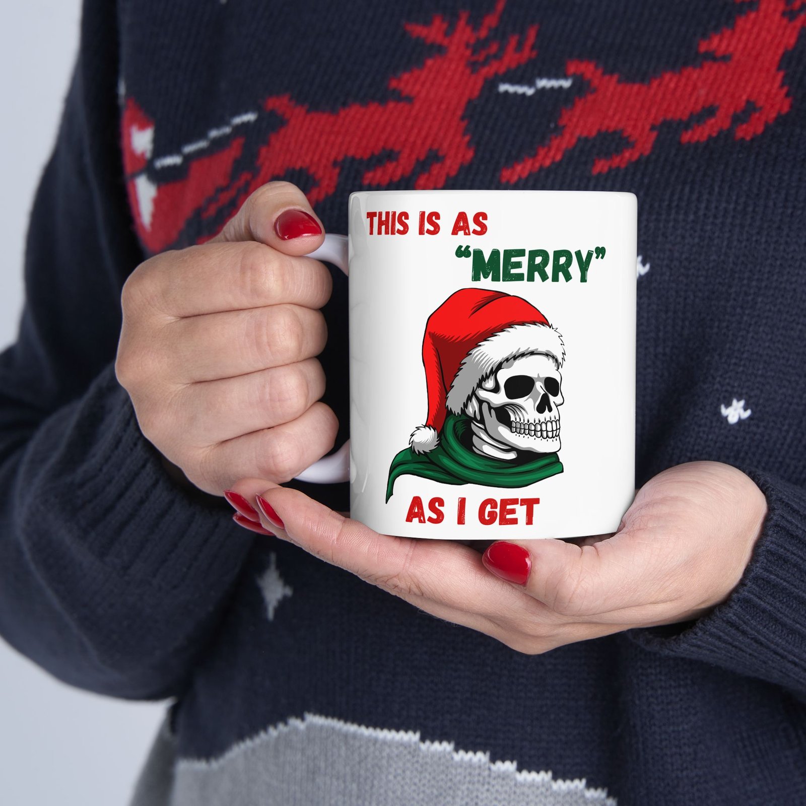 Bah Humbug Skeleton Christmas Mug – ‘This Is as Merry as I Get’ – Funny Holiday Coffee Cup, 11oz & 15oz Ceramic Mug