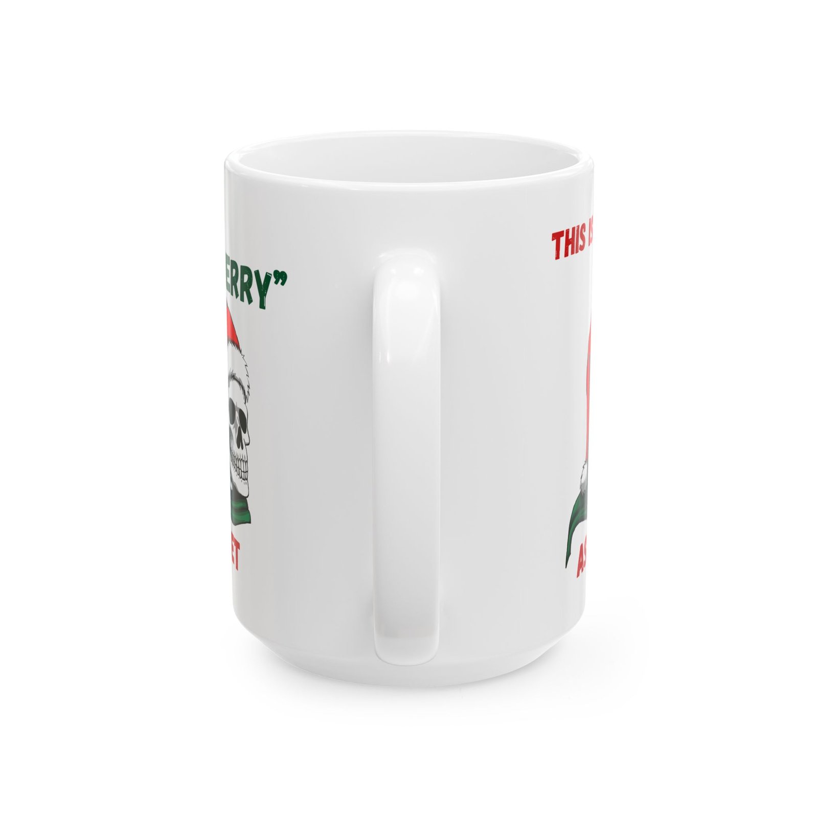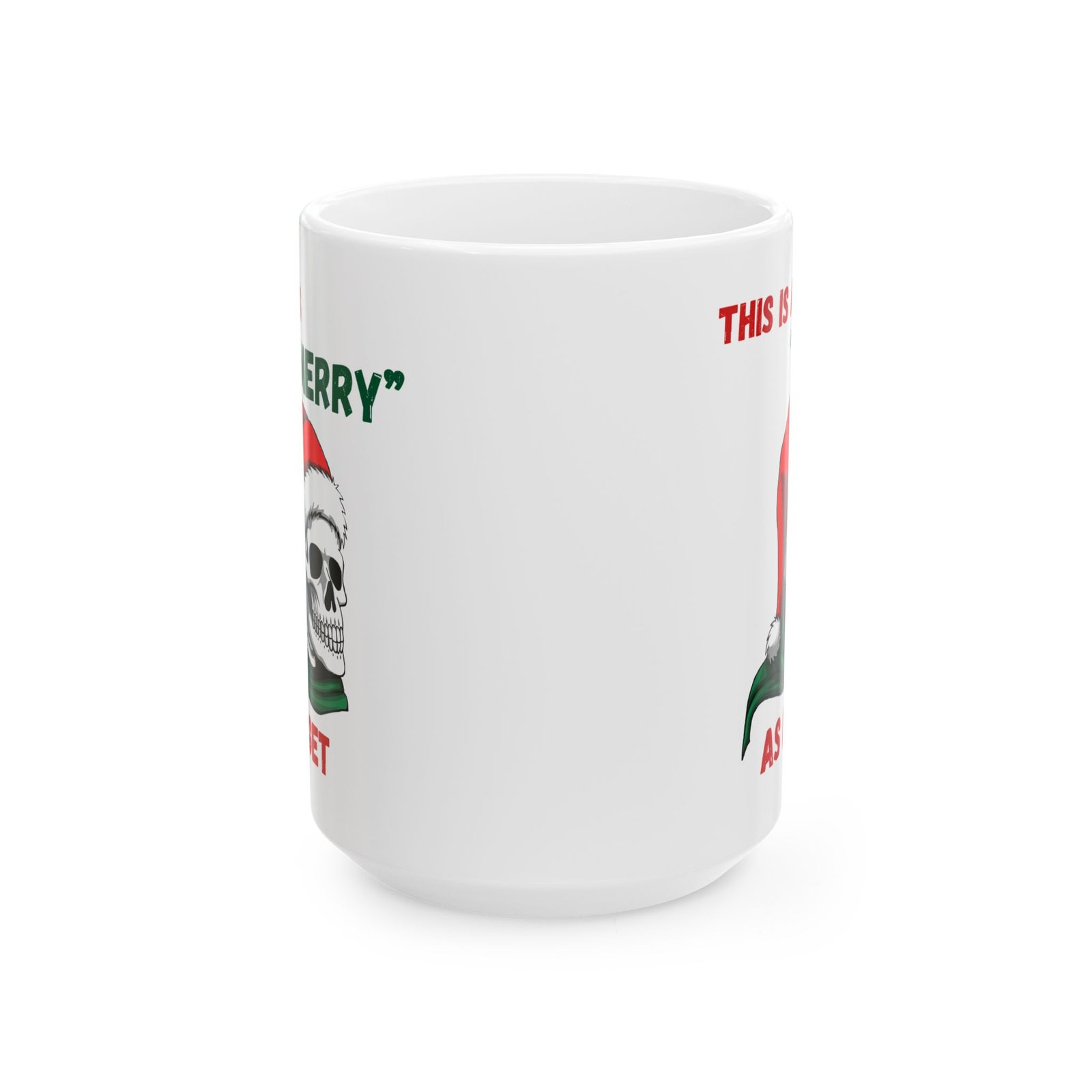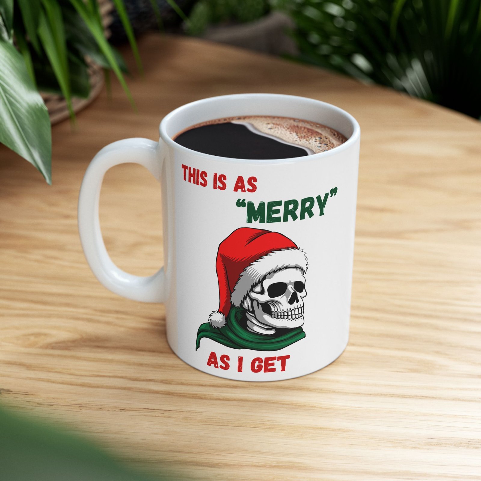 Bah Humbug Skeleton Christmas Mug – ‘This Is as Merry as I Get’ – Funny Holiday Coffee Cup, 11oz & 15oz Ceramic Mug