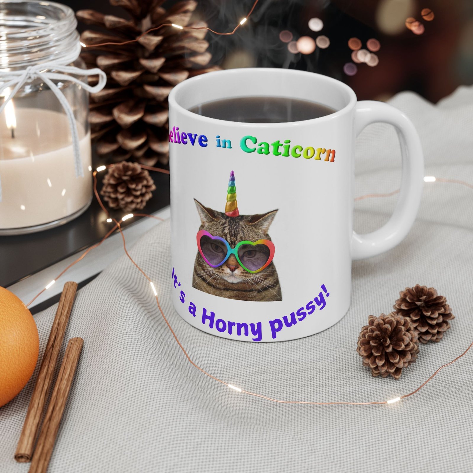Believe in Caticorn Mug – Funny & Cheeky Cat Unicorn Design – ‘It’s a Horny Pussy’ Humorous Coffee Cup” Ceramic Mug,