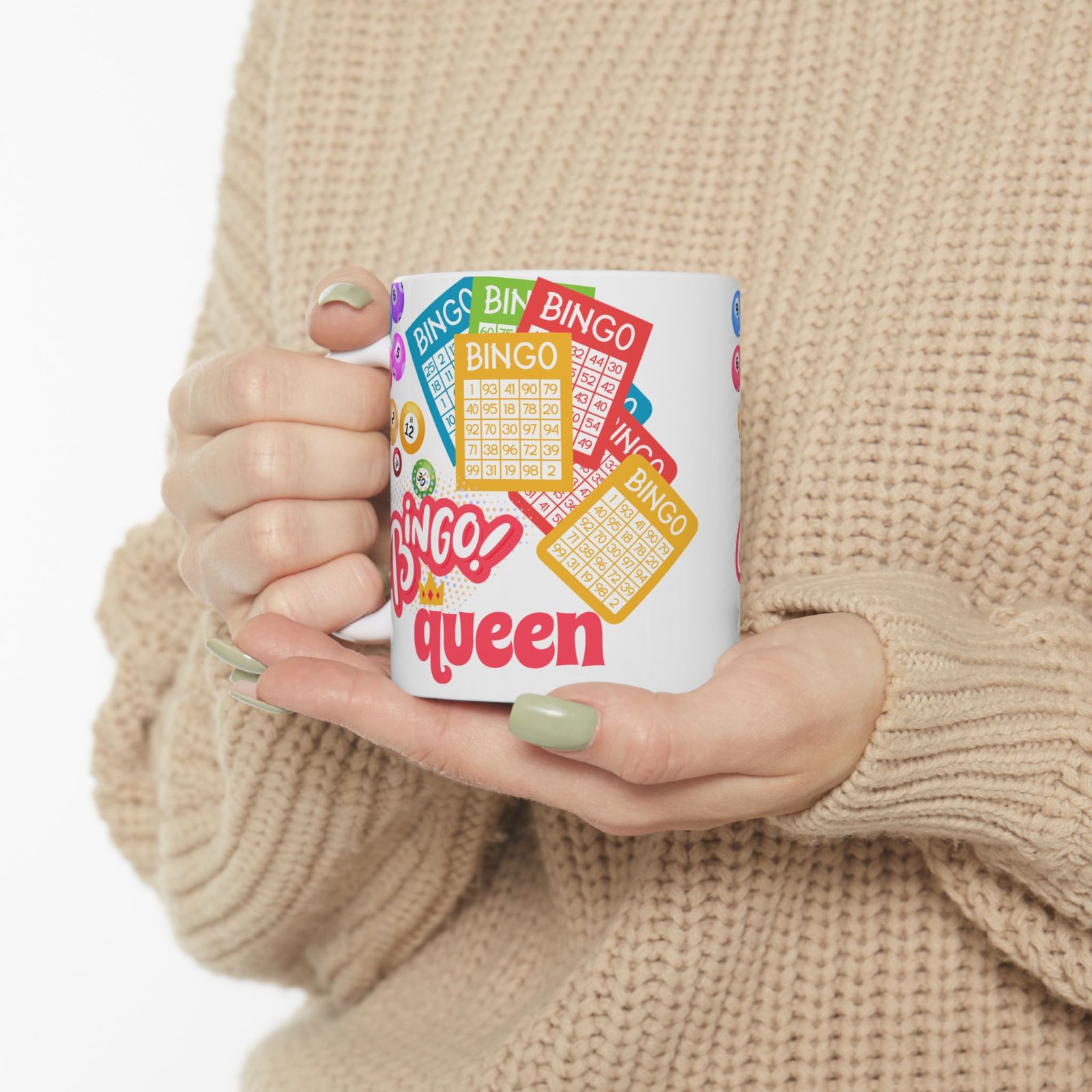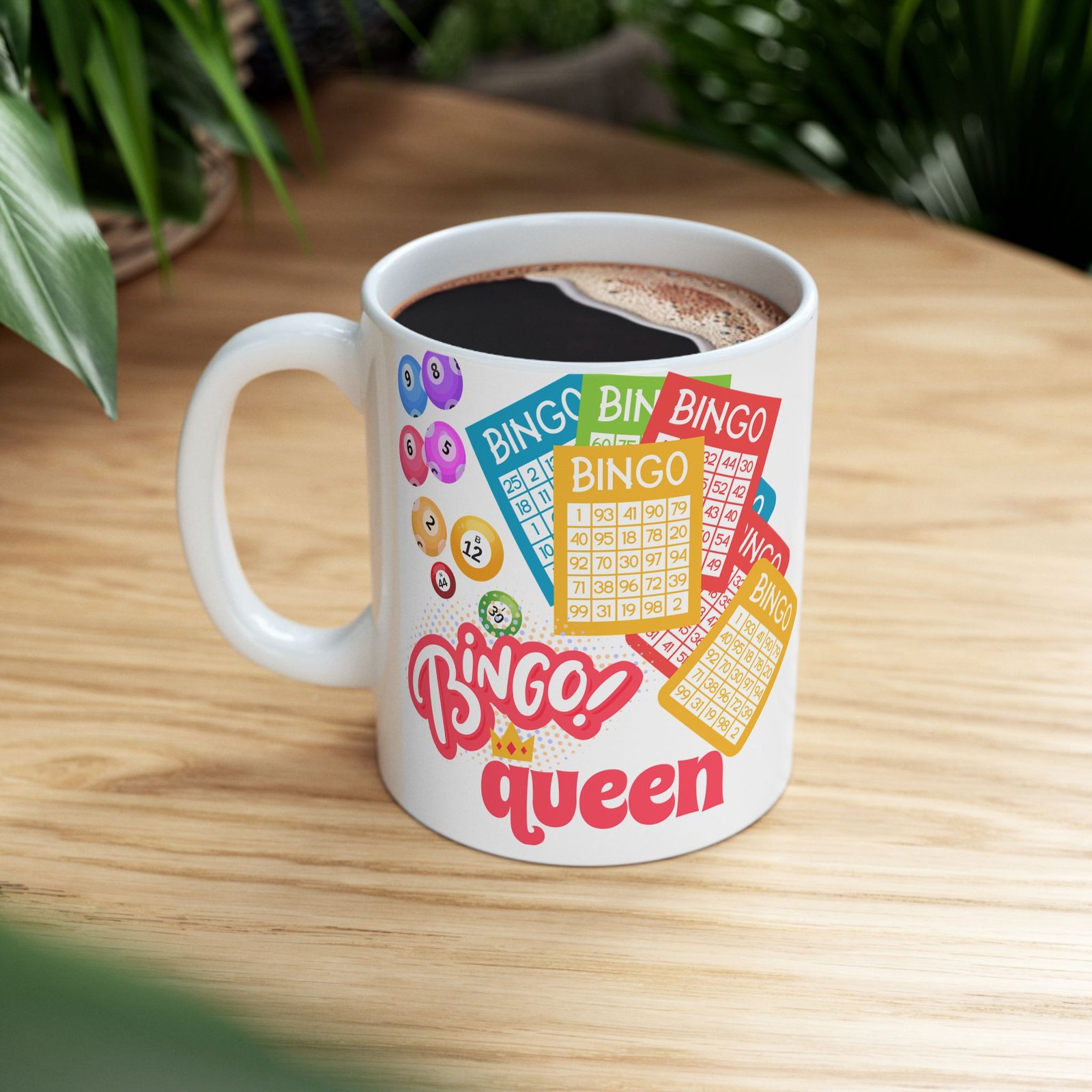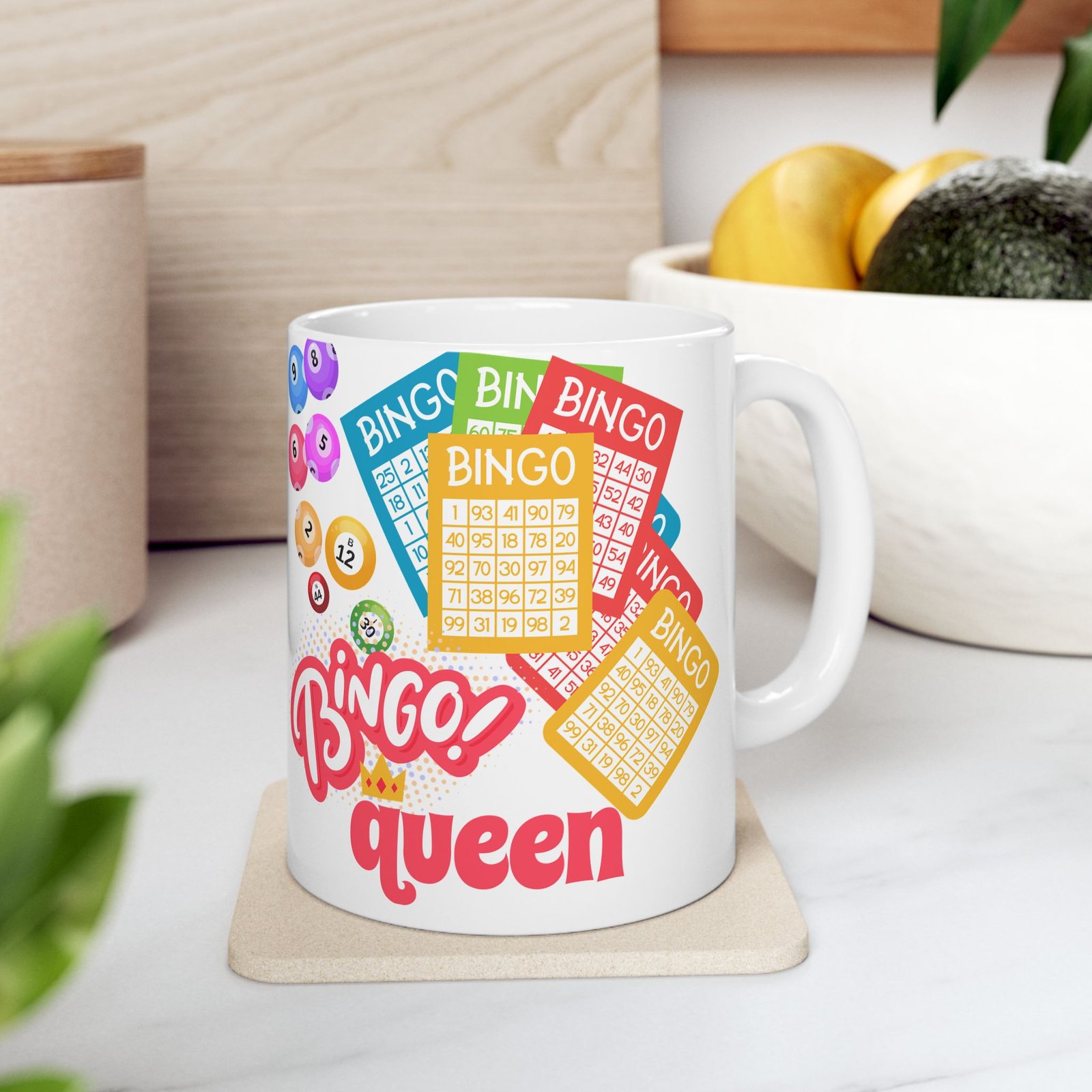 Celebrate your love for bingo with this fun and colorful “Bingo Queen” mug! Featuring eye-catching illustrations of bingo cards and brightly colored balls, this mug is for those who enjoy game nights and want to add a touch of fun to their coffee or tea routine. Made from ceramic, it’s designed to be durable and is both microwave and dishwasher safe for everyday convenience. Whether you’re gifting it to a bingo-loving friend or keeping it for yourself, this mug is sure to be a hit and spark conversations at your next game night!