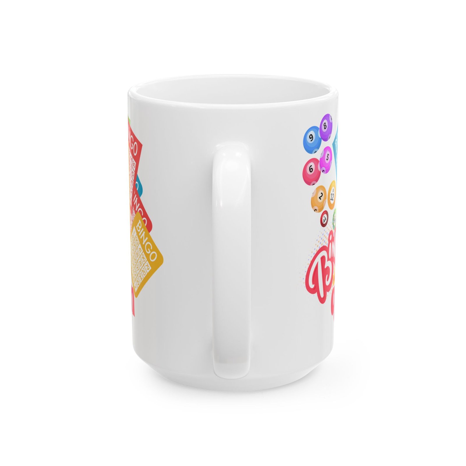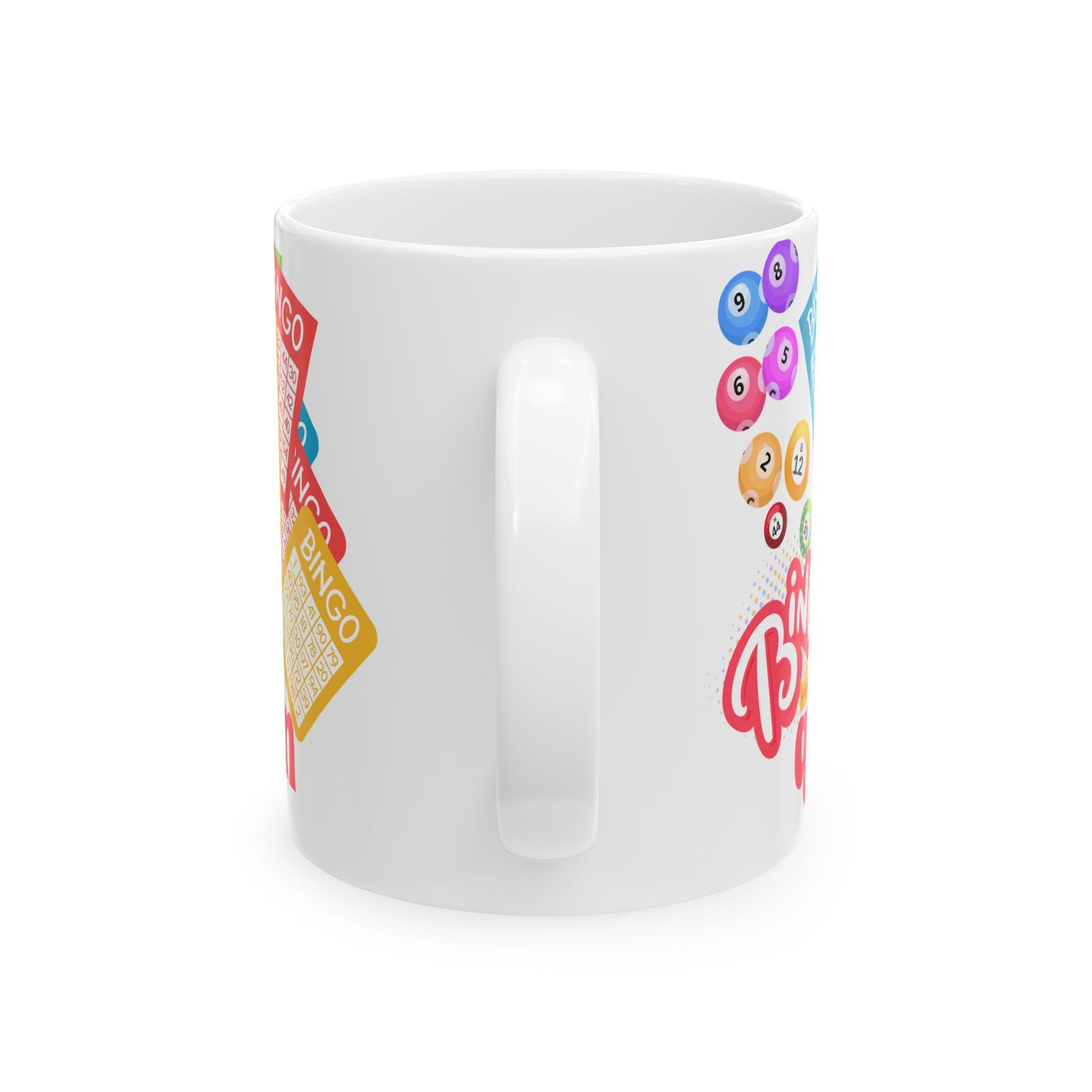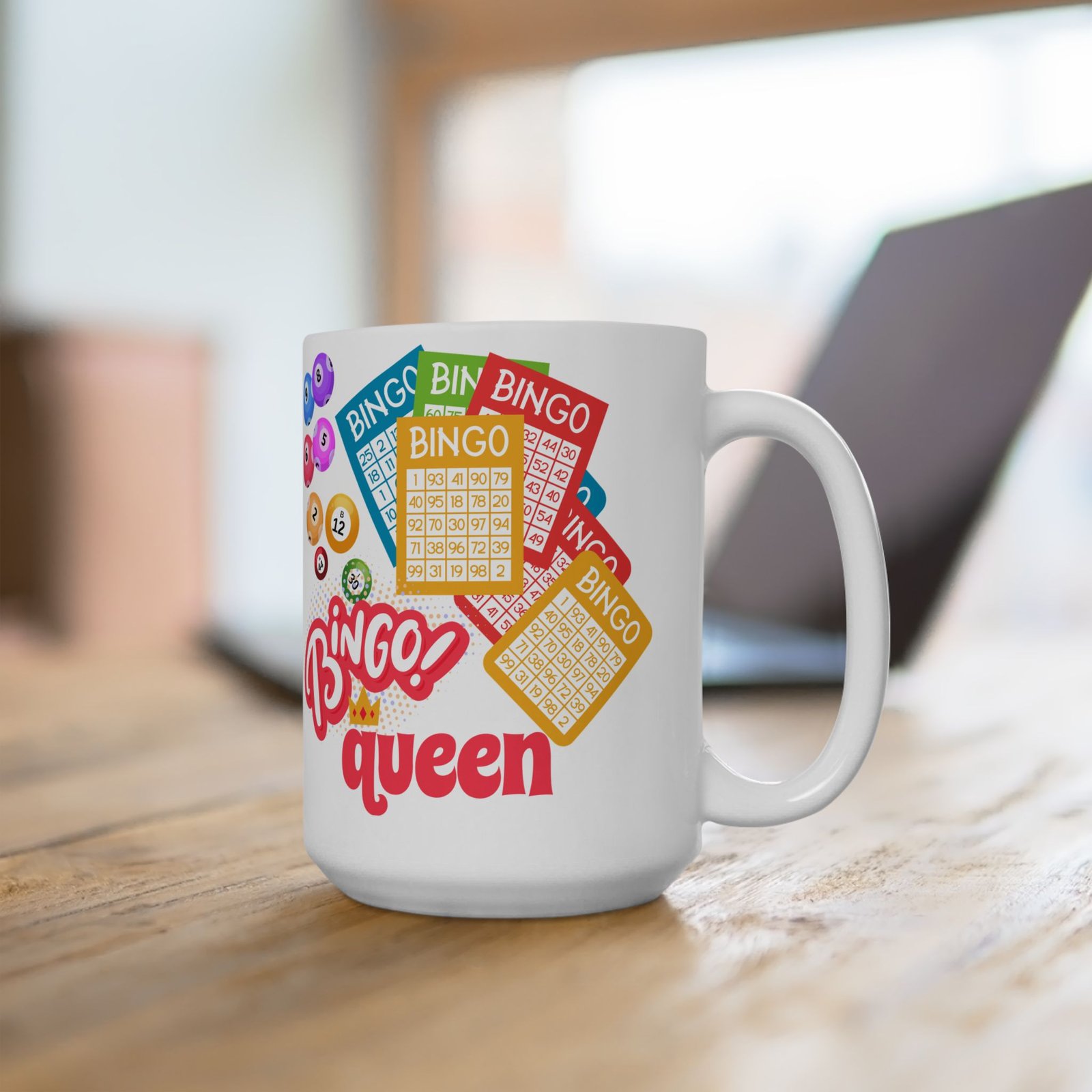 Celebrate your love for bingo with this fun and colorful “Bingo Queen” mug! Featuring eye-catching illustrations of bingo cards and brightly colored balls, this mug is for those who enjoy game nights and want to add a touch of fun to their coffee or tea routine. Made from ceramic, it’s designed to be durable and is both microwave and dishwasher safe for everyday convenience. Whether you’re gifting it to a bingo-loving friend or keeping it for yourself, this mug is sure to be a hit and spark conversations at your next game night!