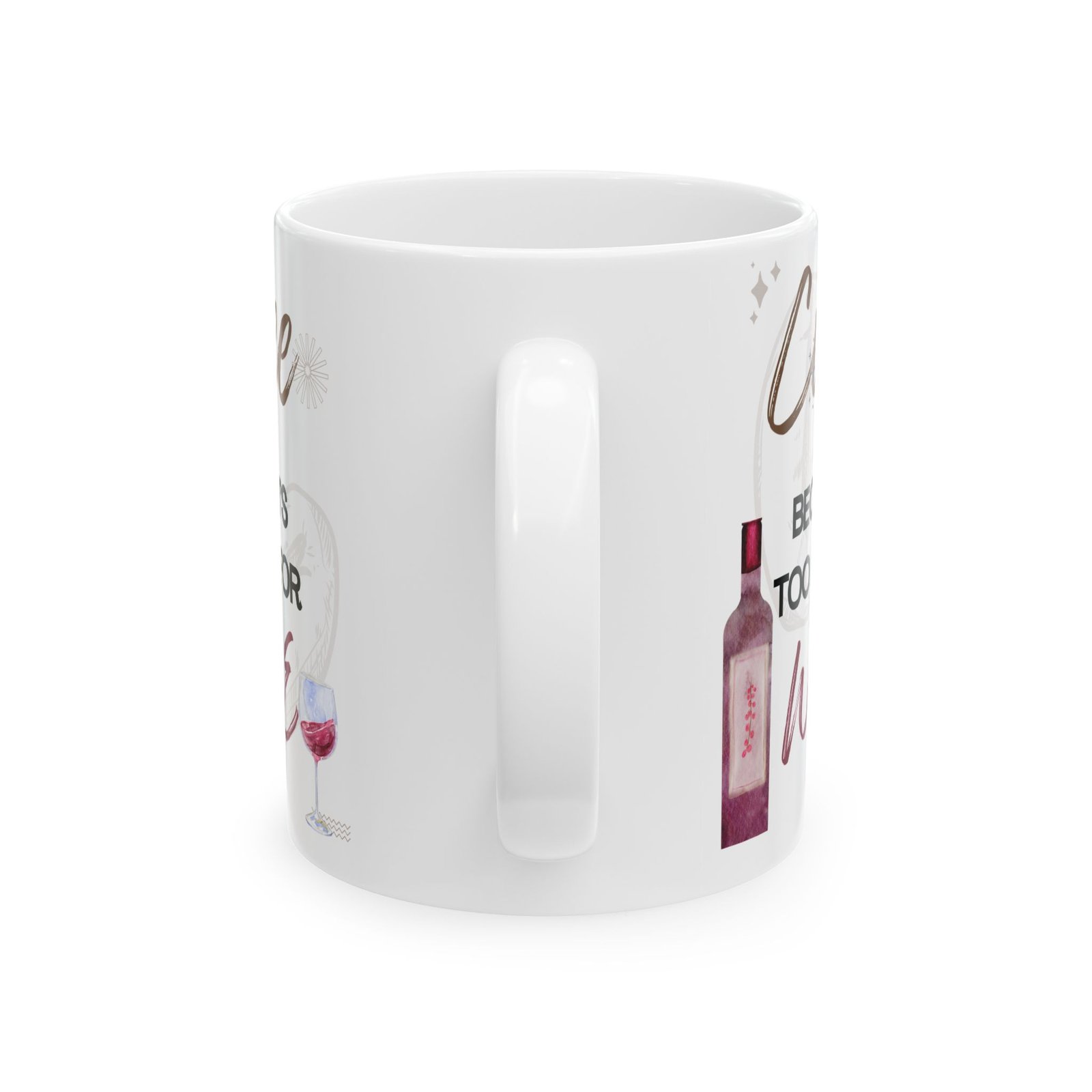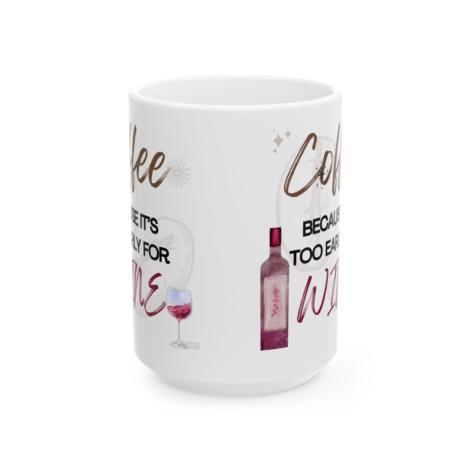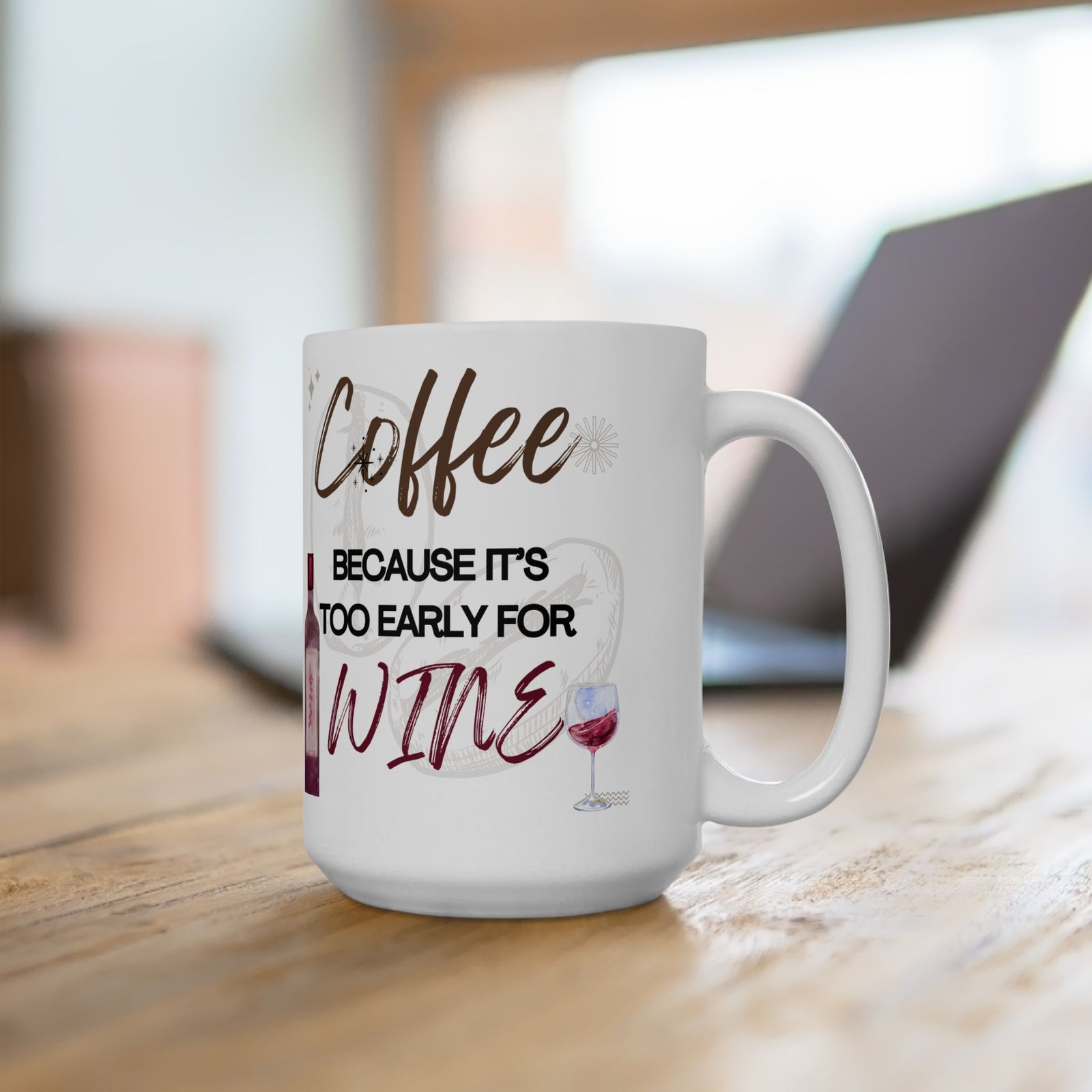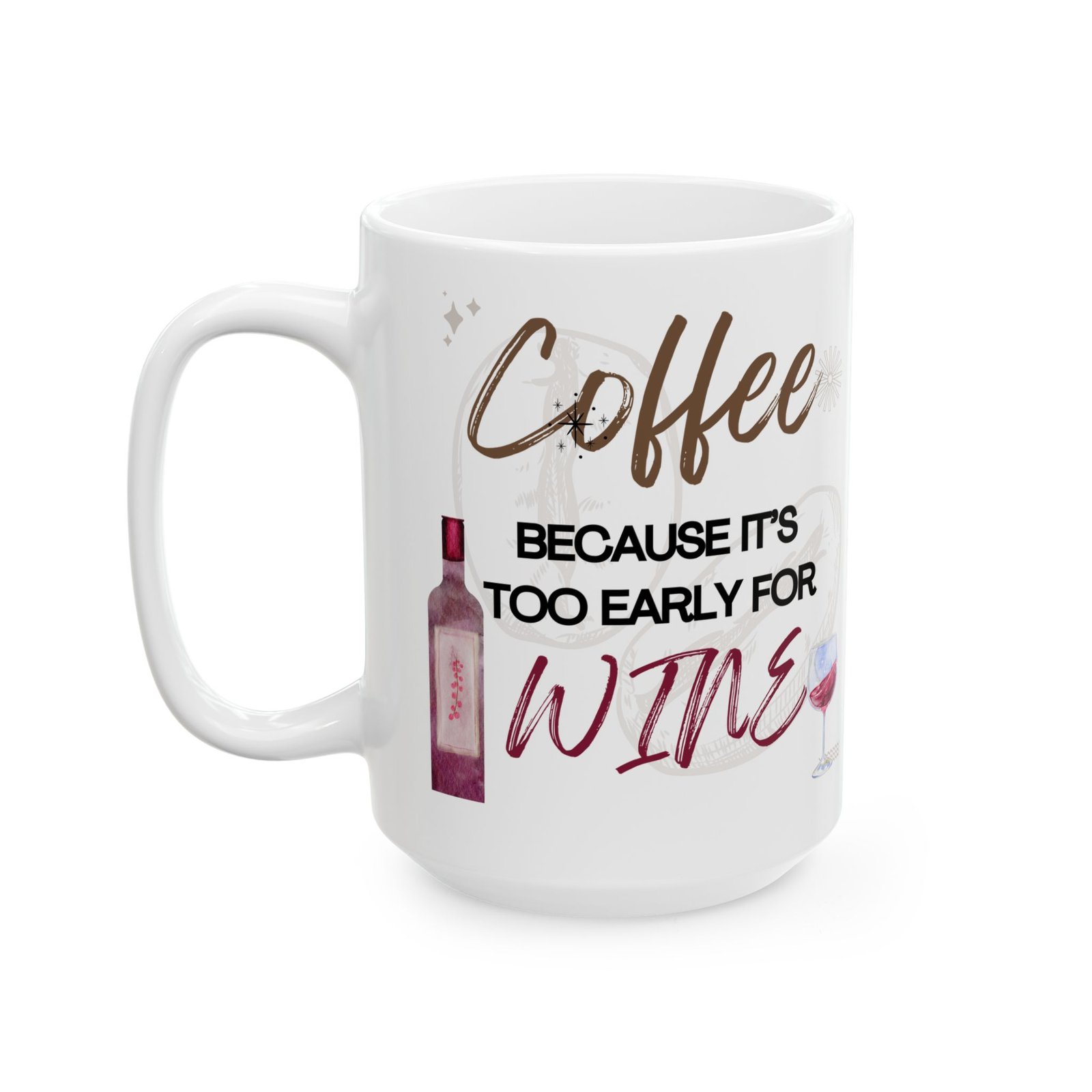 For those who joke that mornings should come with wine but settle for coffee instead, this mug is the match! Featuring the humorous phrase, “Coffee Because It’s Too Early for Wine,” alongside an elegant graphic of a red wine glass and bottle, this mug brings a smile to your face with every sip. Made from ceramic, it’s durable, microwave-safe, and easy to clean in the dishwasher. Whether it’s for yourself or as a gift for a friend who loves both coffee and wine, this mug makes mornings just a bit more fun.