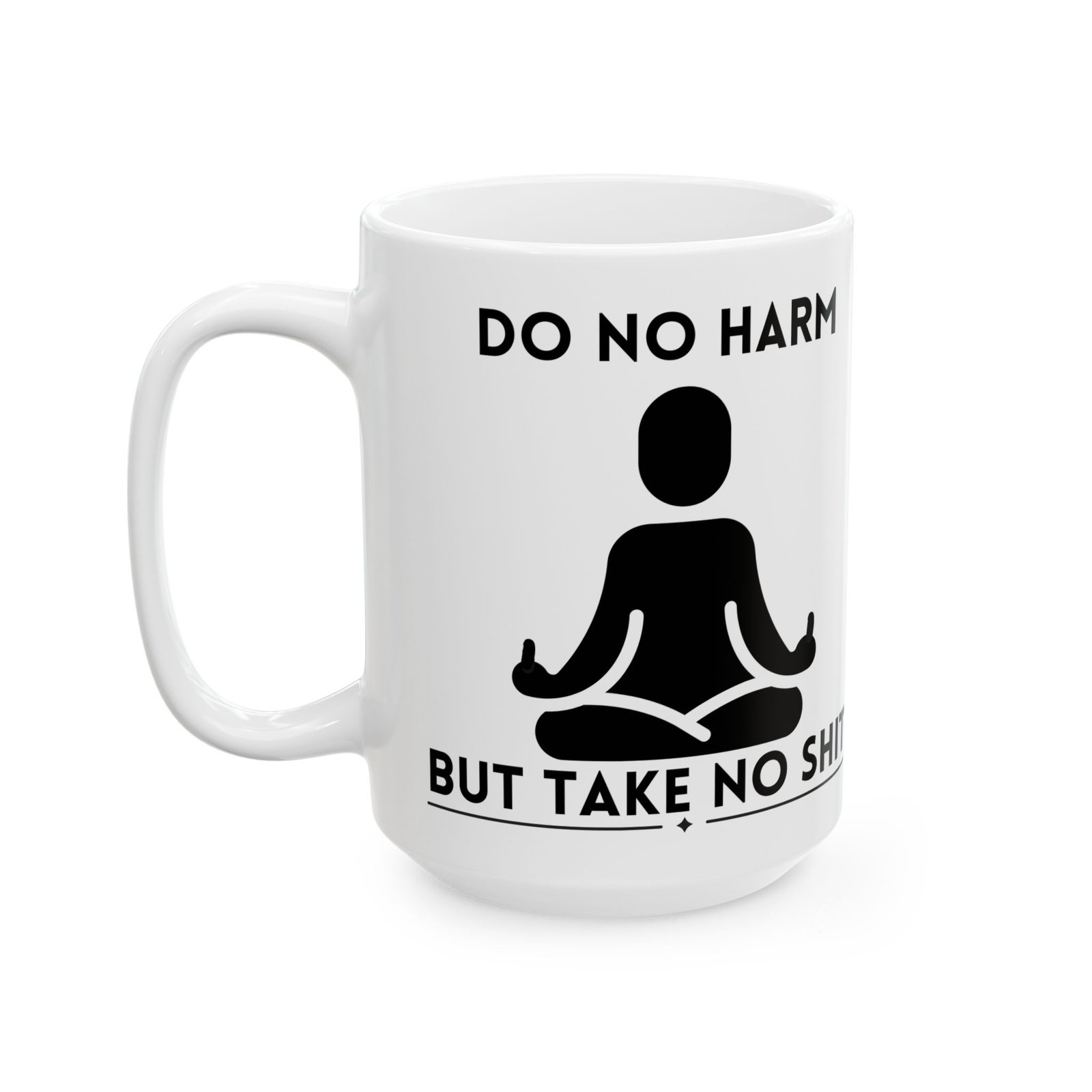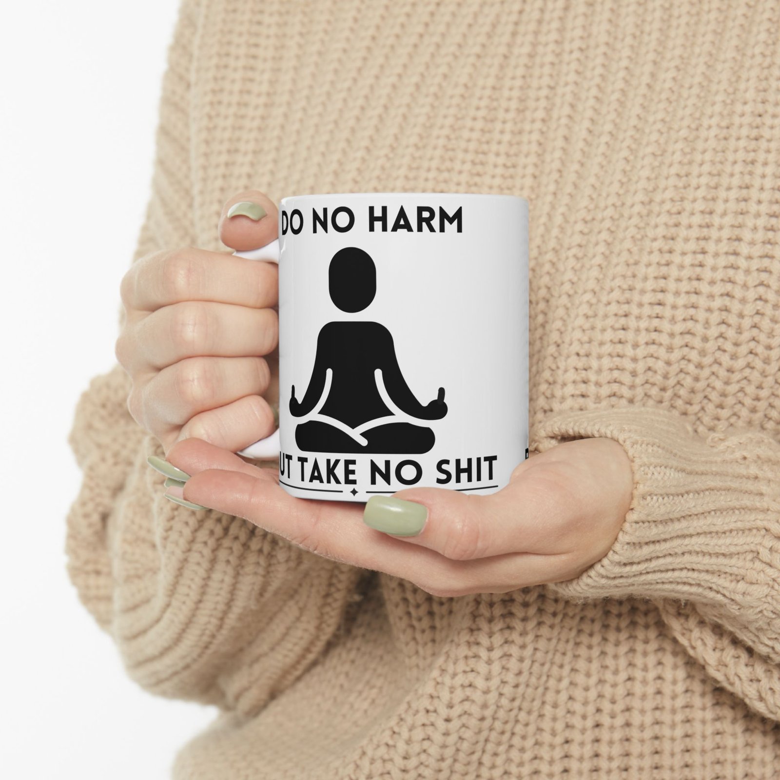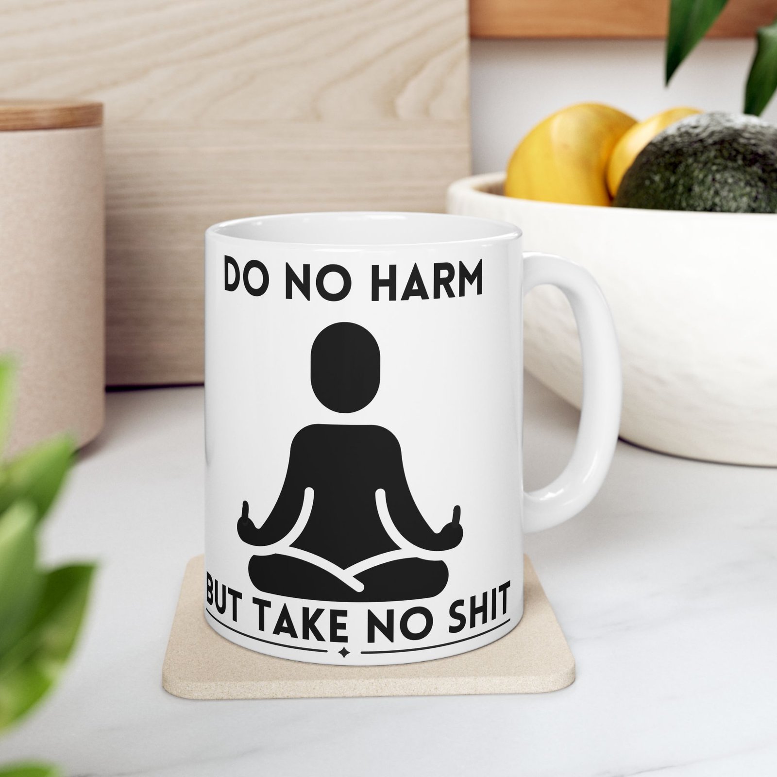 Channel balance and strength into your day with the Do No Harm But Take No Shit Meditation Mug. Perfect for mindful moments, this mug reminds you to approach life with kindness but stand firm in your boundaries. Available in 11oz and 15oz sizes, it’s crafted from durable, microwave- and dishwasher-safe ceramic, making it a practical and inspiring addition to any morning or meditation routine. This mug also makes a great gift for friends, family, or co-workers who value self-care and self-respect. Let this mantra set the tone for your day