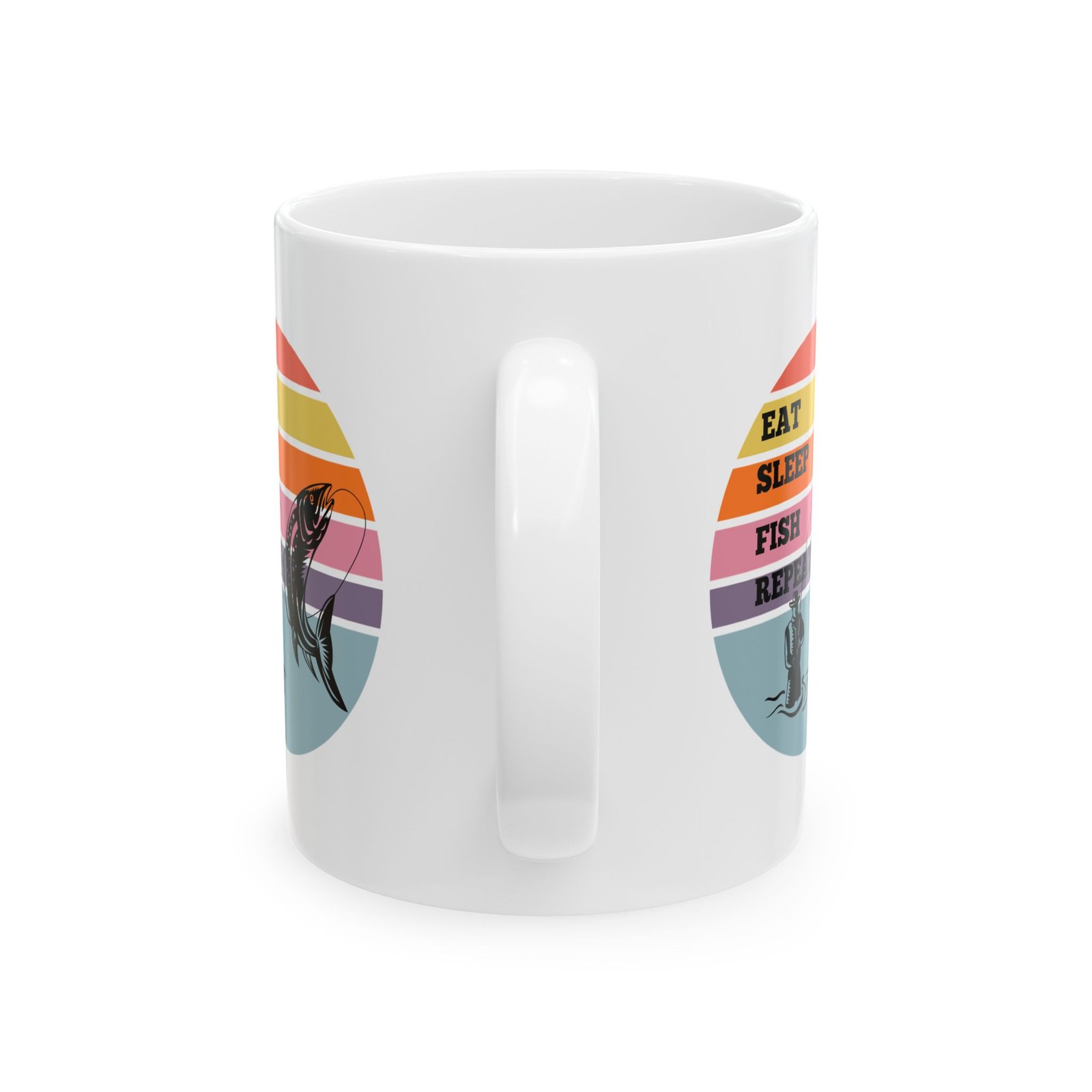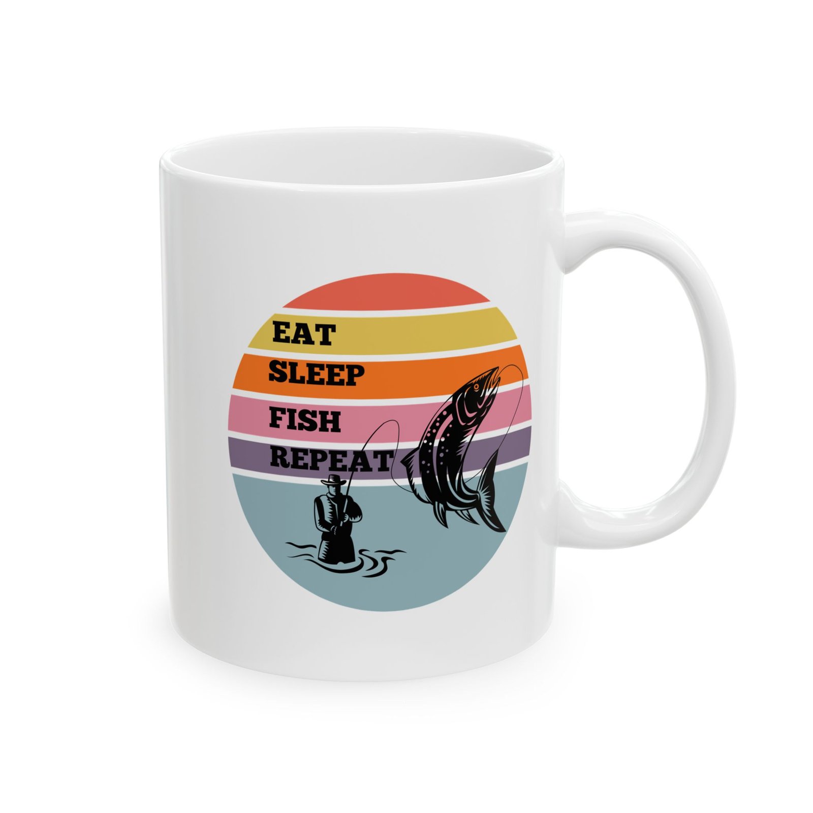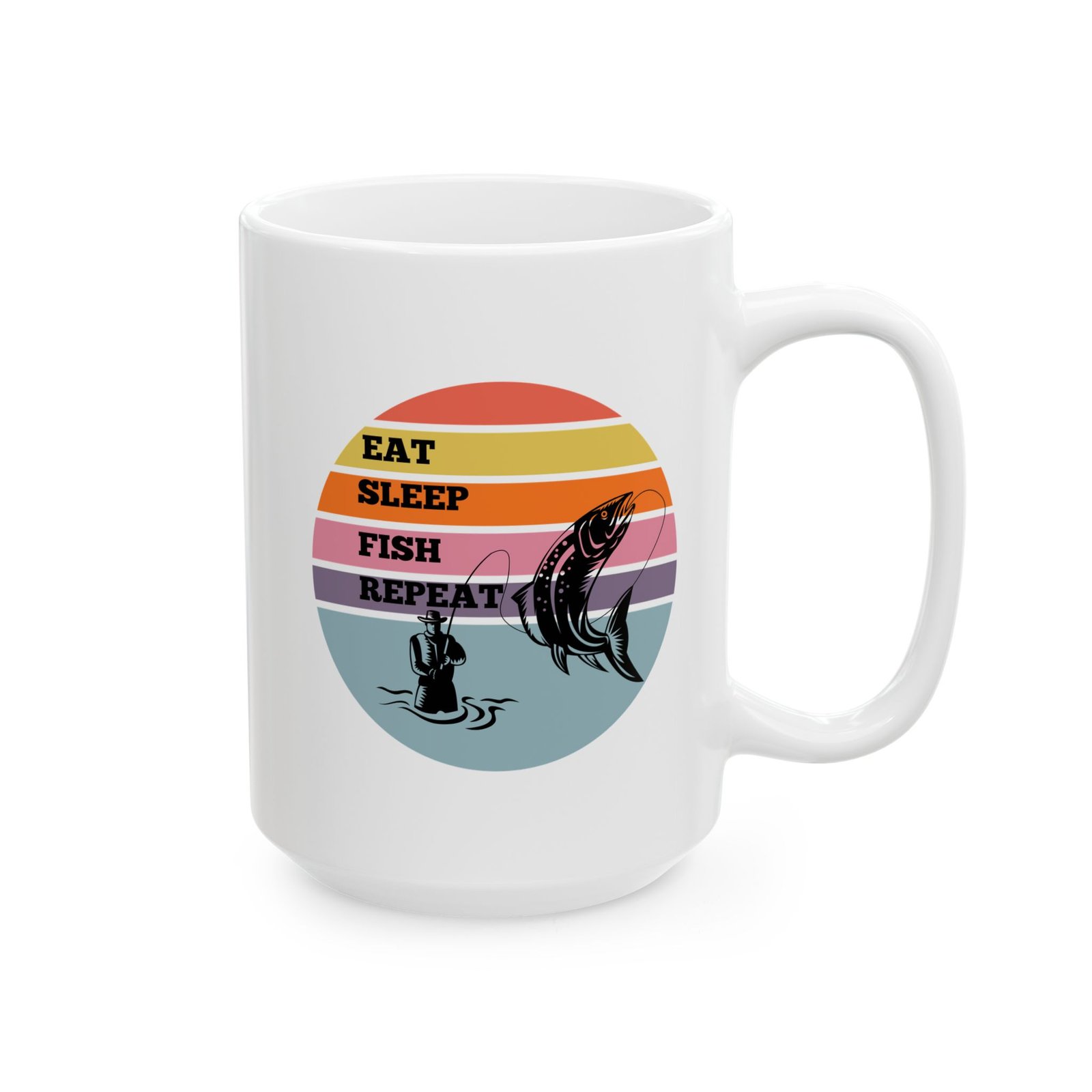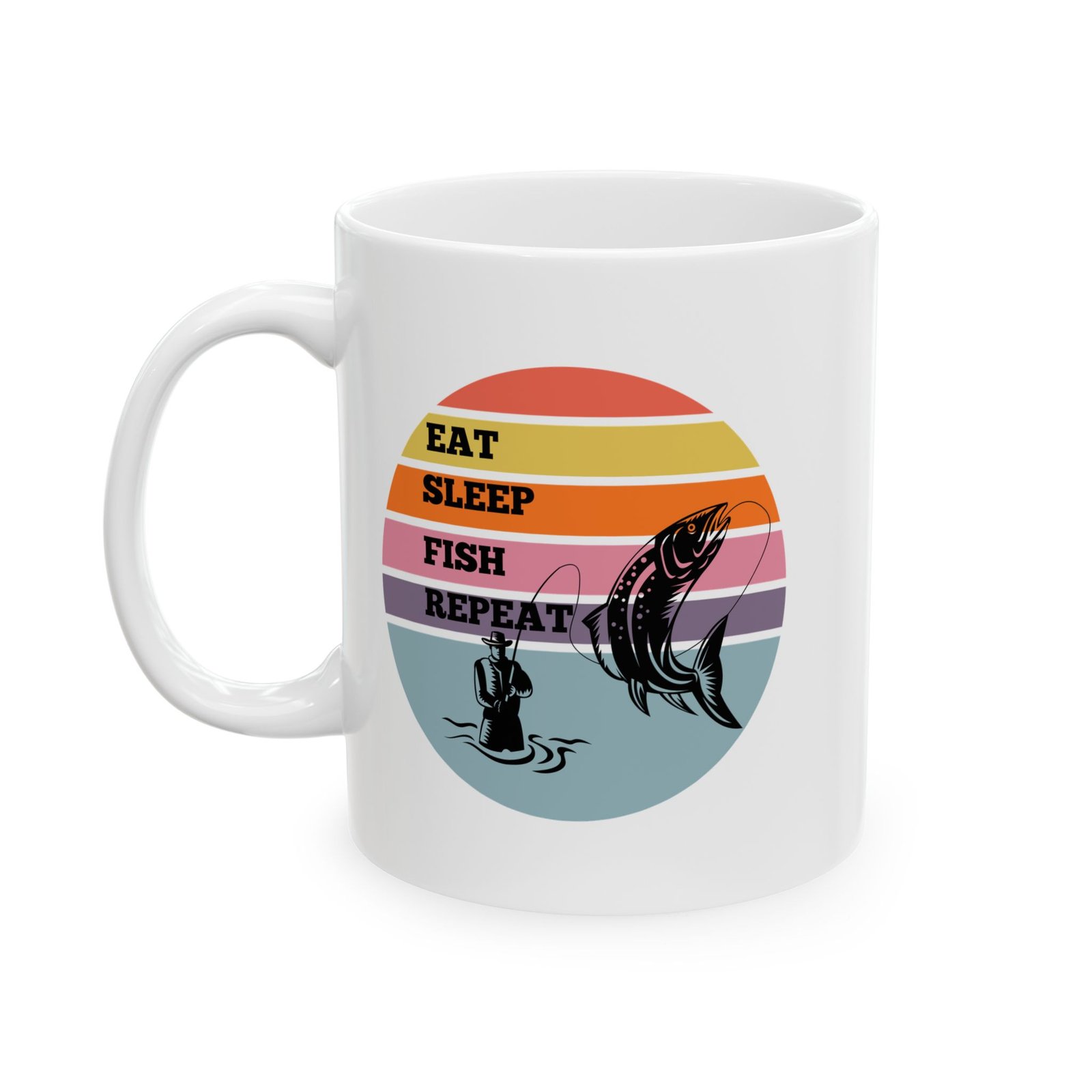 For those who live and breathe fishing, this “EAT SLEEP FISH REPEAT” mug is the way to showcase your favorite hobby!