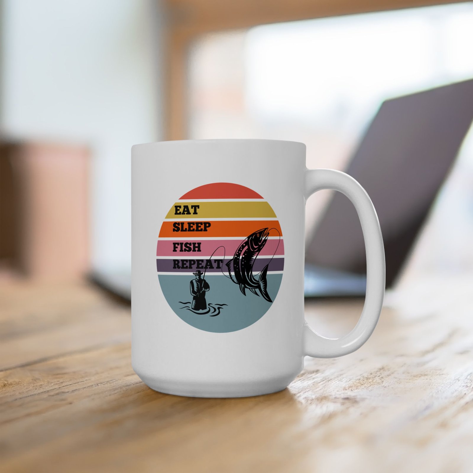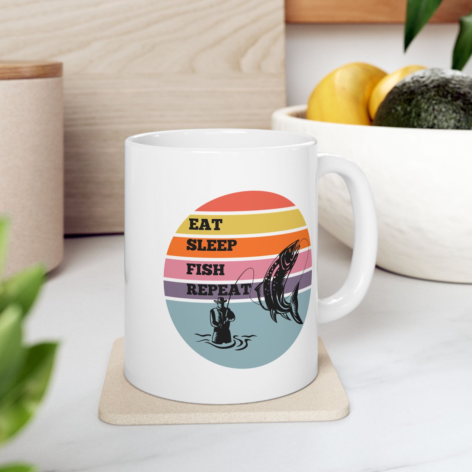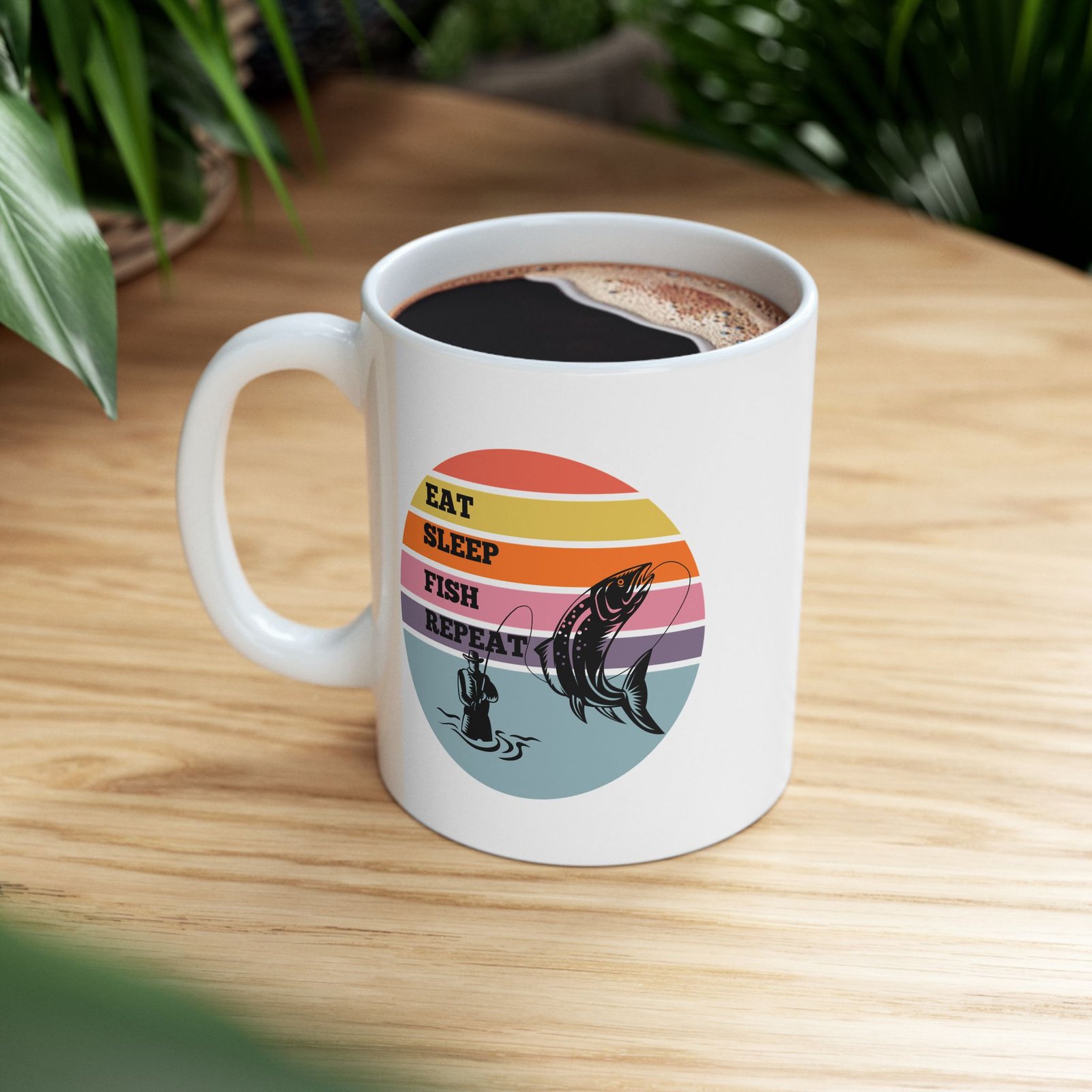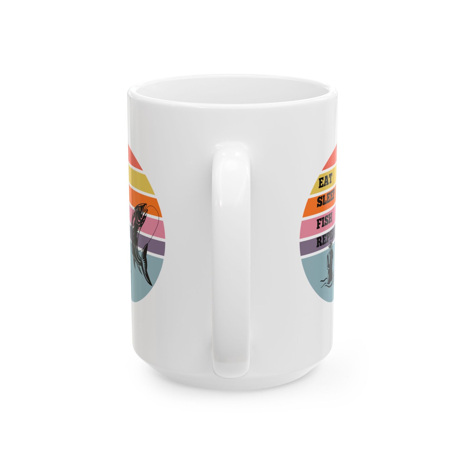For those who live and breathe fishing, this “EAT SLEEP FISH REPEAT” mug is the way to showcase your favorite hobby!