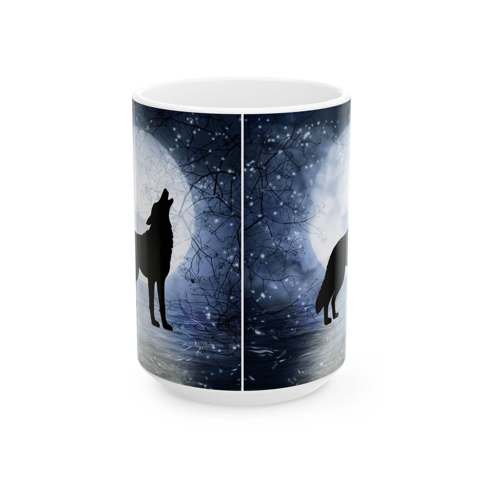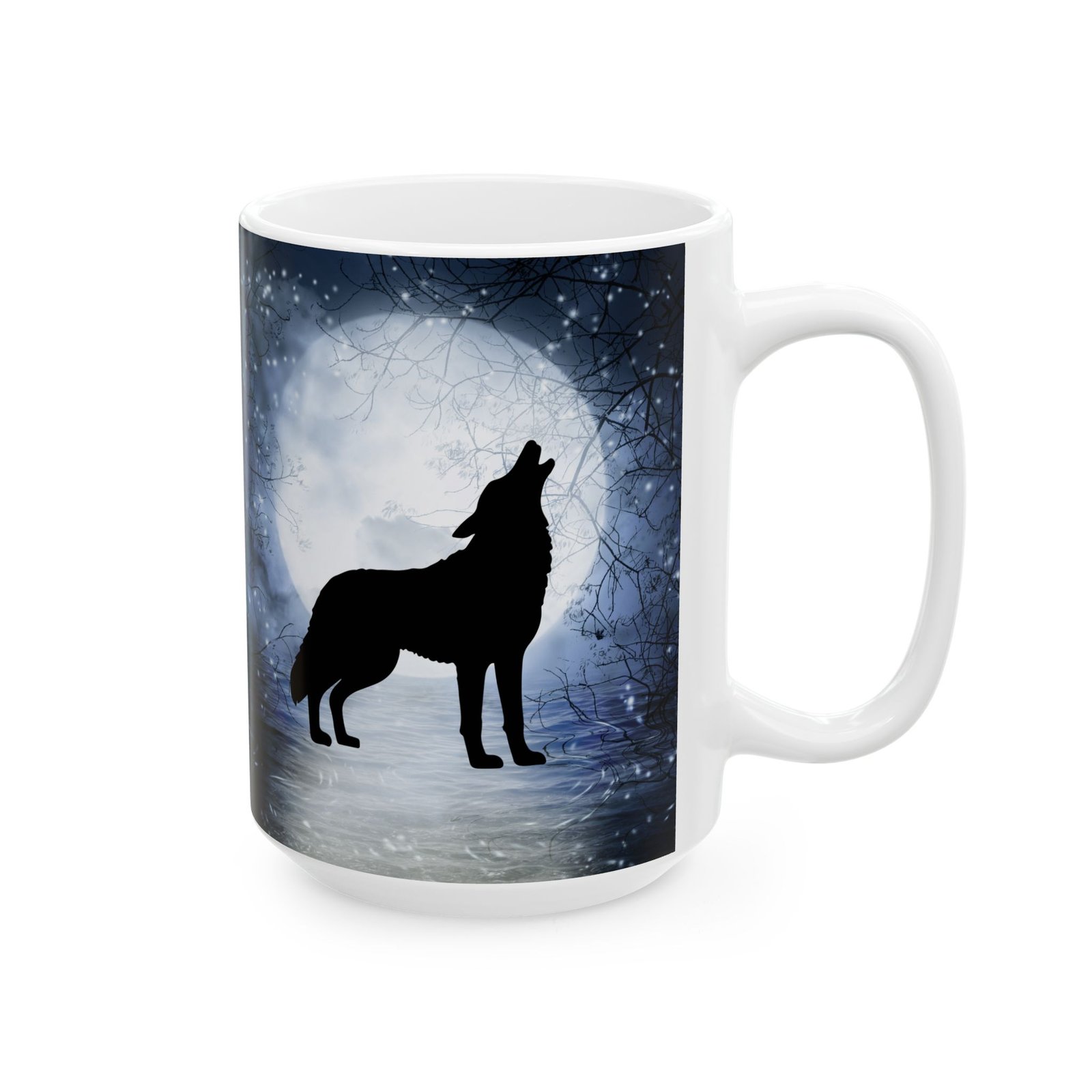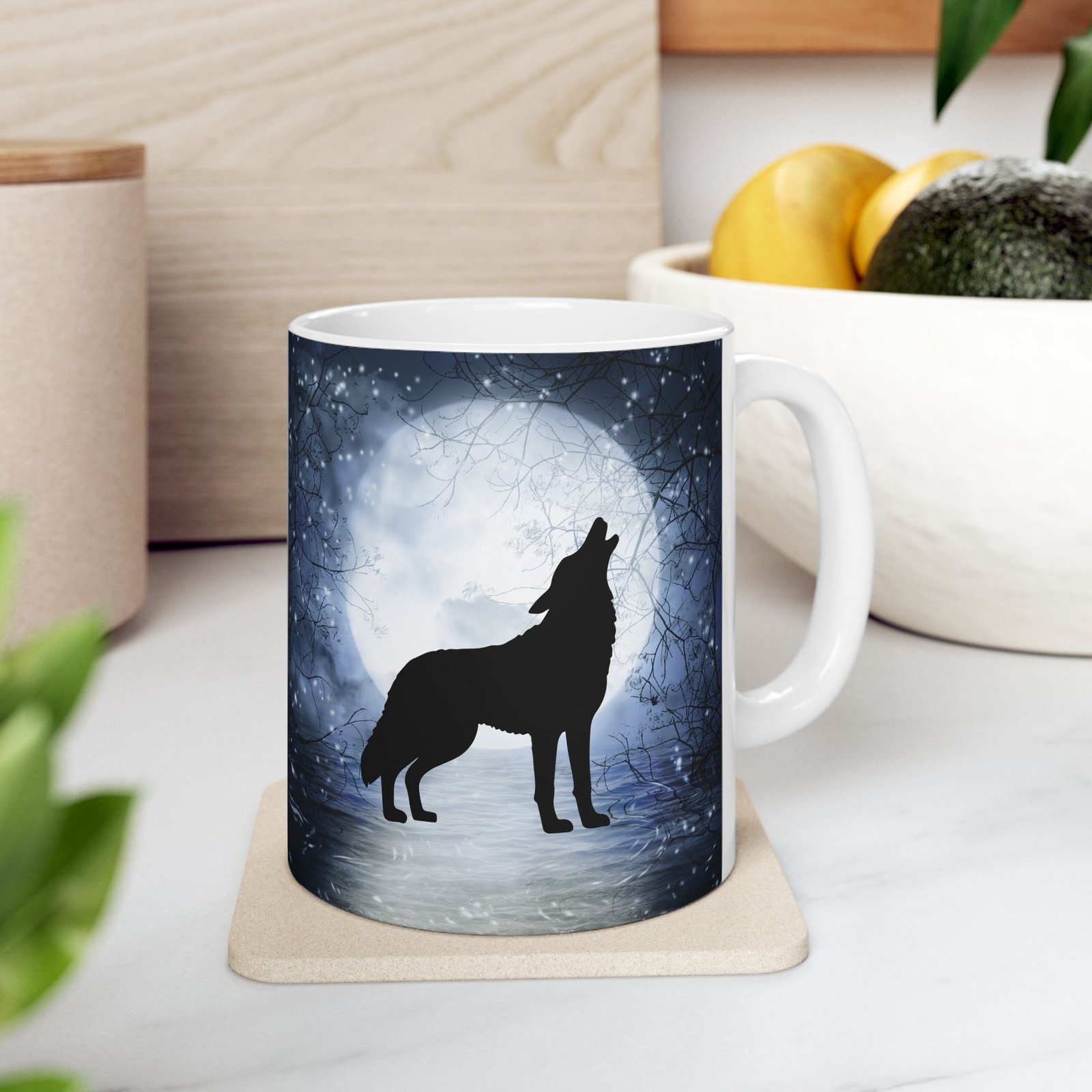 Embrace the mystic beauty of the night with our Full Moon Howling Wolf Mug.