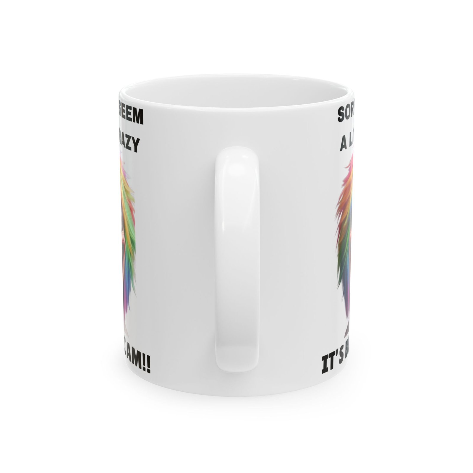 Available in 11oz and 15oz sizes, this ceramic mug is microwave and dishwasher safe, making it as convenient as it is entertaining. With a sturdy handle for a comfortable grip, this mug is perfect for everyday use and a fantastic gift for friends, family, or anyone who appreciates humor and a touch of “crazy.” Add it to your collection or gift it to someone special, and let the laughter begin!
