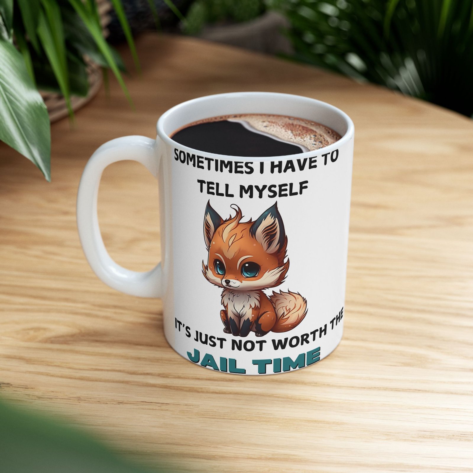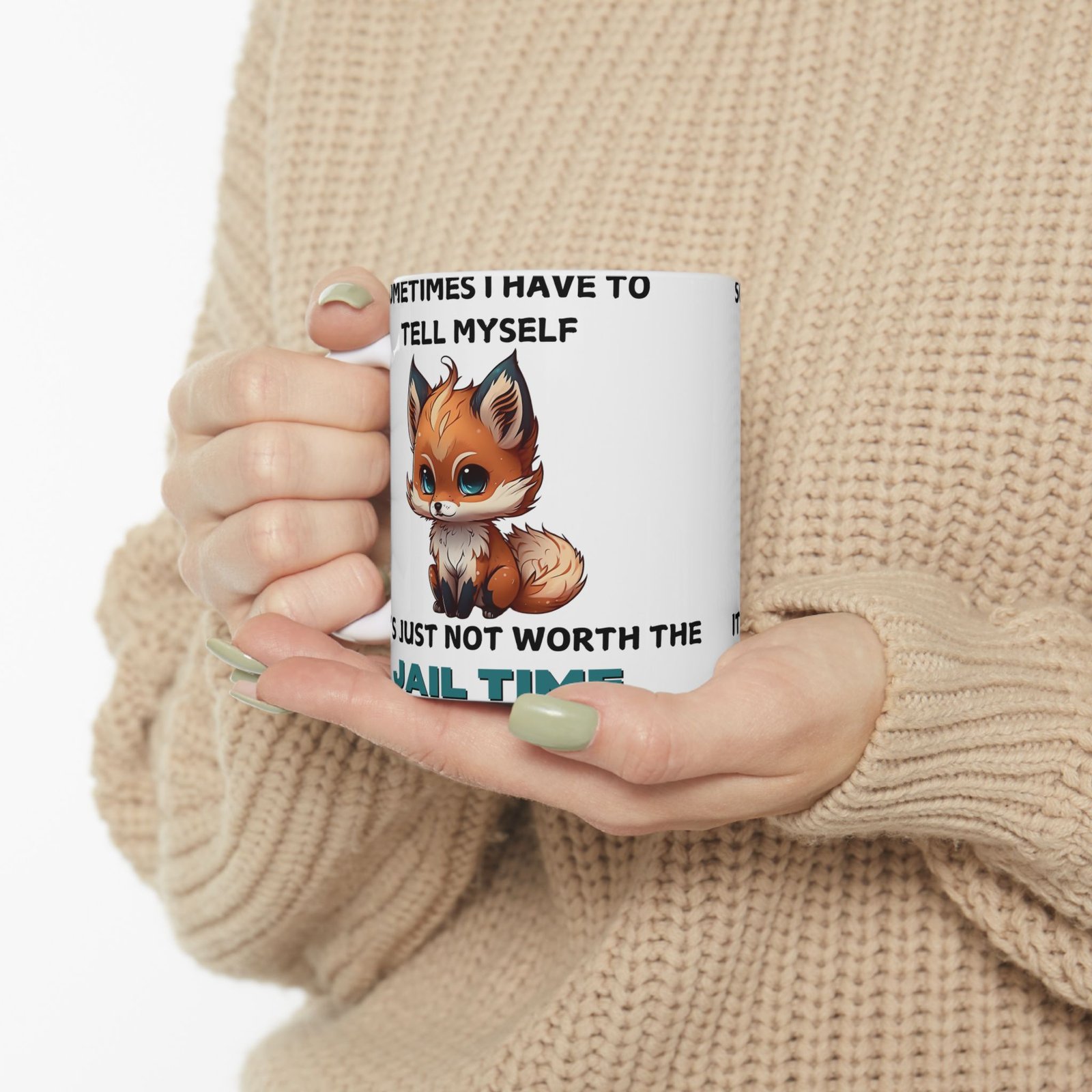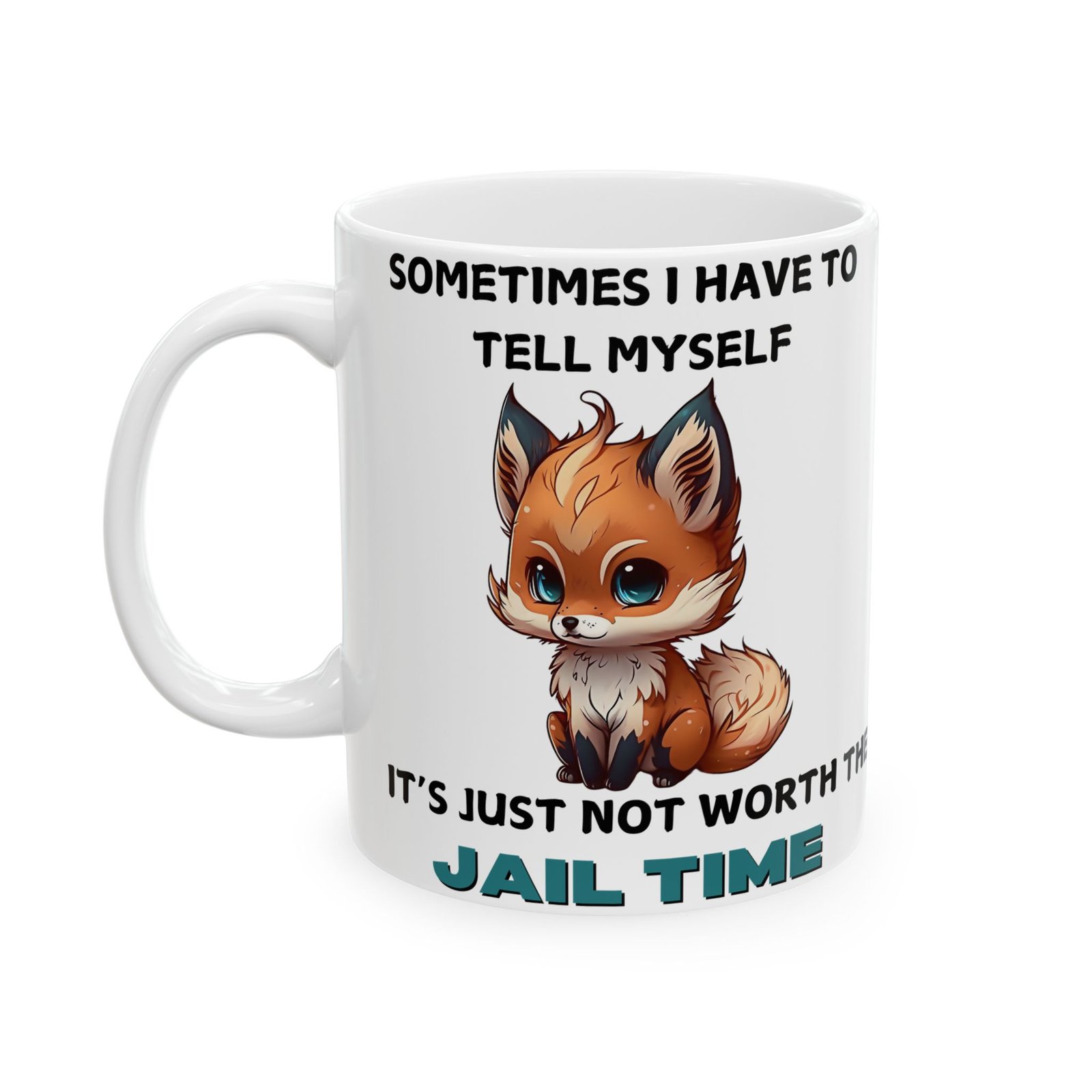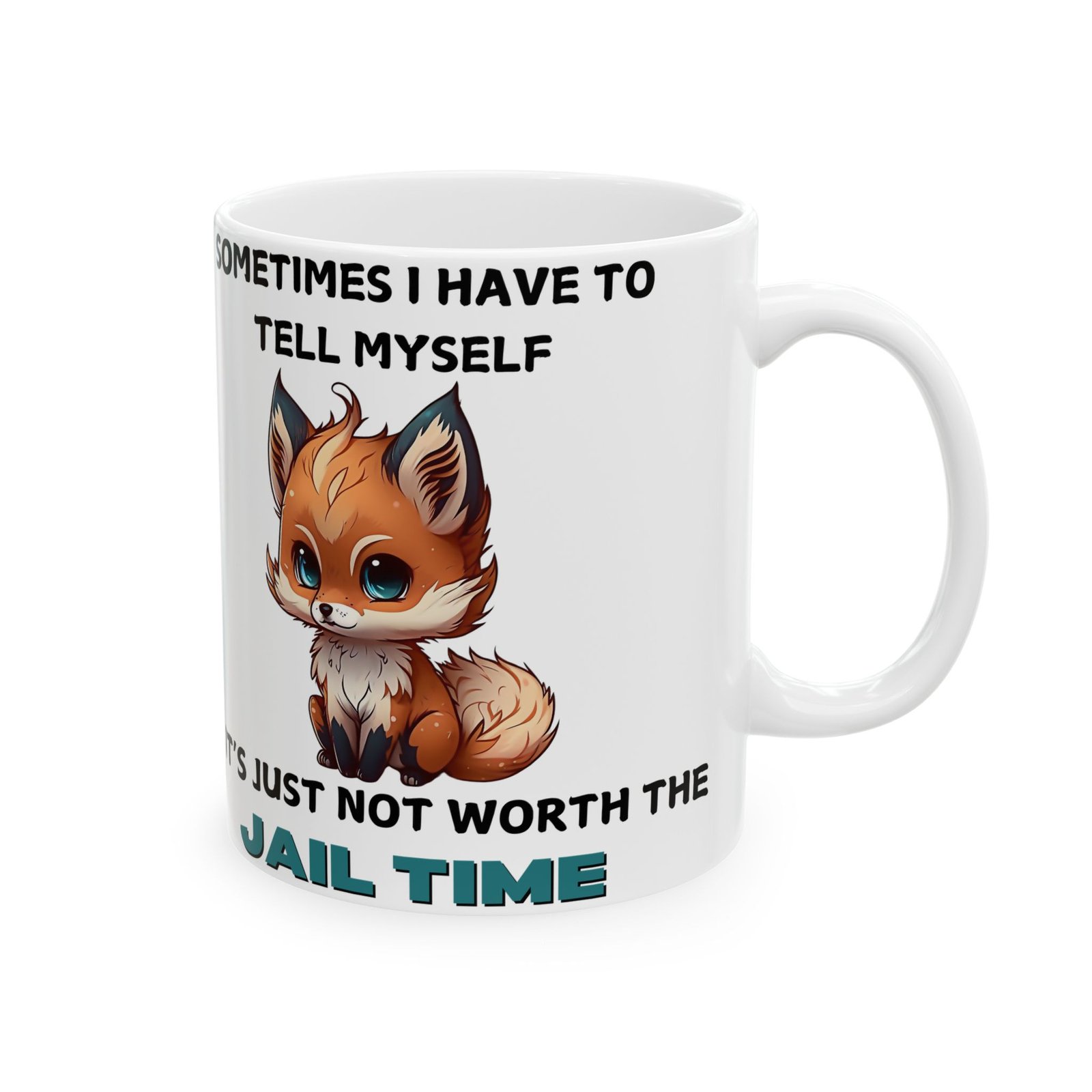 Brighten up your day with a touch of humor and relatable wisdom with our “Sometimes I Have to Tell Myself, It’s Just Not Worth the Jail Time” mug. Featuring a charming, cartoon-style fox with an adorably frustrated expression, this mug is for those moments when patience runs thin and sass takes over. Made from ceramic and available in 11oz and 15oz sizes, it’s great for your morning coffee, afternoon tea, or any beverage that needs a splash of personality.