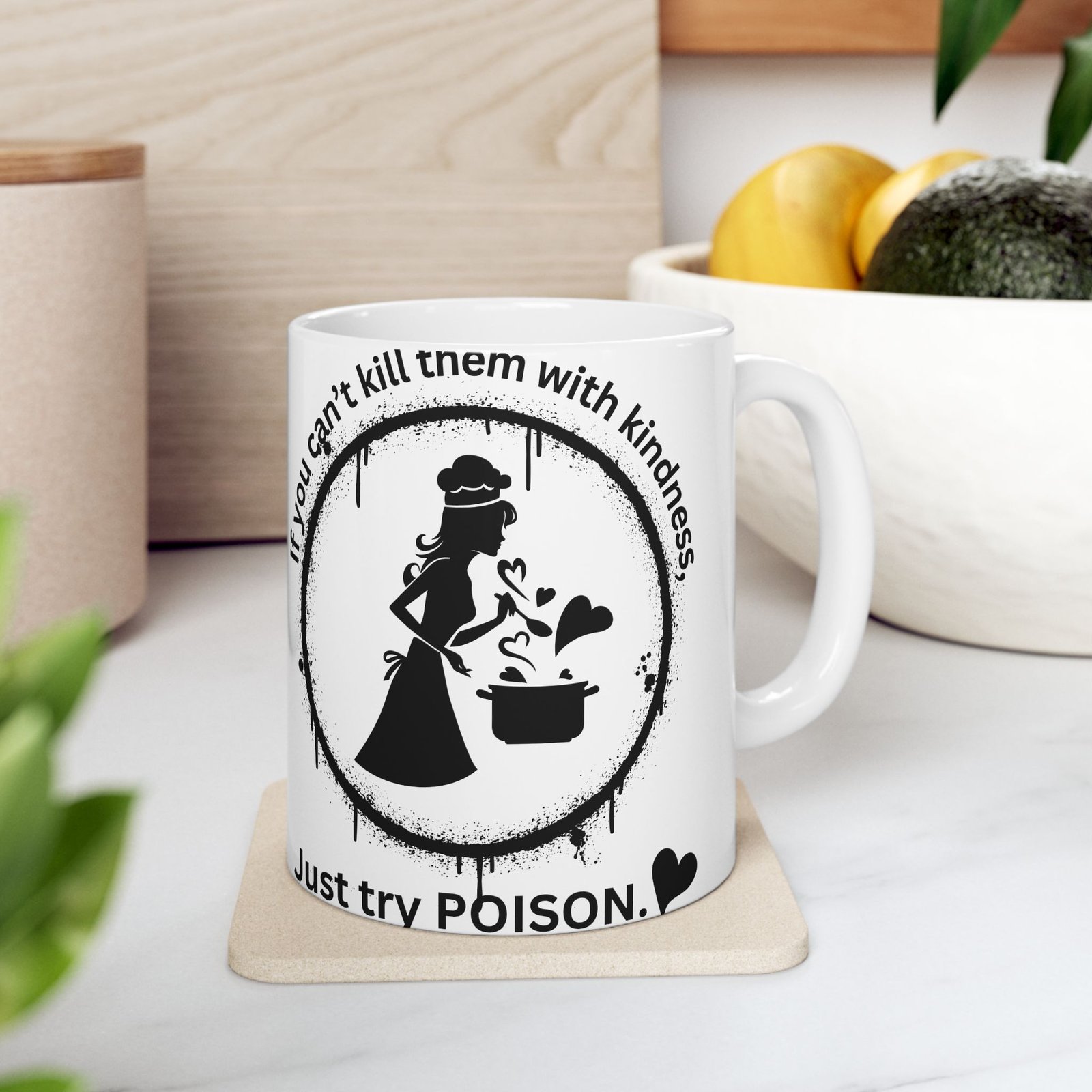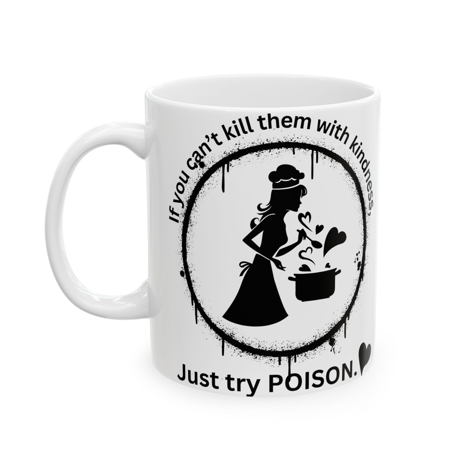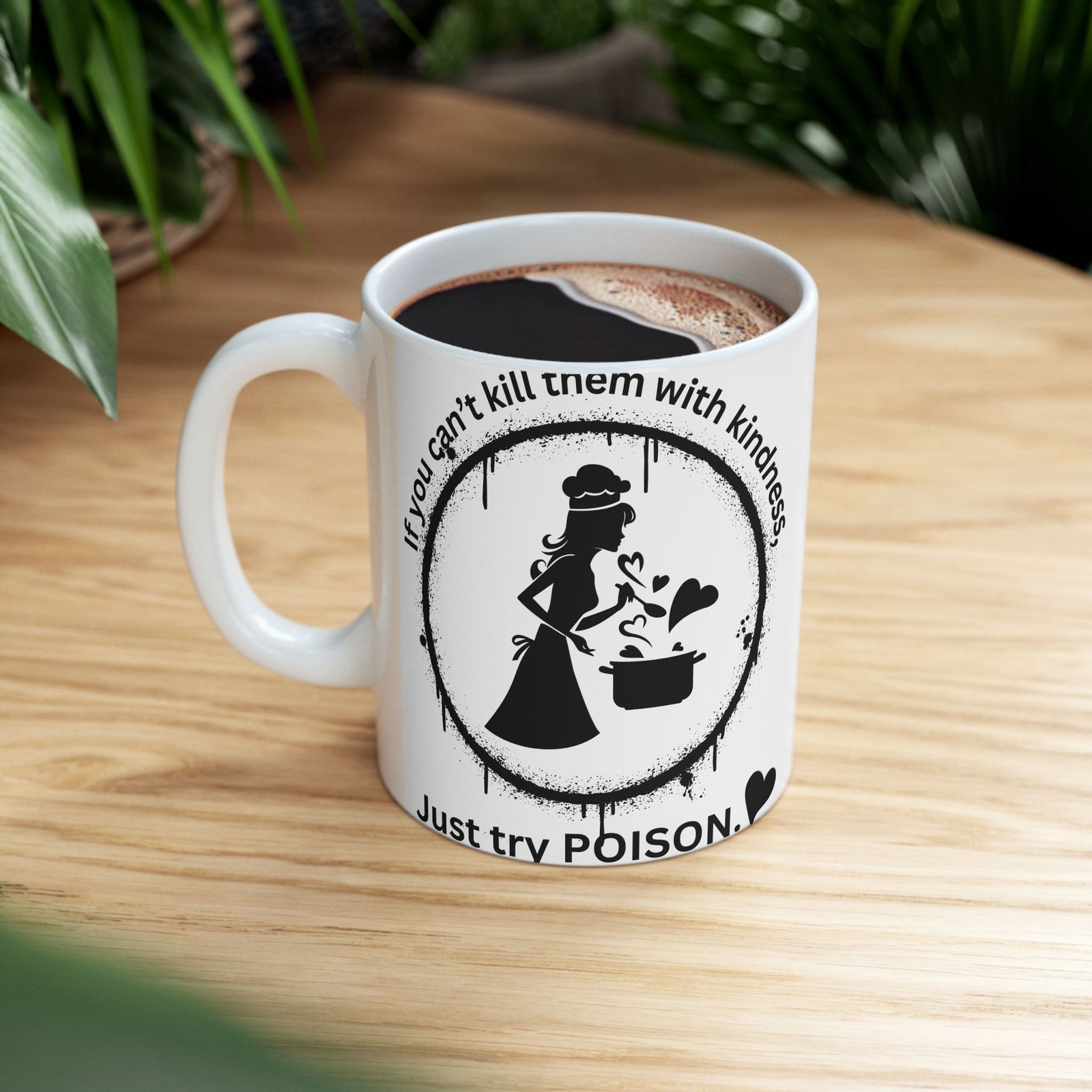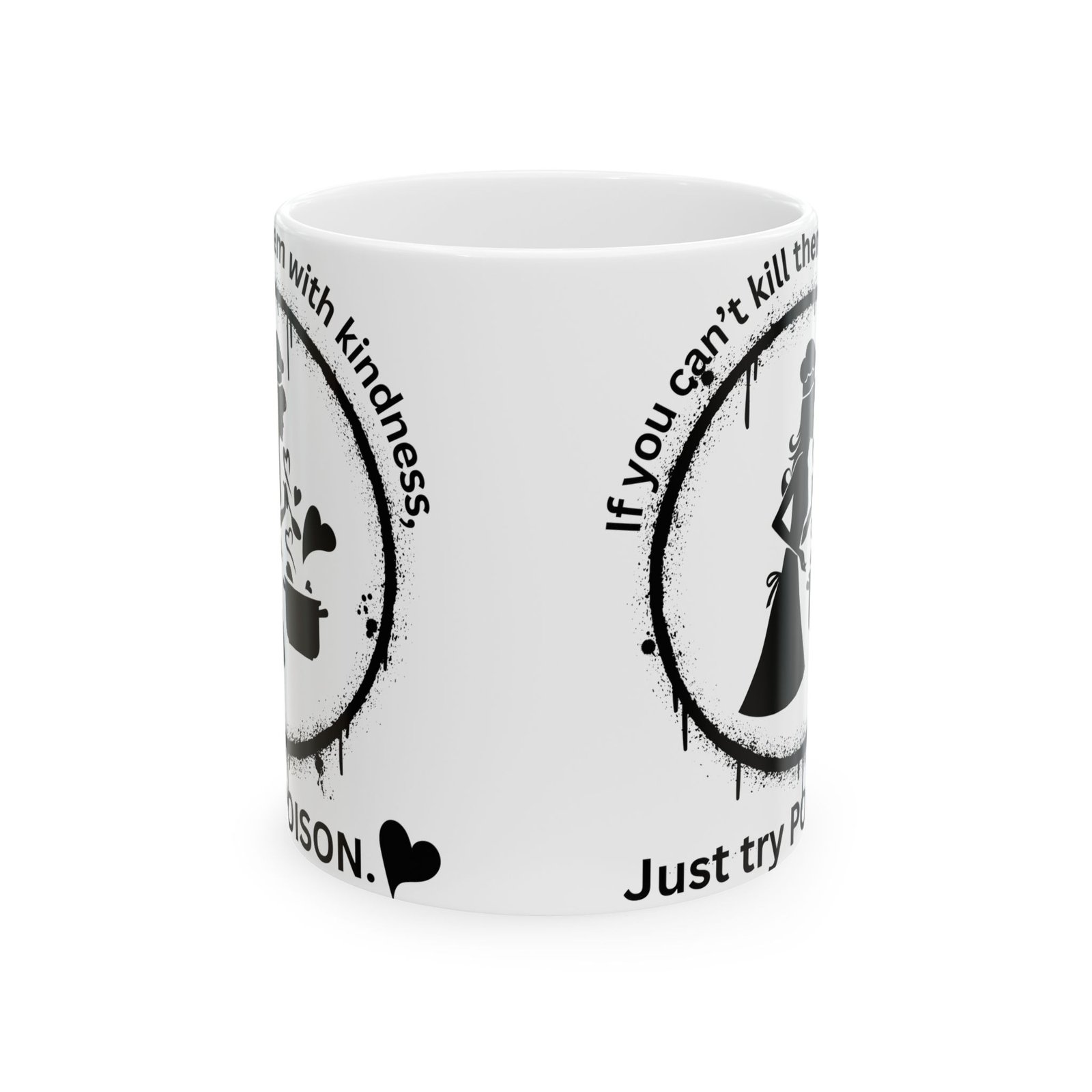 Funny ‘Kill Them with Kindness, or Poison’ Cat Mug – Sarcastic Humor Gift – 11oz Ceramic Coffee Mug for Cat Lovers