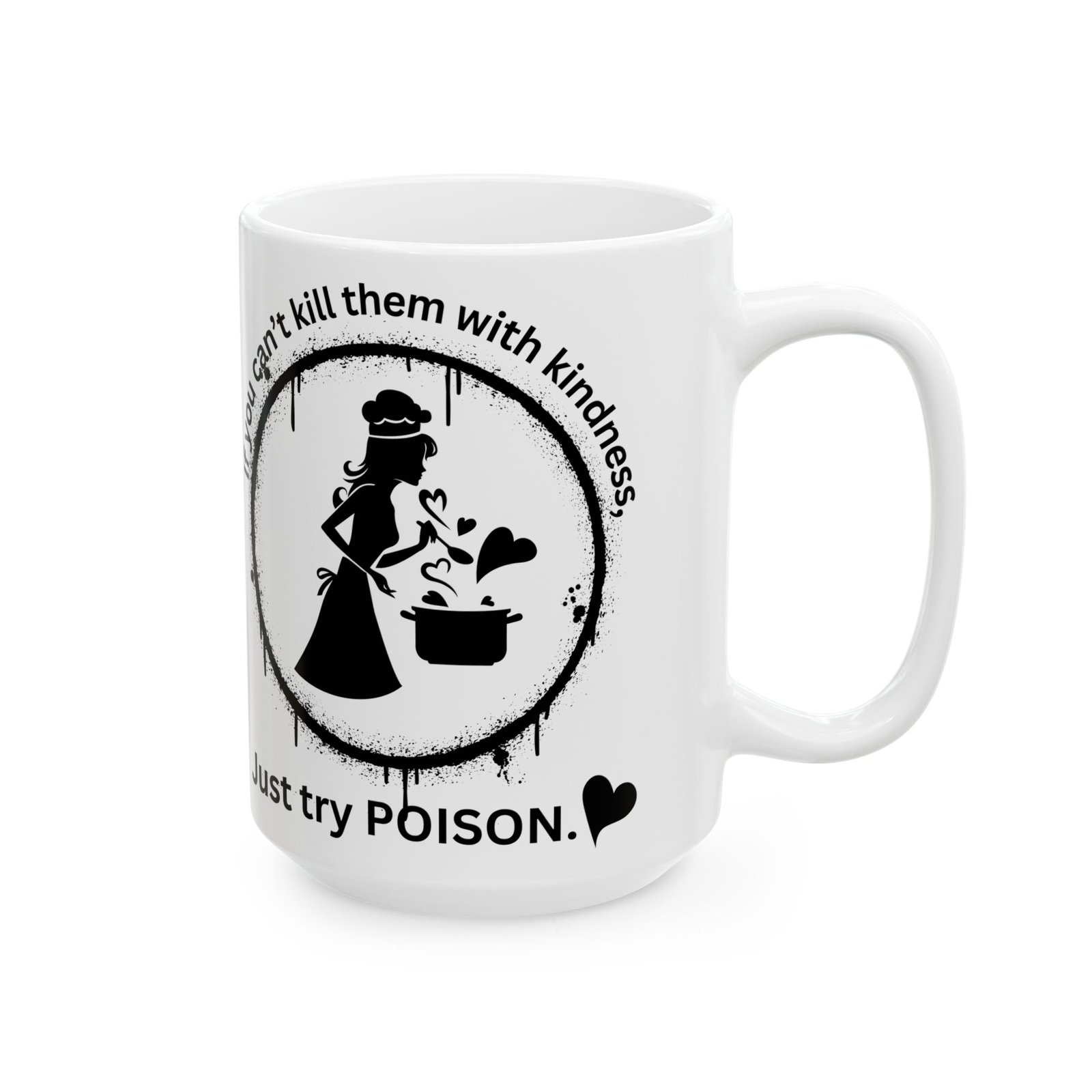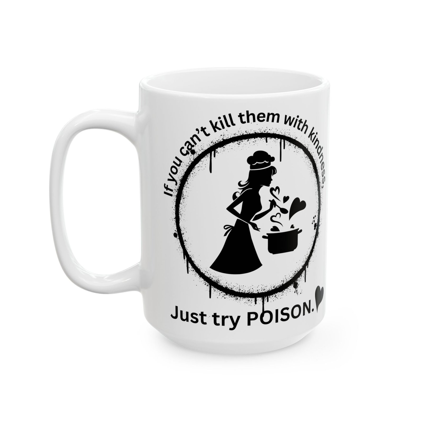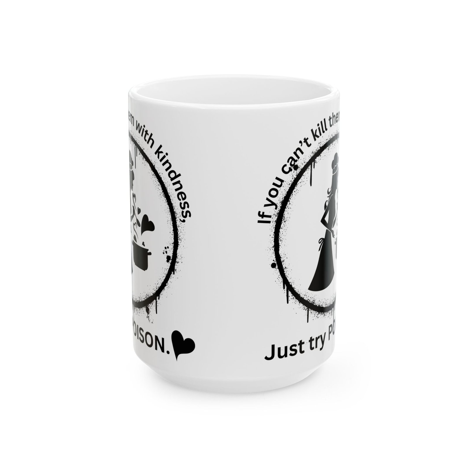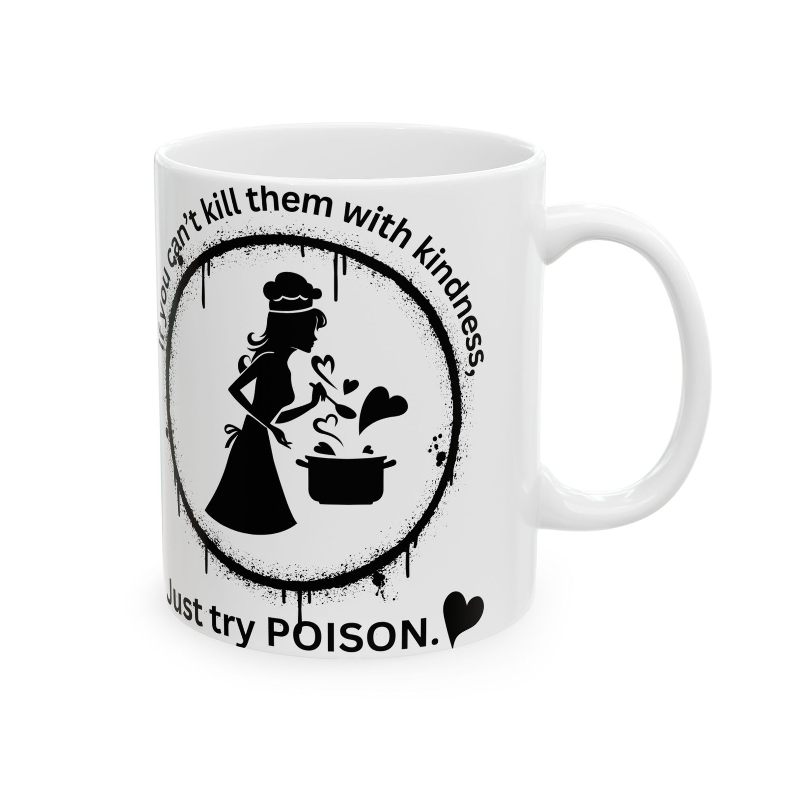 Funny ‘Kill Them with Kindness, or Poison’ Cat Mug – Sarcastic Humor Gift – 11oz Ceramic Coffee Mug for Cat Lovers