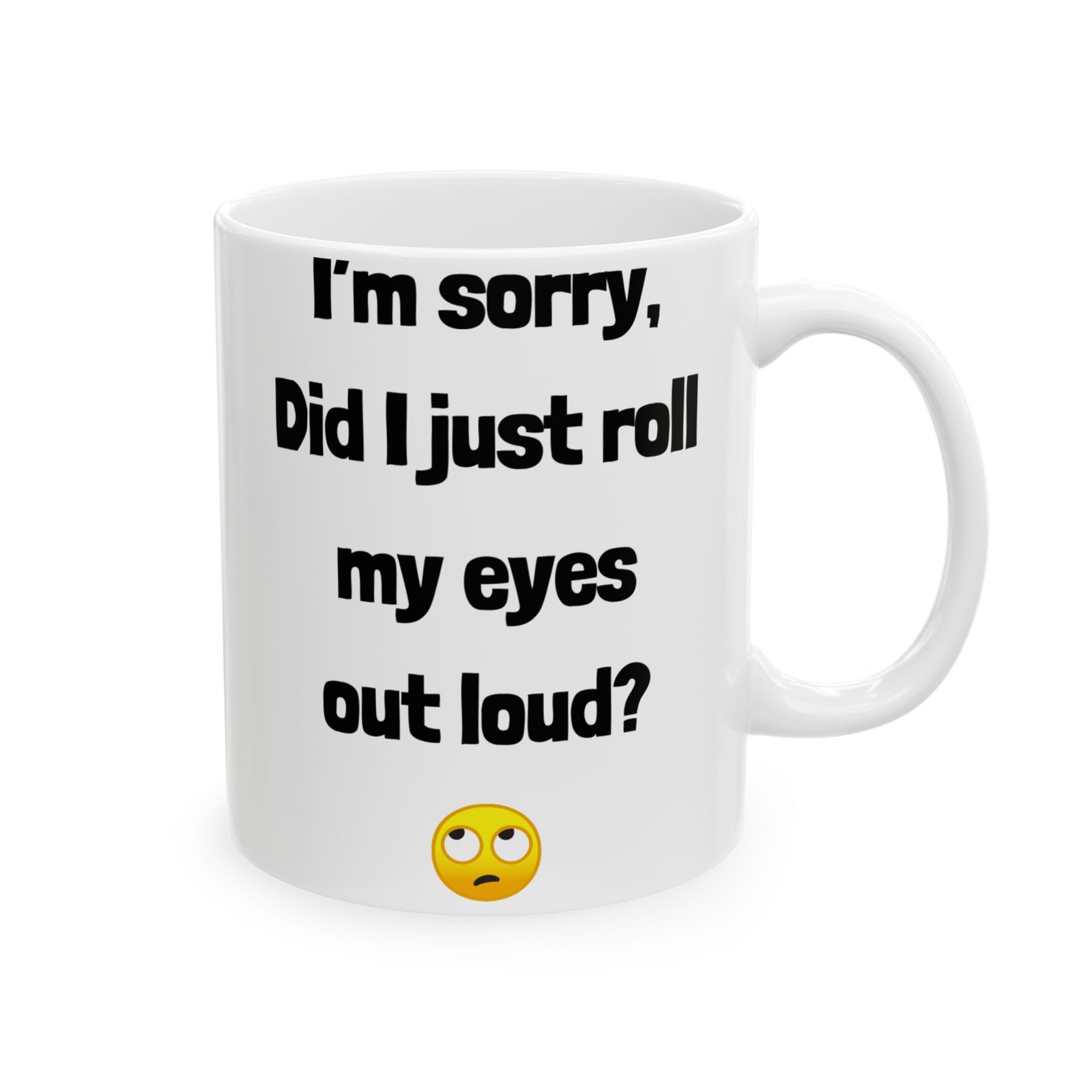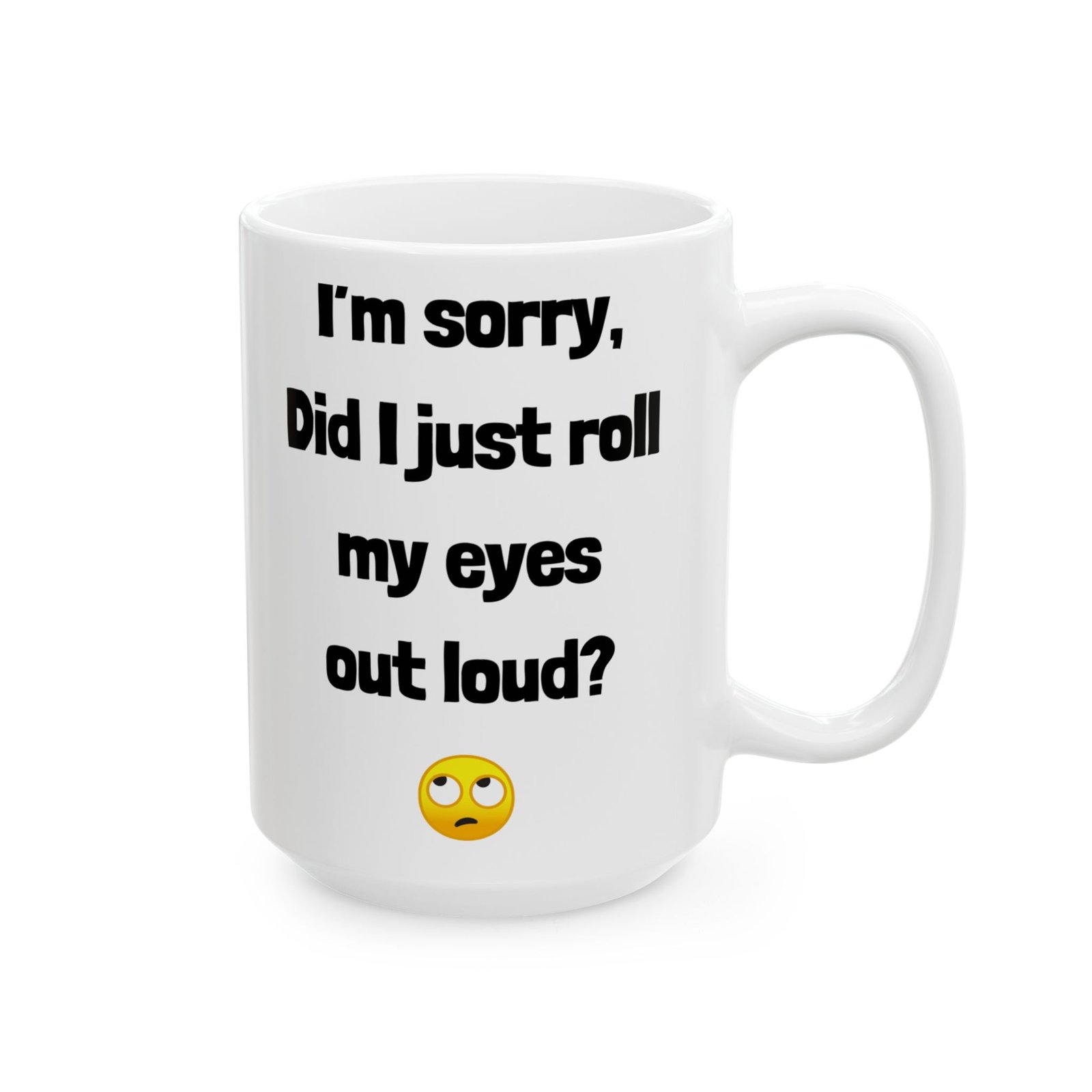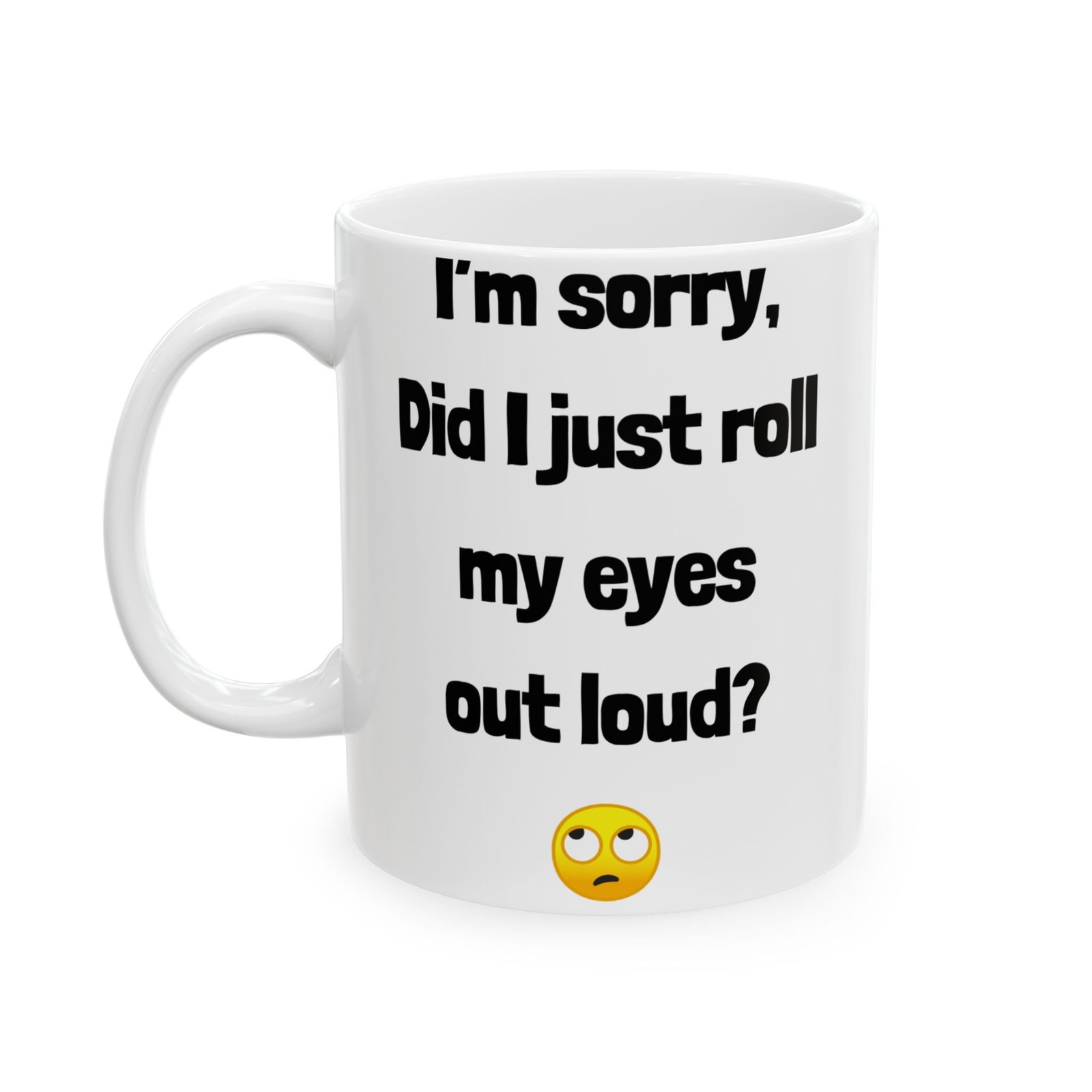 Bring a little sarcasm to your coffee break with this Funny Sarcastic Mug, featuring the witty phrase, “Did I Just Roll My Eyes Out Loud?” alongside a cheeky smiley face.