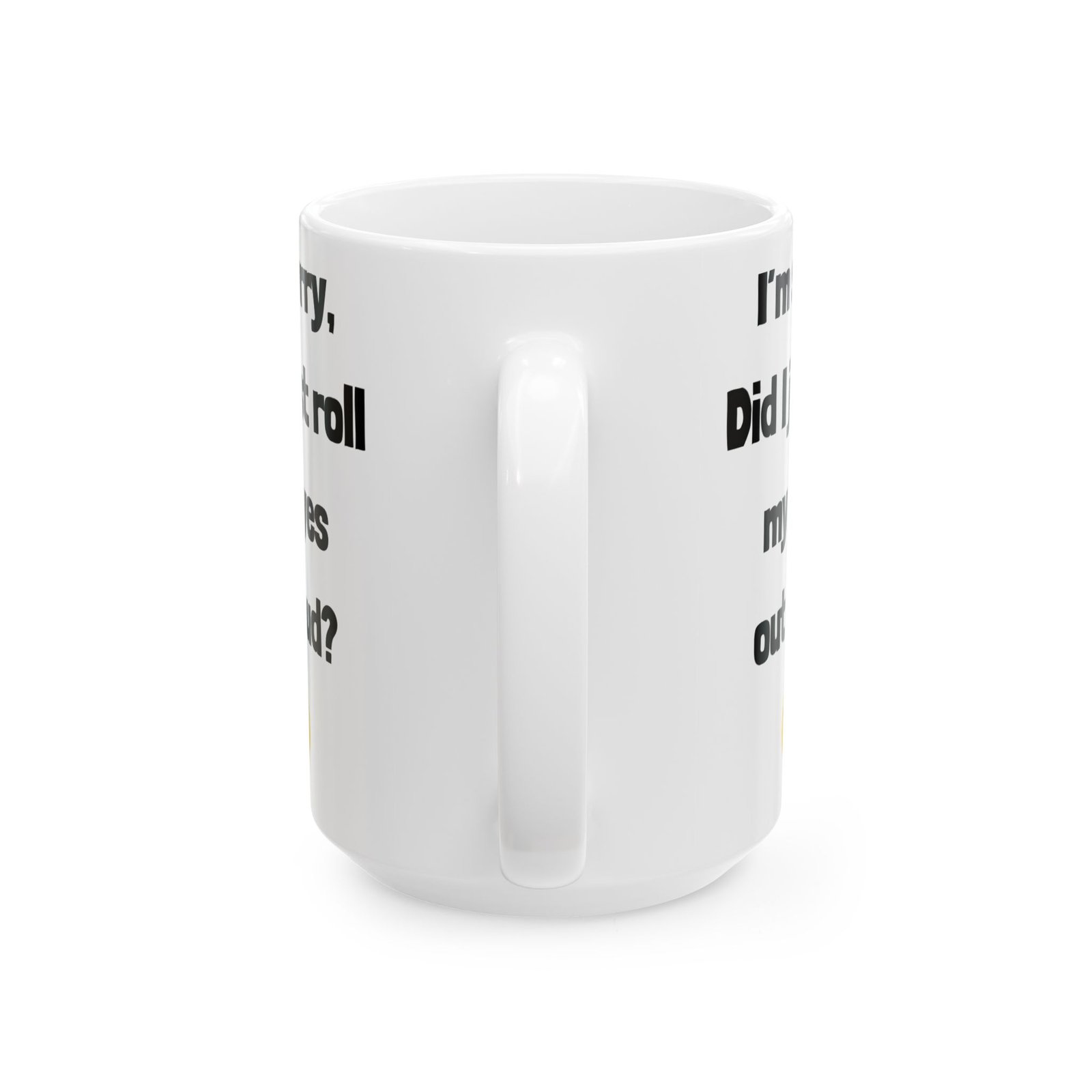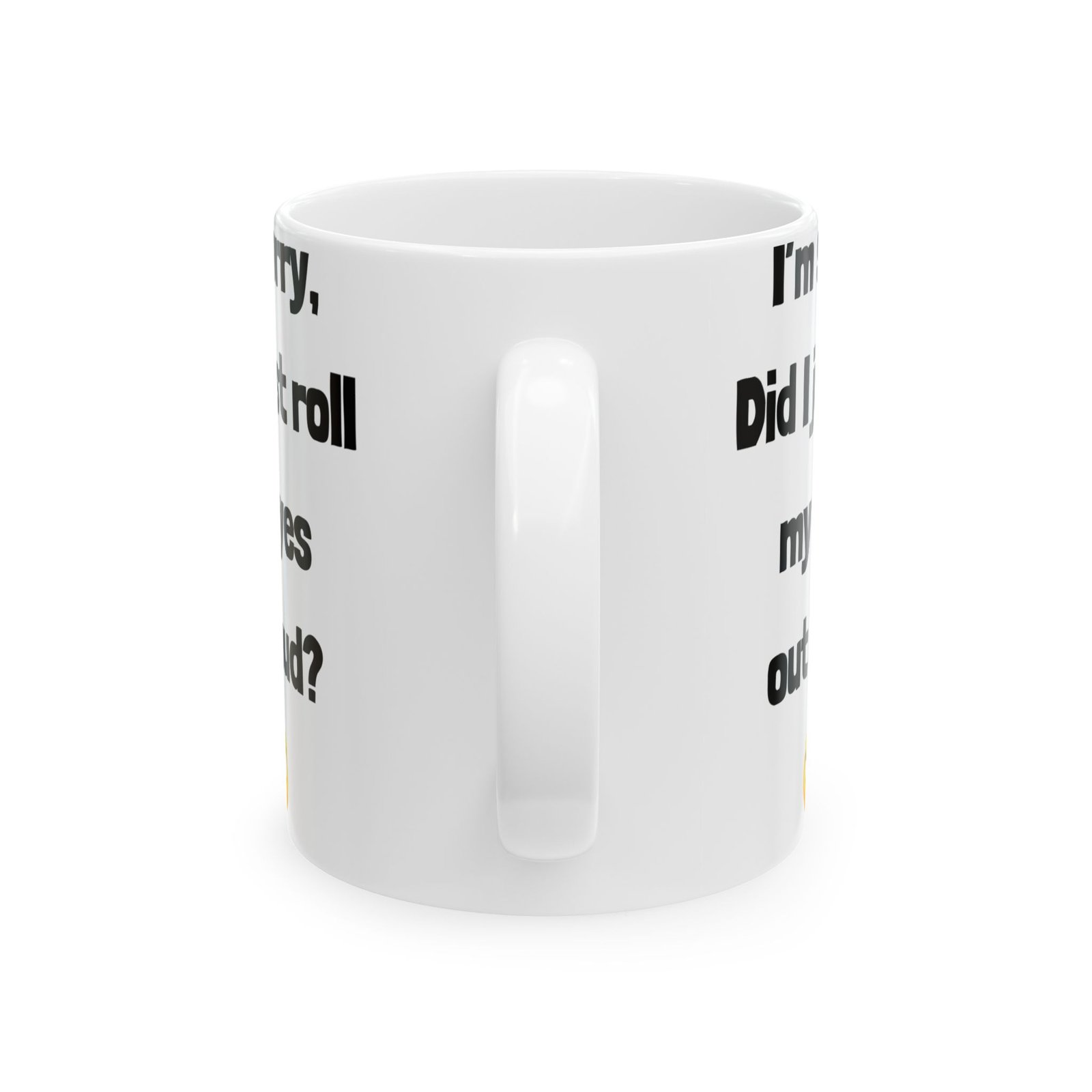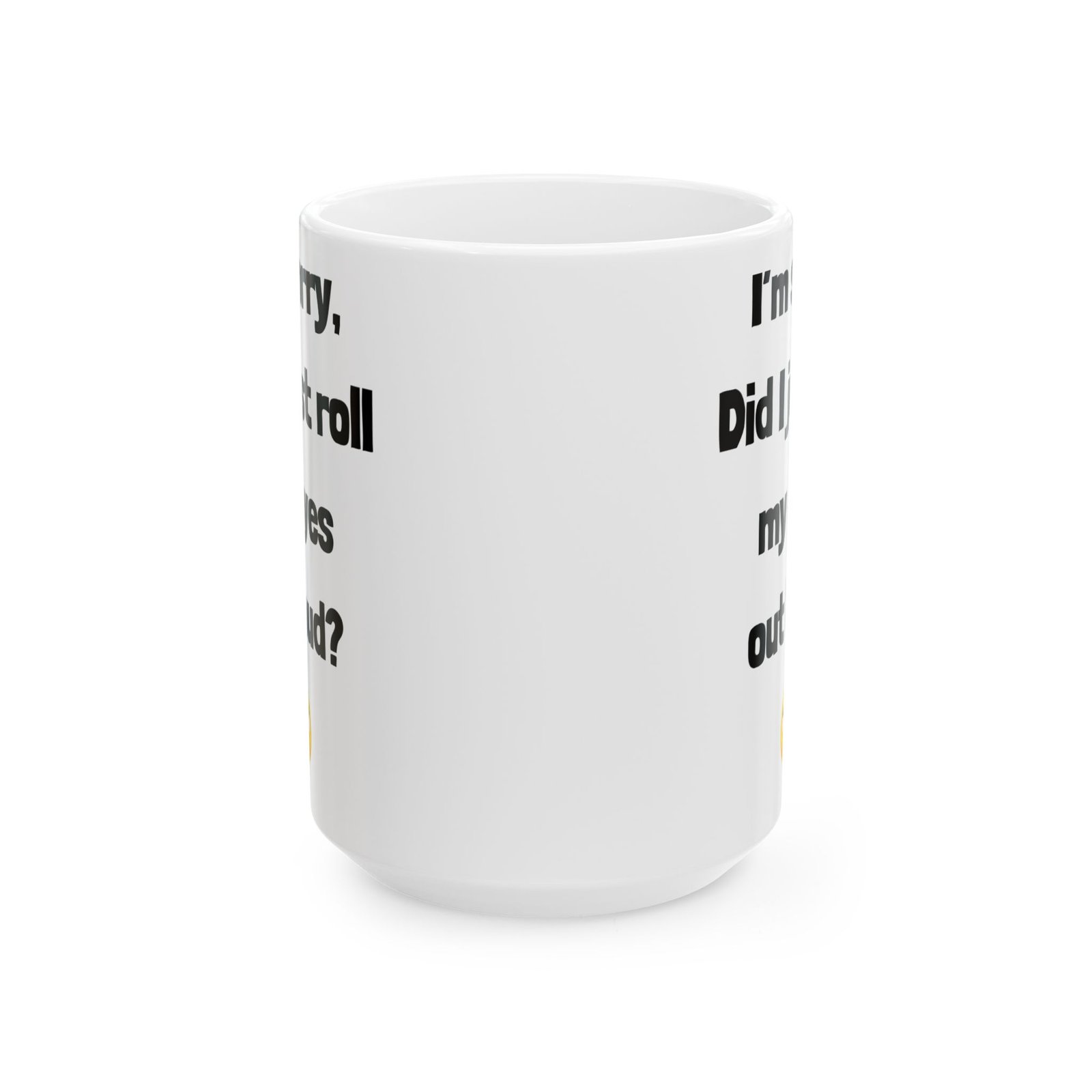 Bring a little sarcasm to your coffee break with this Funny Sarcastic Mug, featuring the witty phrase, “Did I Just Roll My Eyes Out Loud?” alongside a cheeky smiley face.