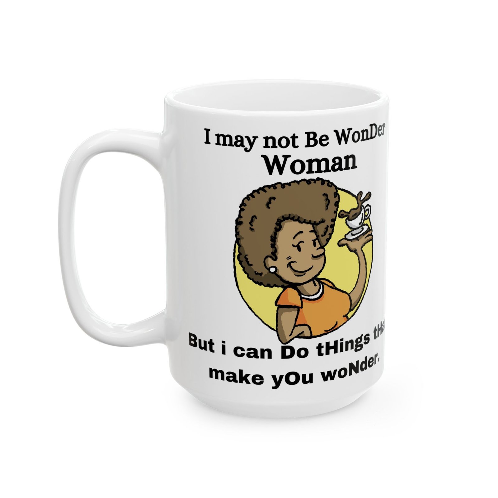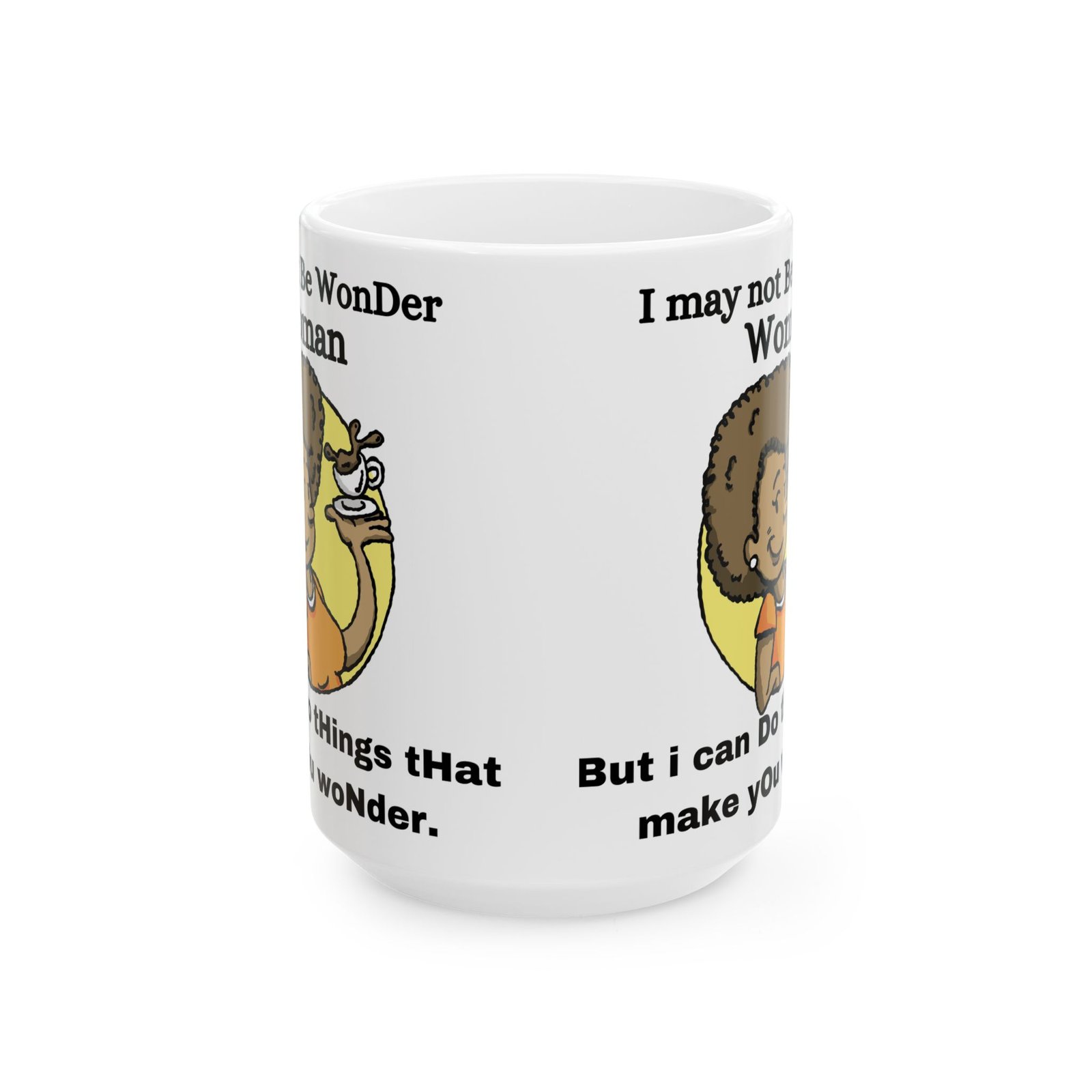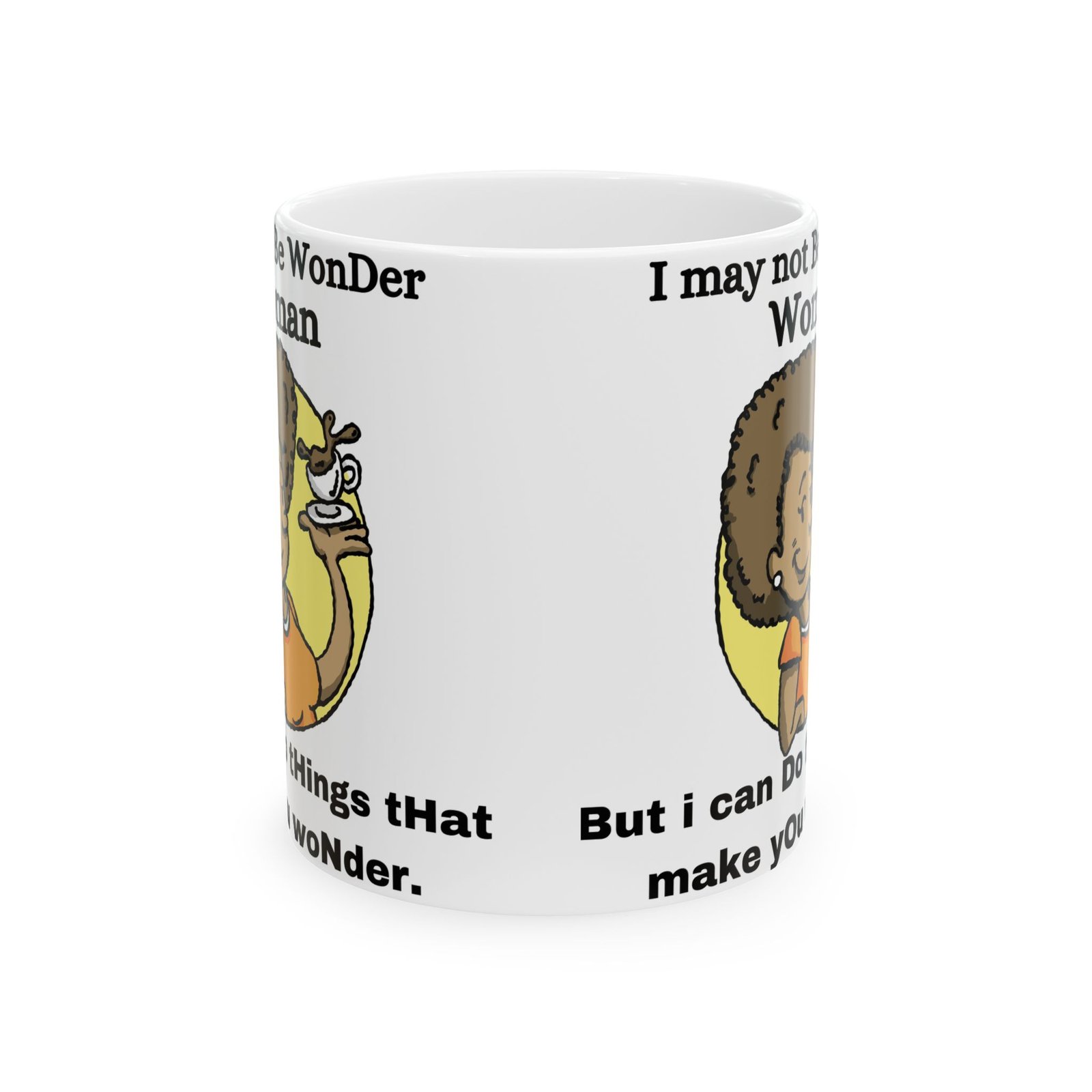 Add a dose of humor to your day with this Funny Woman Mug featuring the sarcastic phrase, “I May Not Be Woman, But I Can Do Things That Make You Wonder.” This mug is for anyone who’s known for their surprising (and sometimes mysterious) talents! A playful twist on the superhero theme, it’s a fun reminder that you don’t need superpowers to keep people guessing.