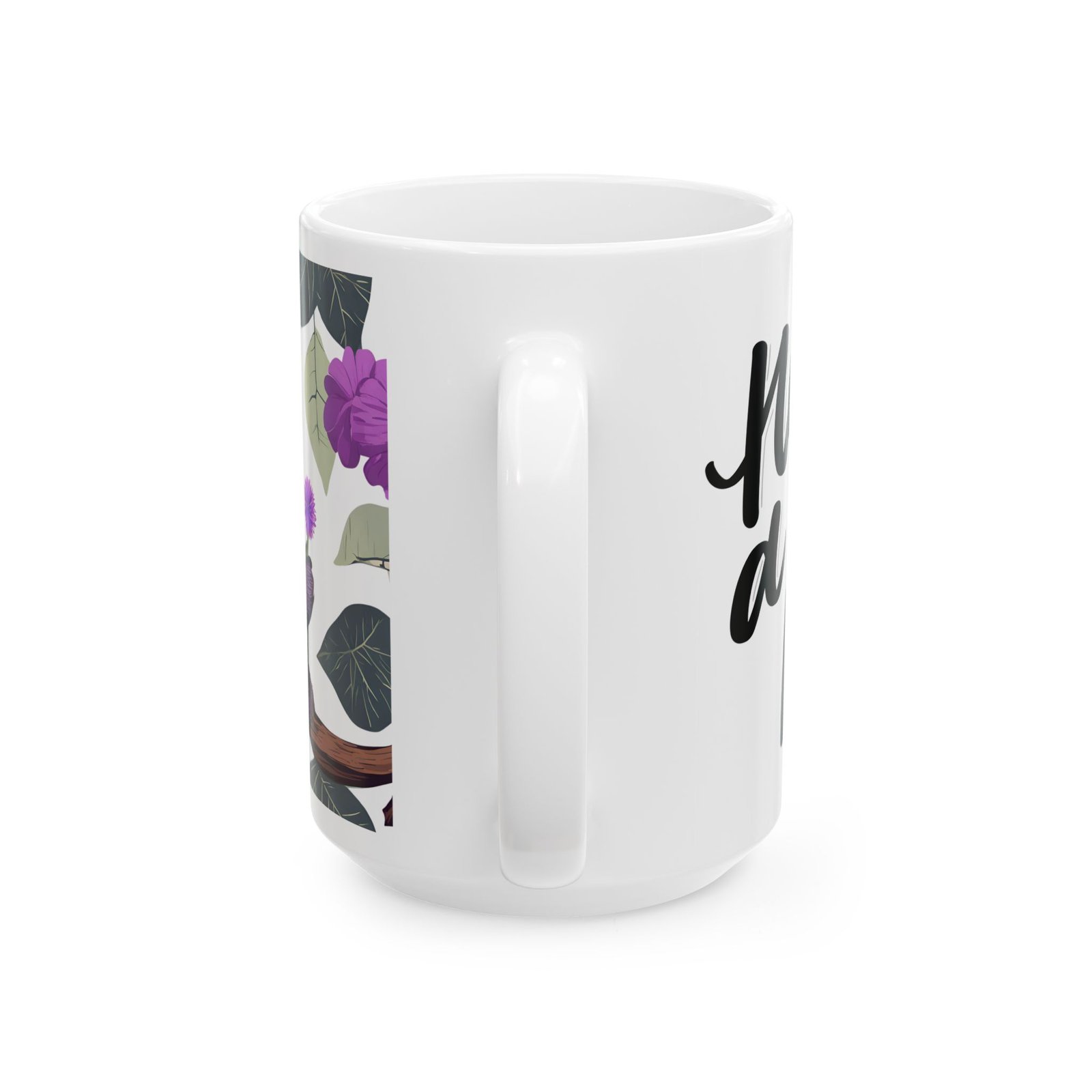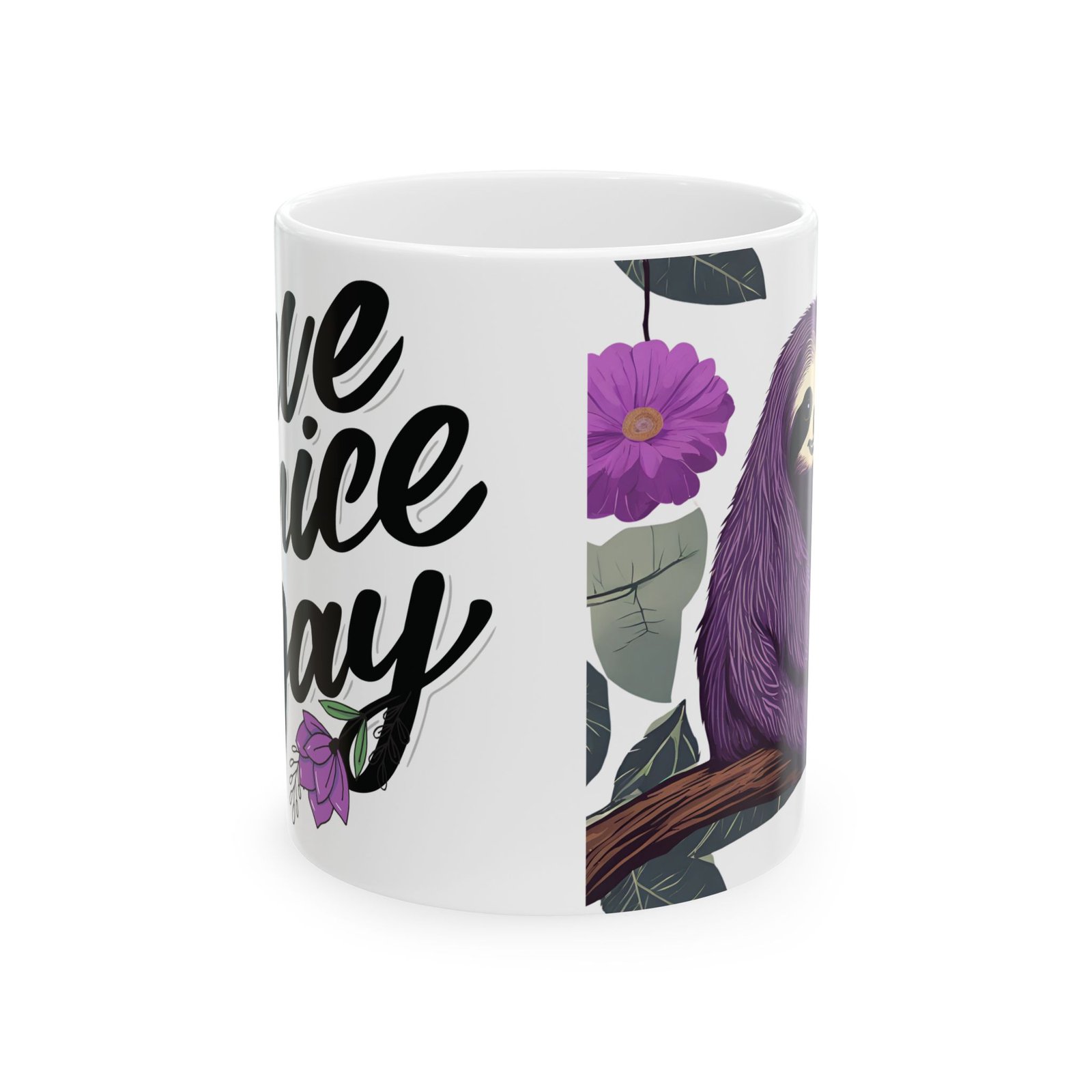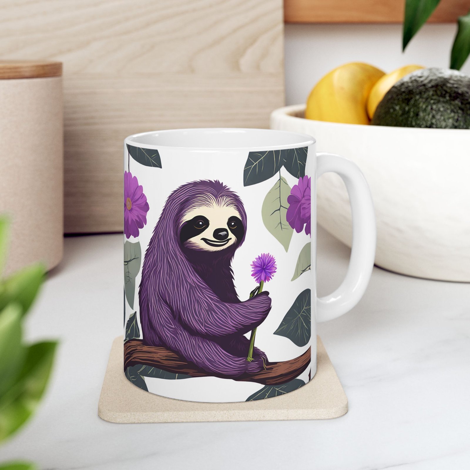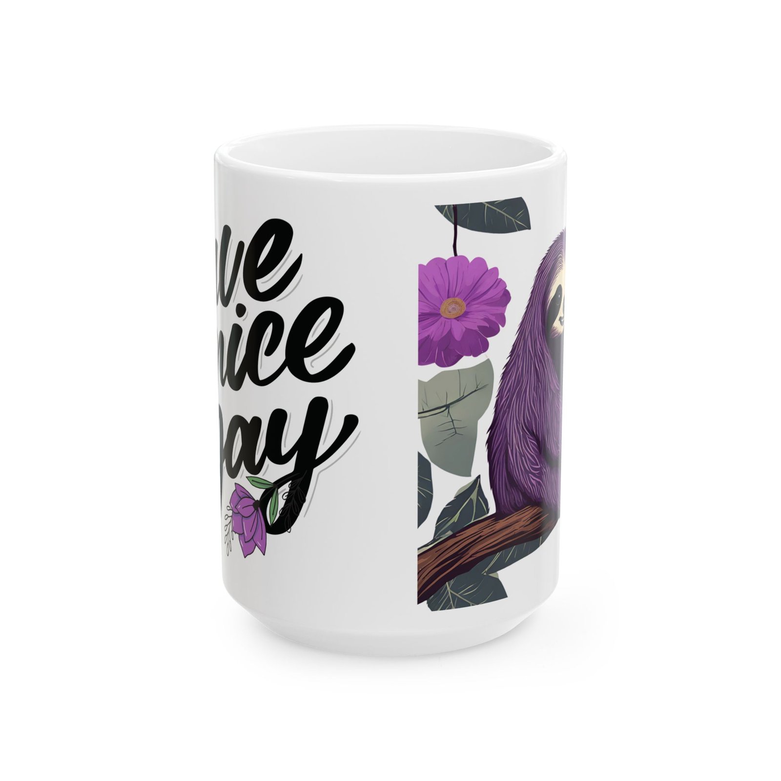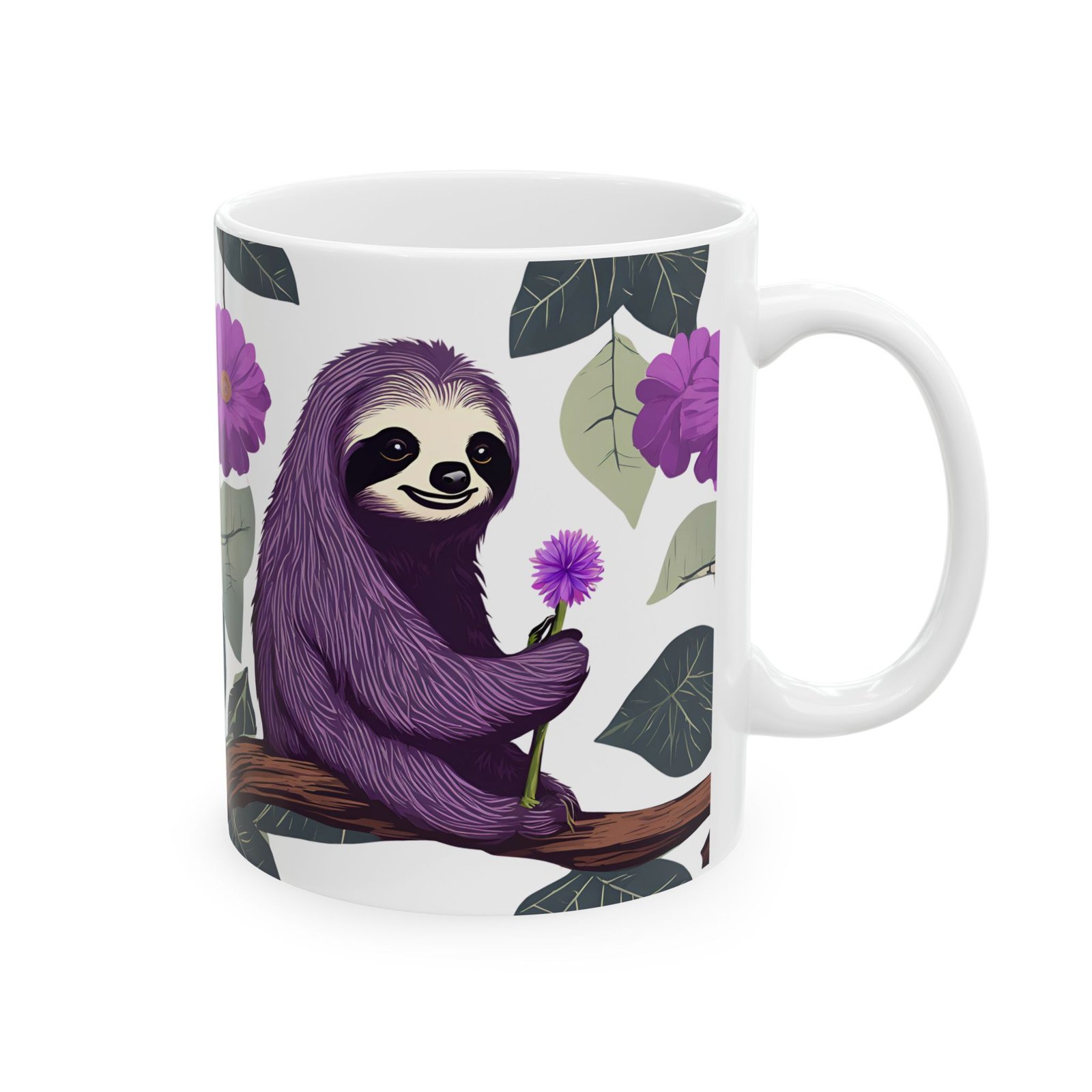 sloth mug, happy mug, purple flowers mug, cute sloth coffee mug, 11oz mug, 15oz mug, sloth lover gift, have a nice day mug, cute coffee mug, happy gift idea, ceramic mug