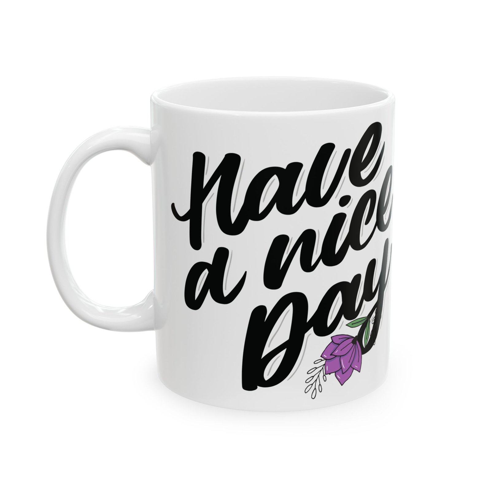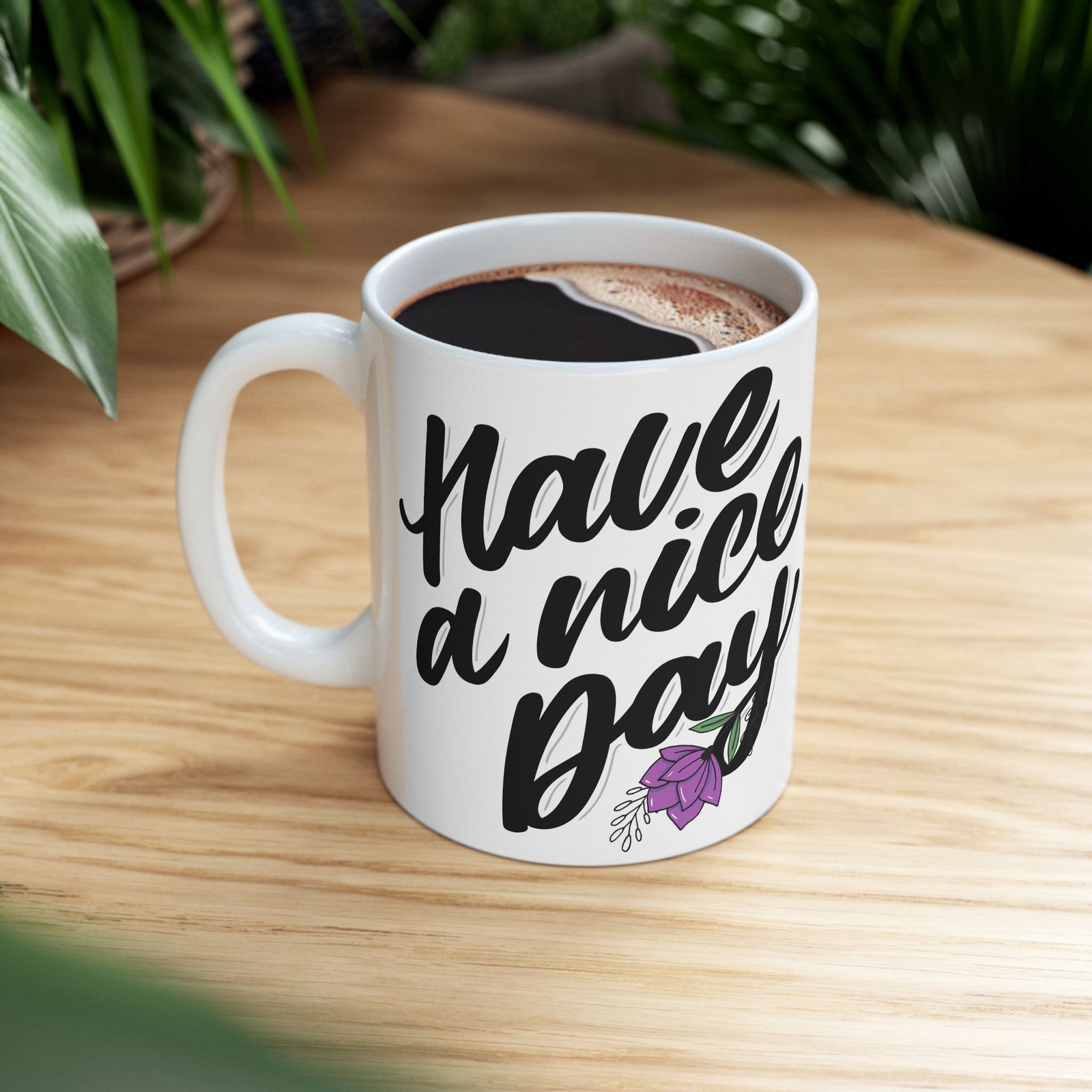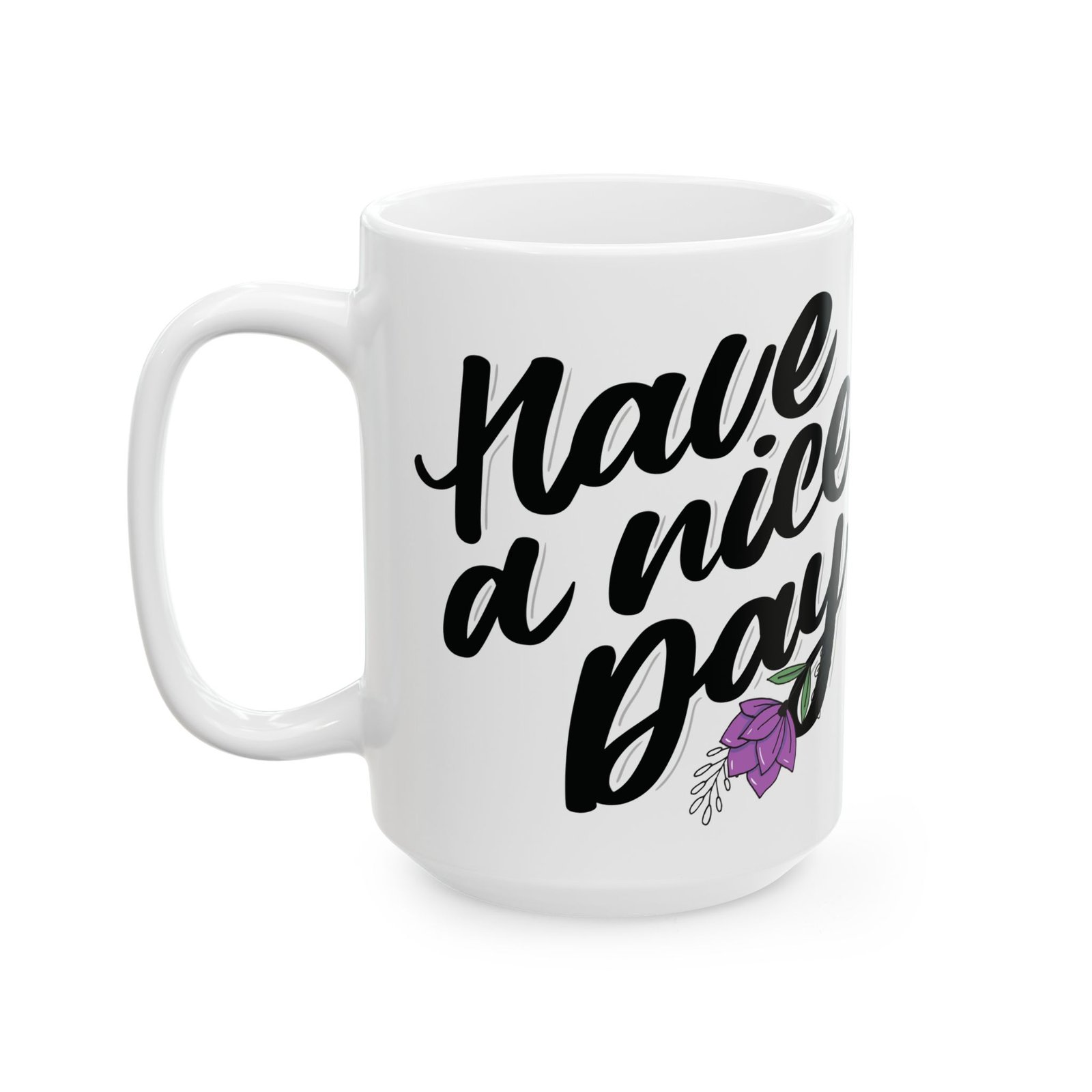 Brighten up your mornings with this adorable Have a Nice Day sloth mug! Featuring a super cute sloth surrounded by beautiful purple flowers, this happy mug is the perfect companion for your coffee or tea. Available in both 11oz and 15oz sizes, it’s designed to bring a smile to your face every time you take a sip. Whether you’re a sloth lover or just need a little extra cheer in your day, this mug is guaranteed to add some happiness to your routine!