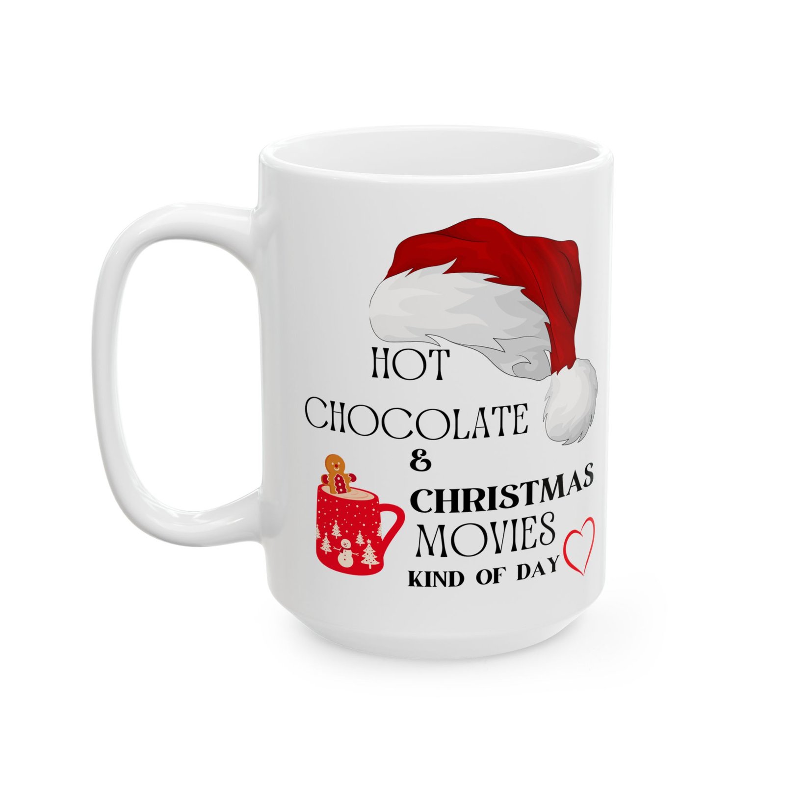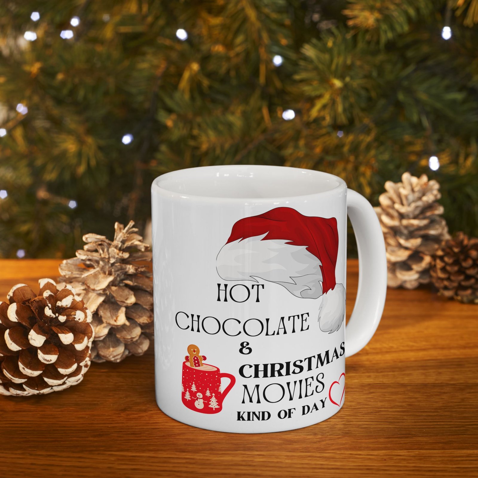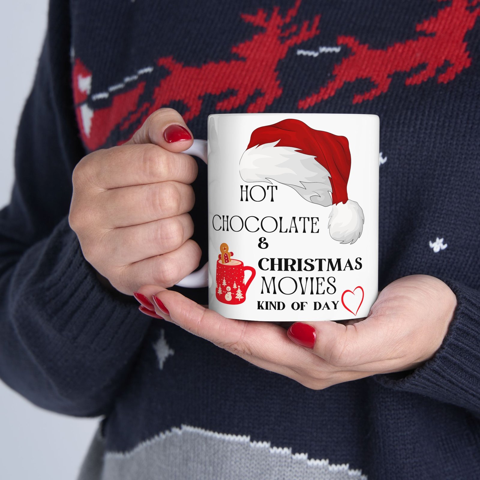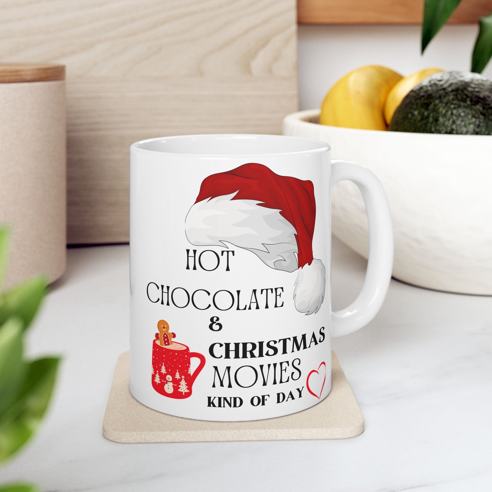 Get into the festive spirit with our ‘Hot Chocolate & Christmas Movies Kind of Day’ mug. This large ceramic mug is designed for those special moments when you want to unwind with a warm drink and your favorite holiday films. Featuring a fun Santa hat design and ample room for marshmallows, whipped cream, or extra toppings, it’s for hot chocolate, coffee, or tea. Crafted from ceramic, it’s durable, microwave-safe, and dishwasher-friendly, ensuring easy cleaning and long-lasting use. Make this mug a cozy staple for your winter season or gift it to friends and family who love celebrating the holidays in style.