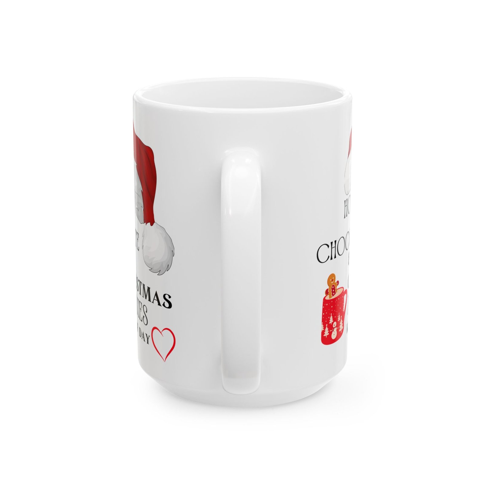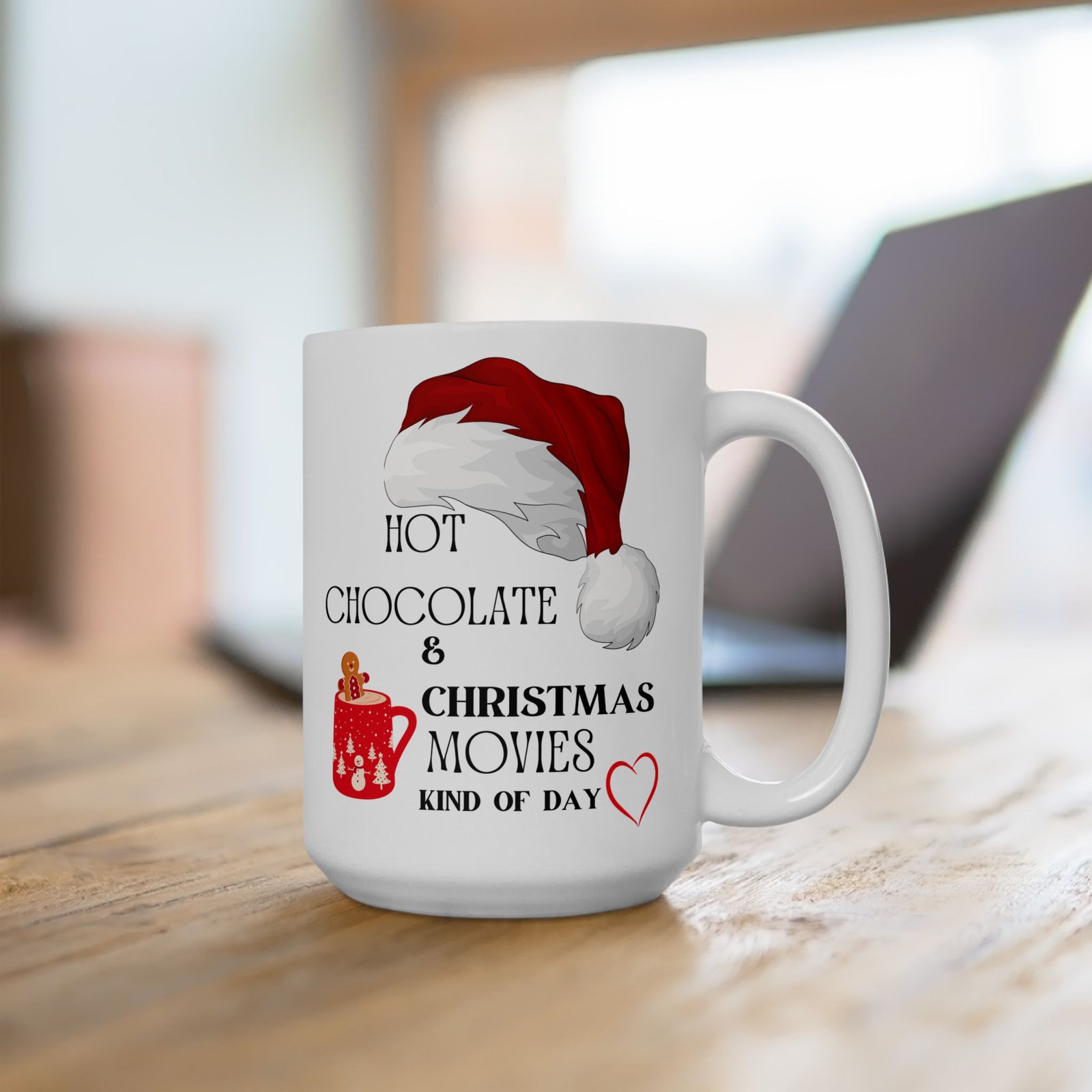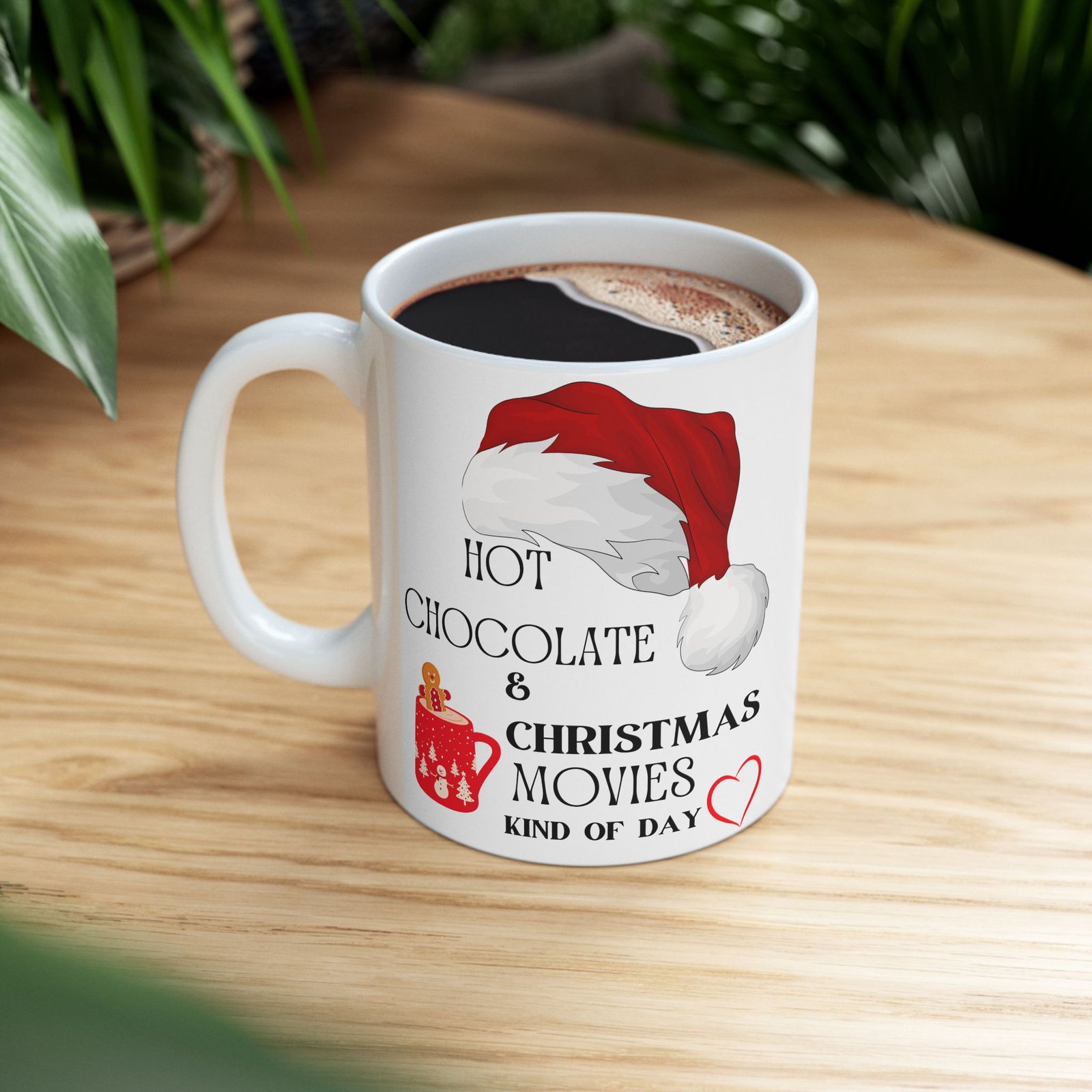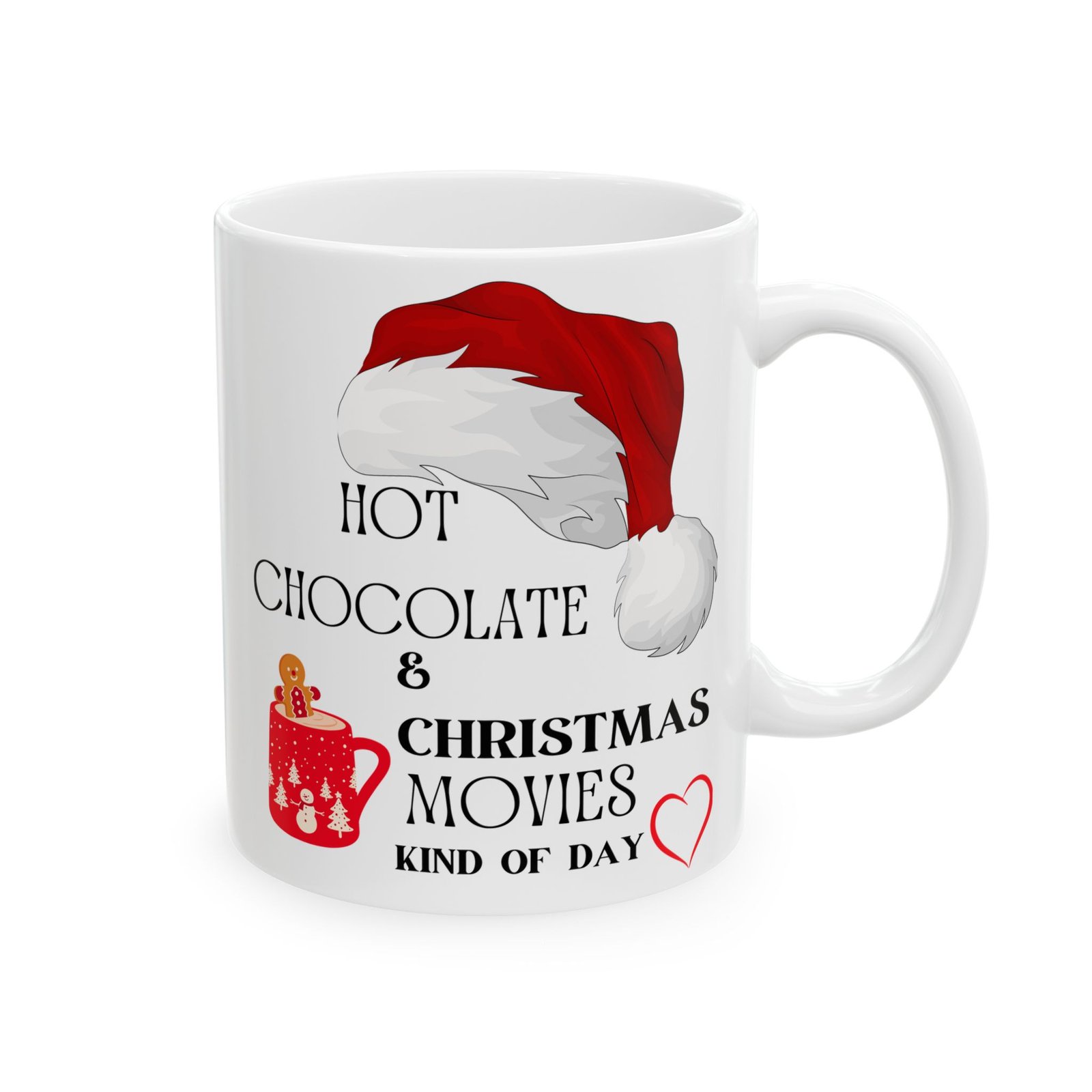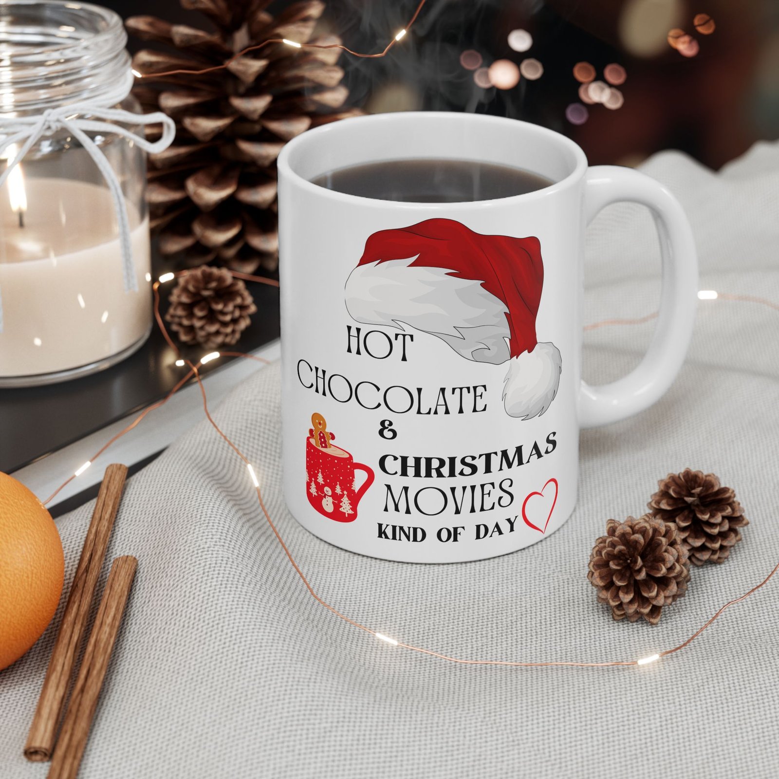 Get into the festive spirit with our ‘Hot Chocolate & Christmas Movies Kind of Day’ mug. This large ceramic mug is designed for those special moments when you want to unwind with a warm drink and your favorite holiday films. Featuring a fun Santa hat design and ample room for marshmallows, whipped cream, or extra toppings, it’s for hot chocolate, coffee, or tea. Crafted from ceramic, it’s durable, microwave-safe, and dishwasher-friendly, ensuring easy cleaning and long-lasting use. Make this mug a cozy staple for your winter season or gift it to friends and family who love celebrating the holidays in style.