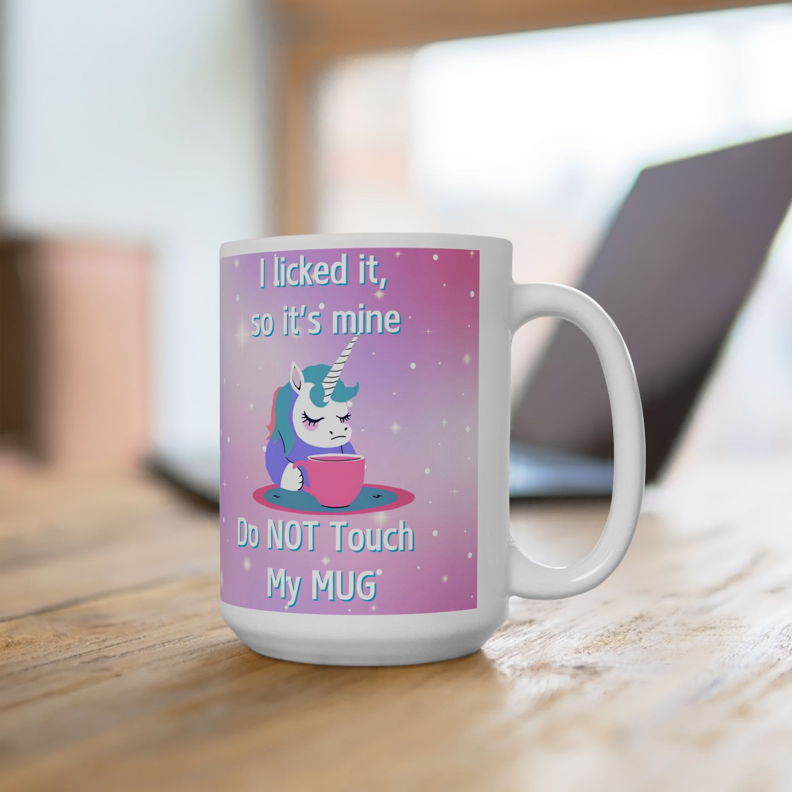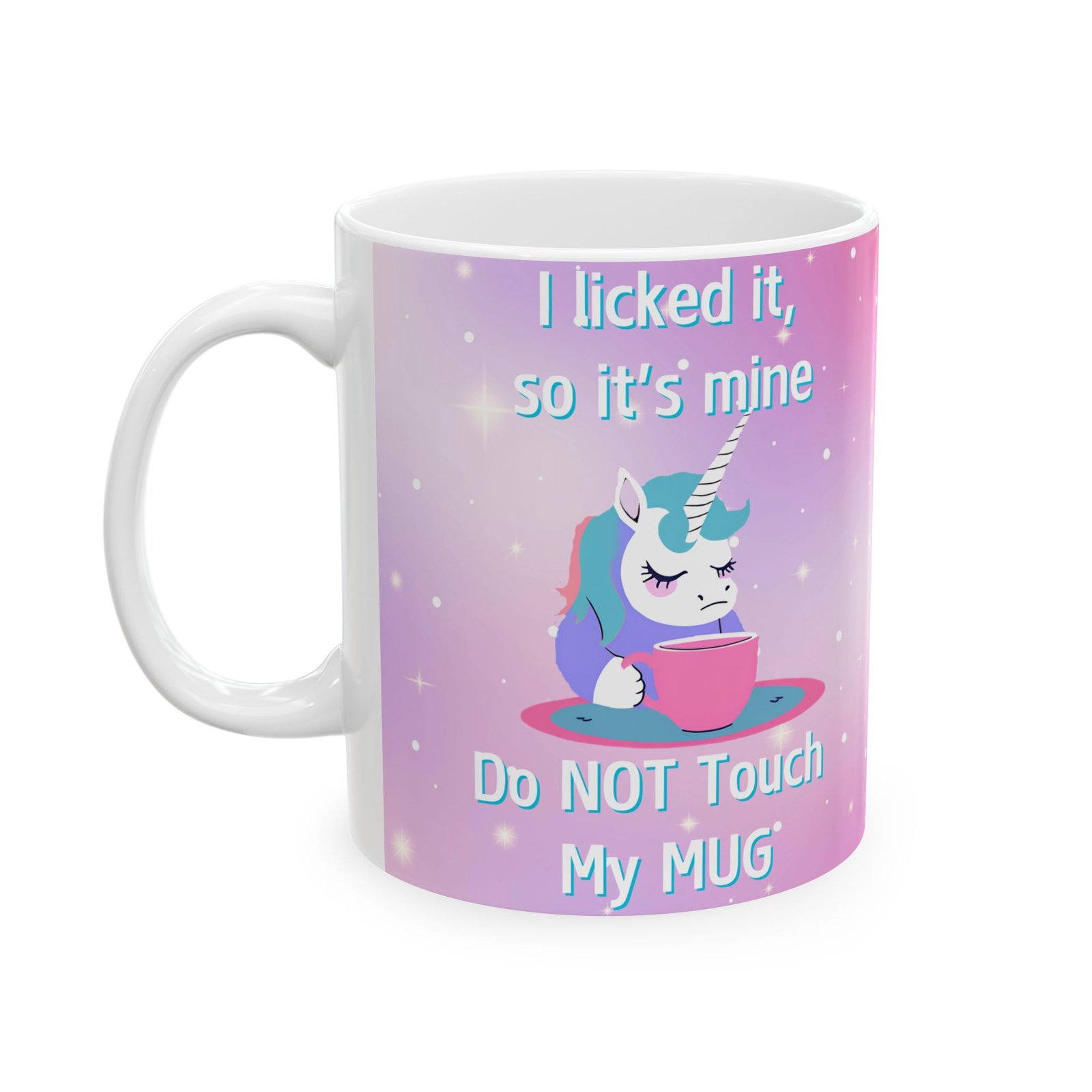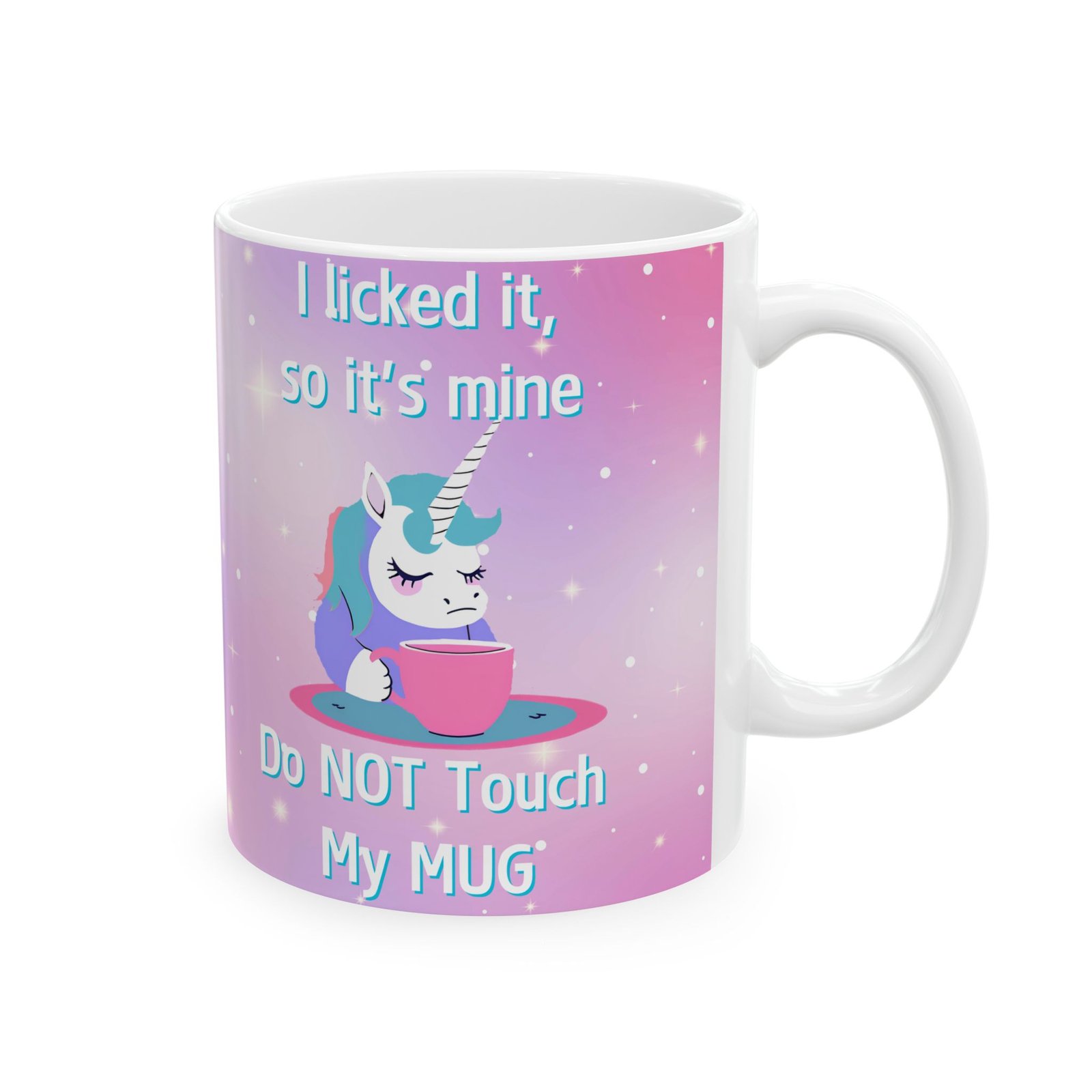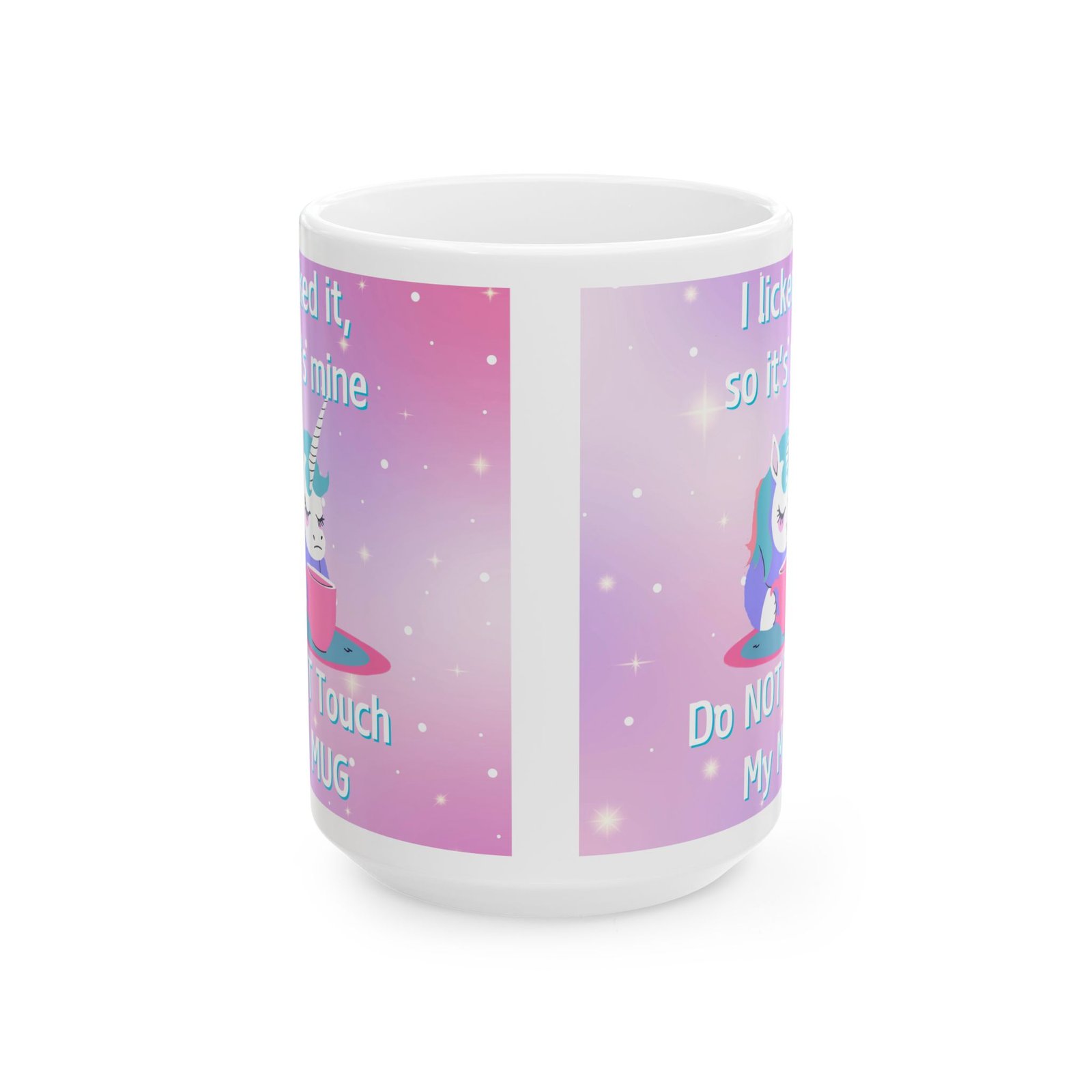 Add some sass to your coffee breaks with the “I Licked It So It’s Mine” mug! Featuring a delightful unicorn sipping from a mug, surrounded by pastel colors, this mug is the perfect blend of pretty and assertive. Ideal for anyone who loves a bit of humor with their daily dose of caffeine, it’s a fun way to let everyone know to keep their hands off your mug. Made from durable ceramic, this whimsical yet practical mug is microwave and dishwasher safe, making it as easy to care for as it is fun to use.