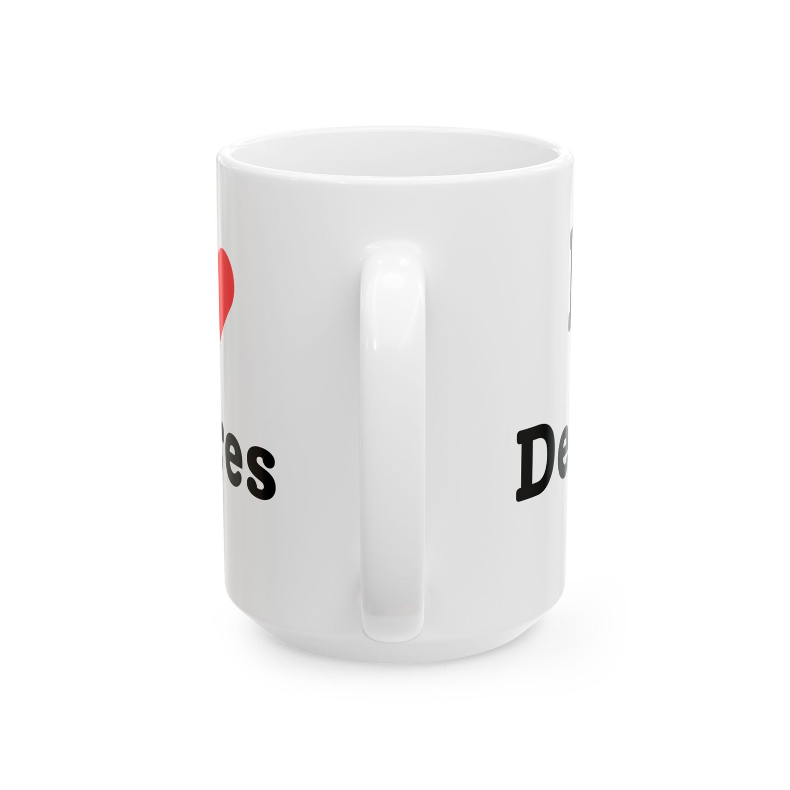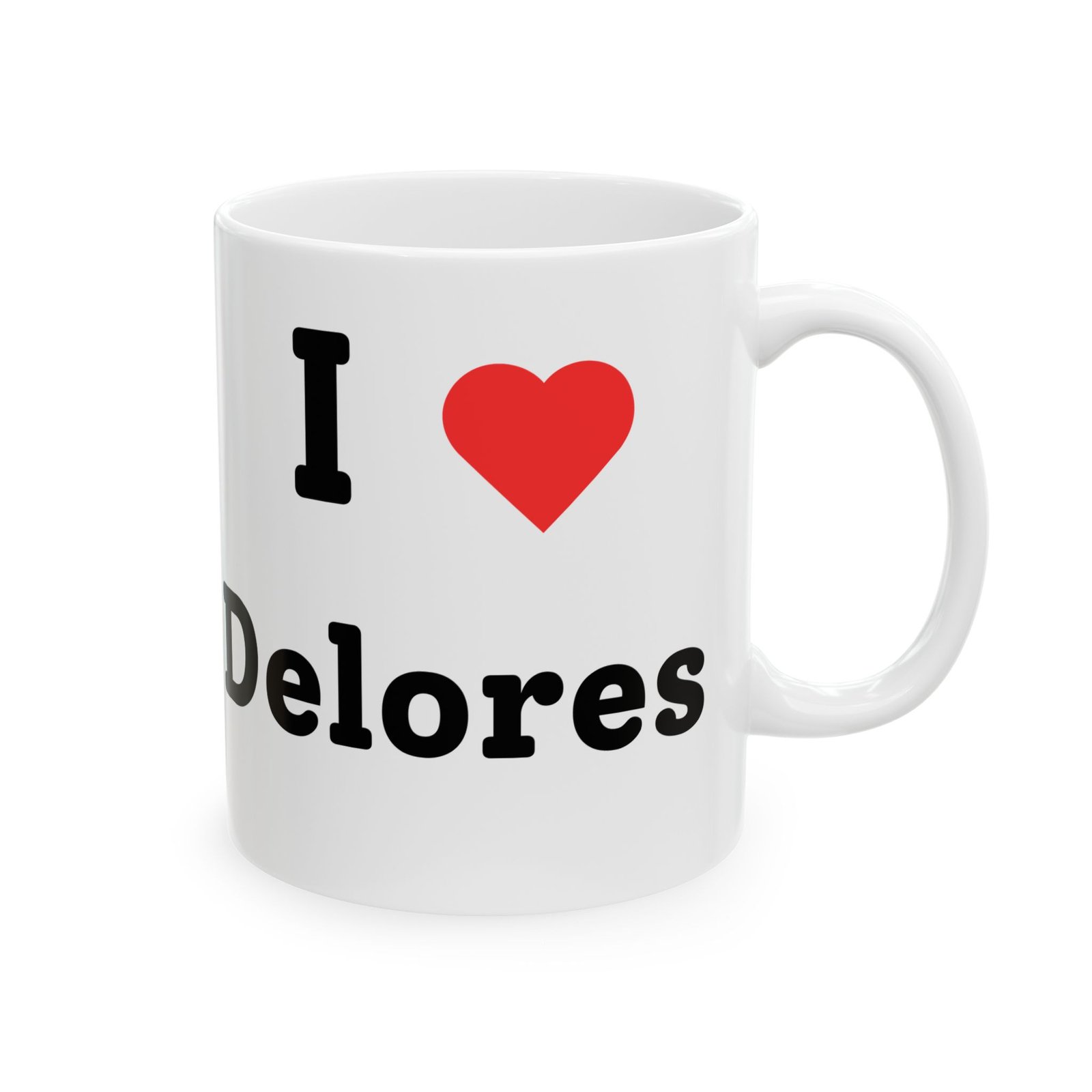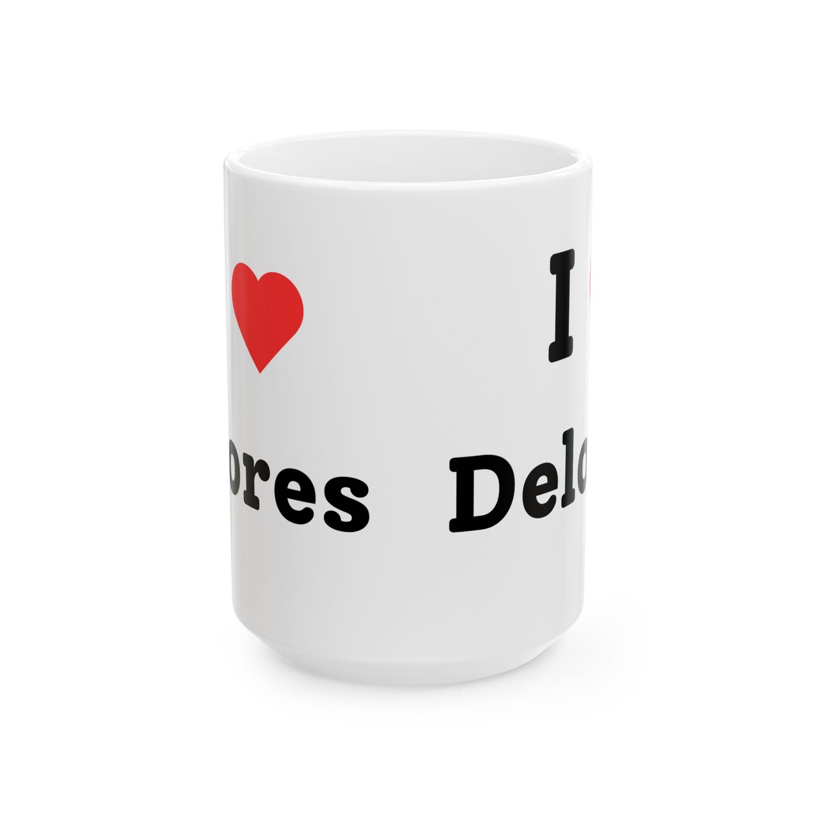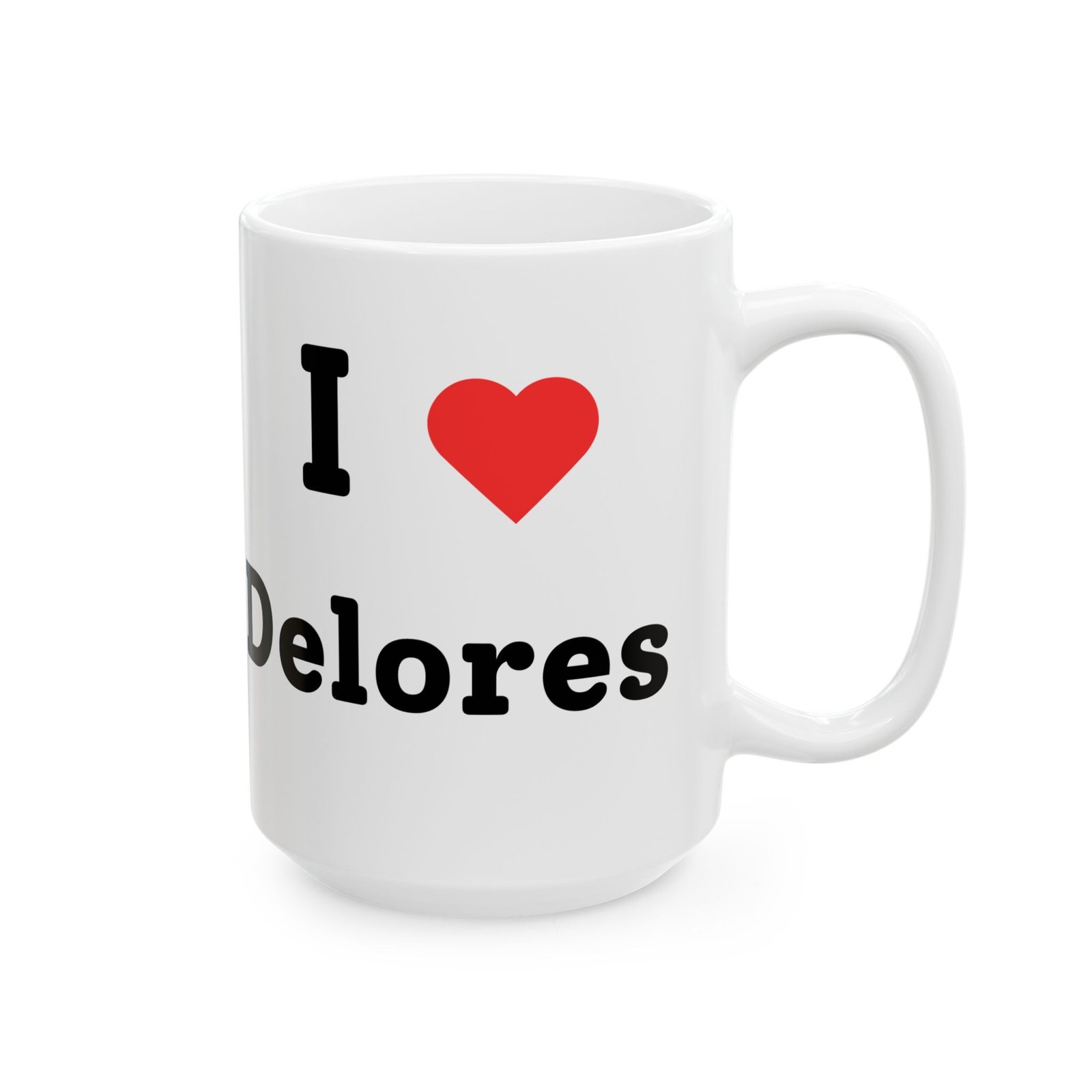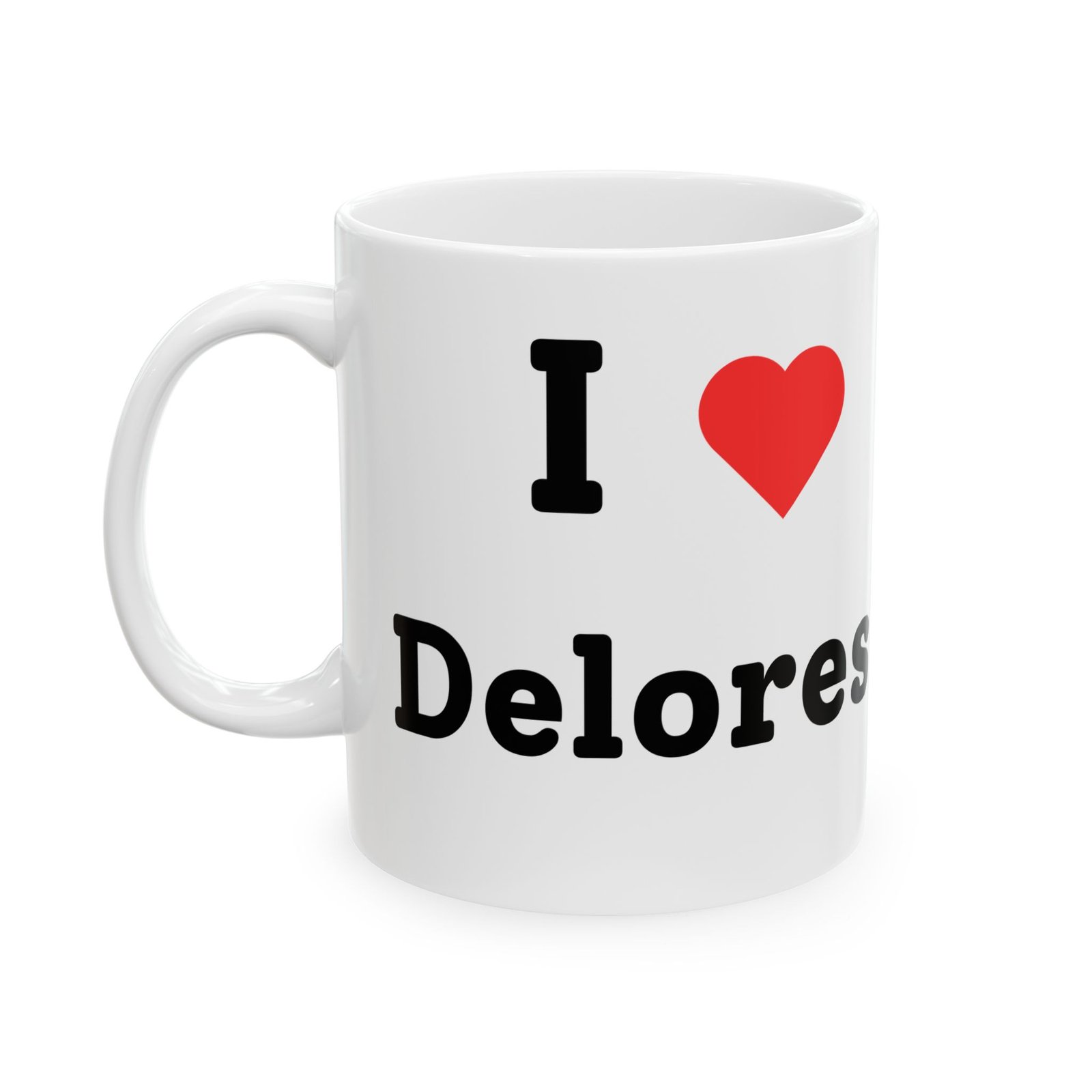 Bring a little spooky humor to your coffee breaks with this fun “I Love Delores” mug, inspired by the character Betelgeuse! Whether you’re getting ready for a Halloween party or simply want to add a bit of the eerie season to your everyday routine, this mug will get you into the festive spirit. Available in both 11oz and 15oz sizes, it’s for sipping your fall drinks like pumpkin spice lattes or mulled cider. Made from durable ceramic and printed with vibrant, colors, this mug is microwave and dishwasher safe, making it as practical as it is funny. as a Halloween party favor, it’s sure to delight anyone who loves the spooky season!