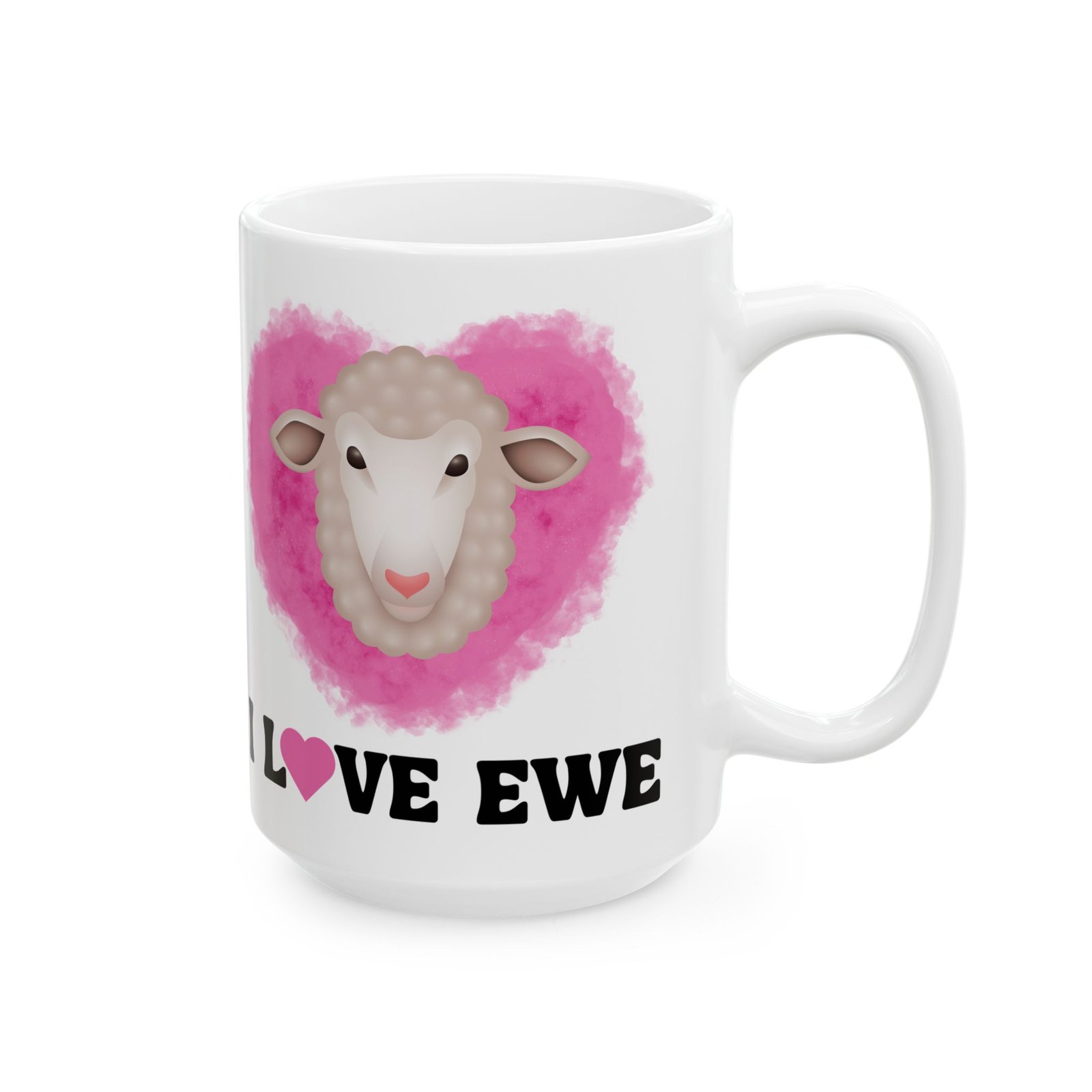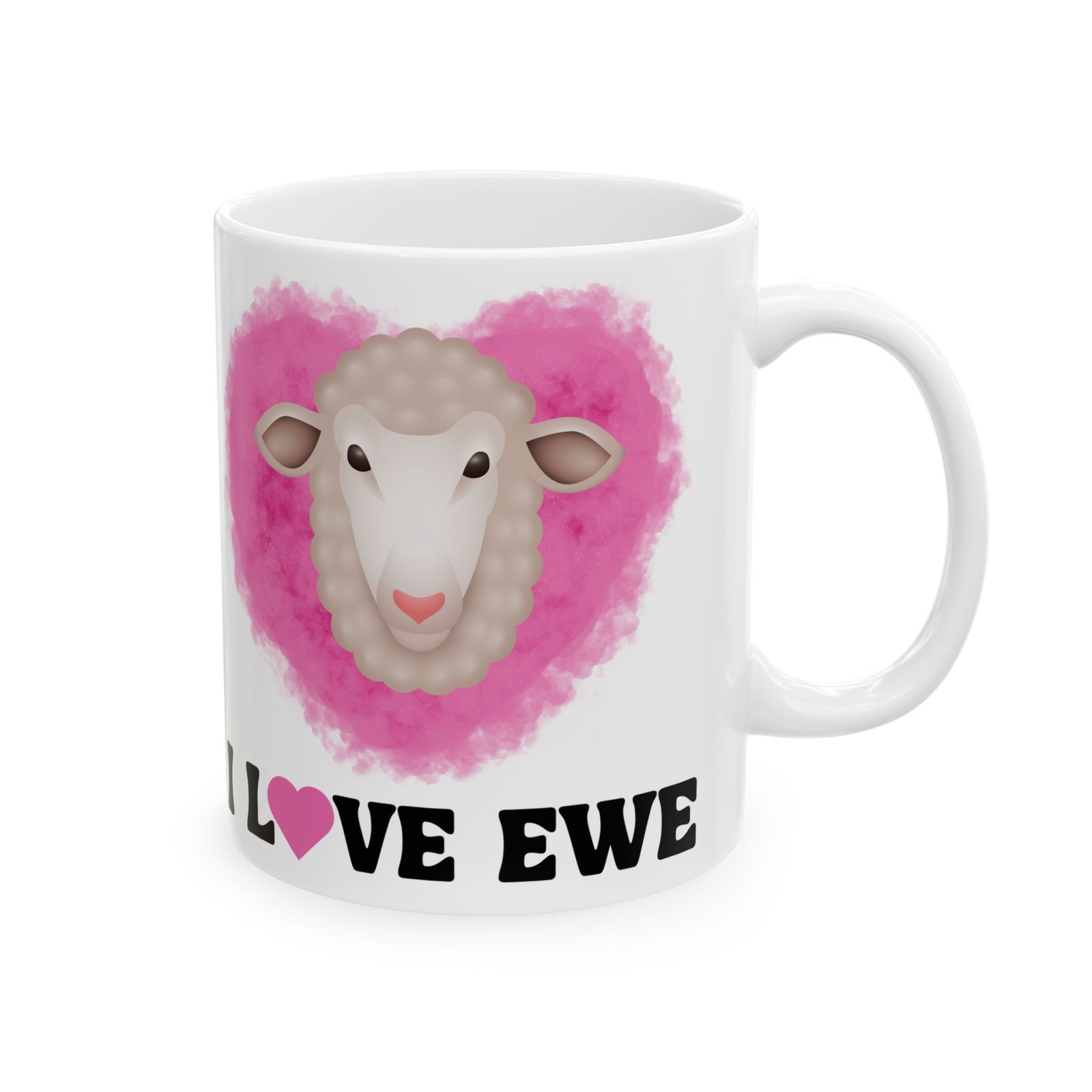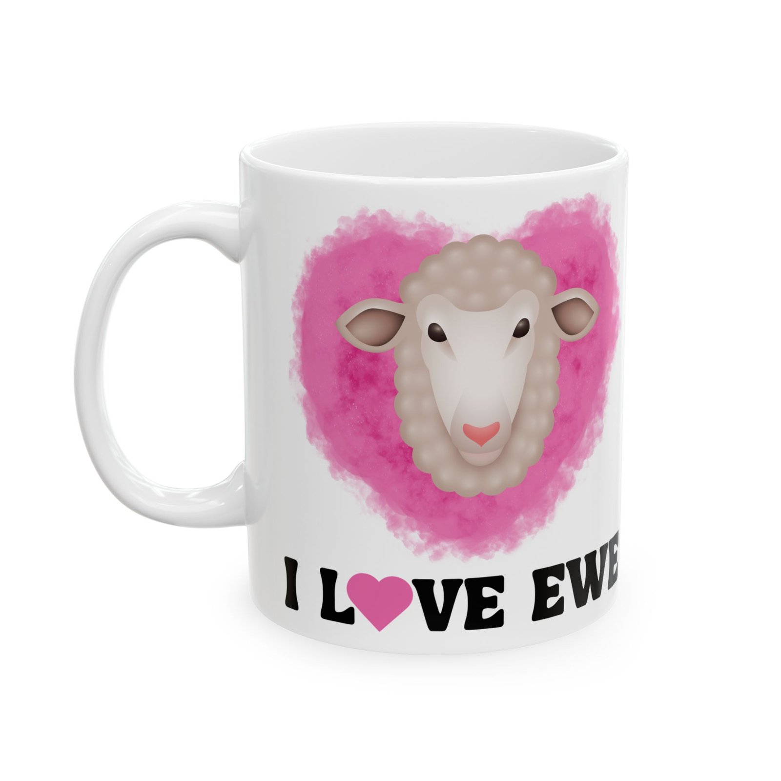 Spread the love with our “I Love Ewe” Mug, featuring an irresistibly cute sheep and a pink heart!