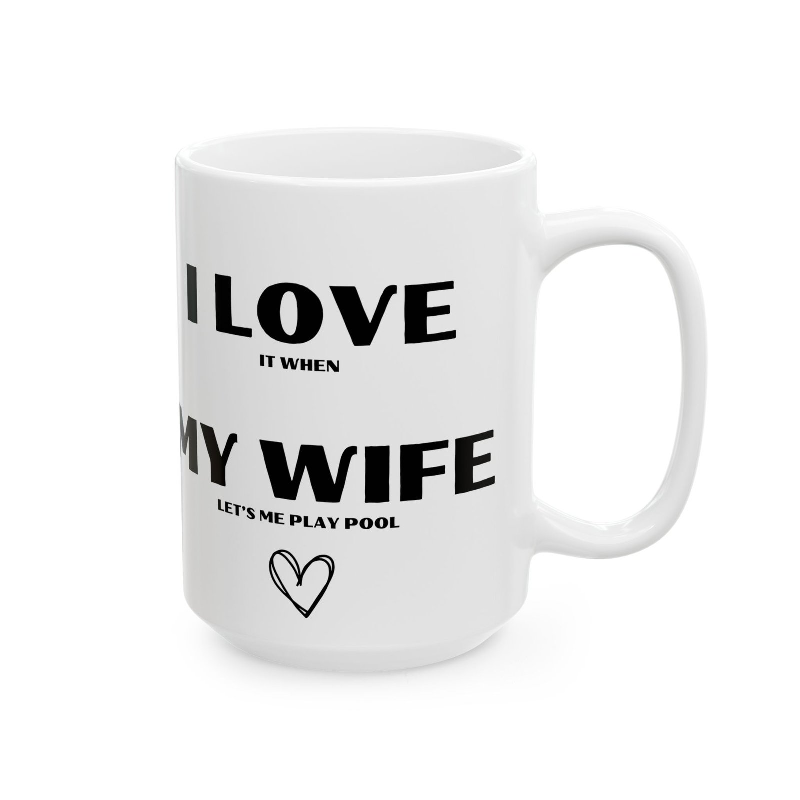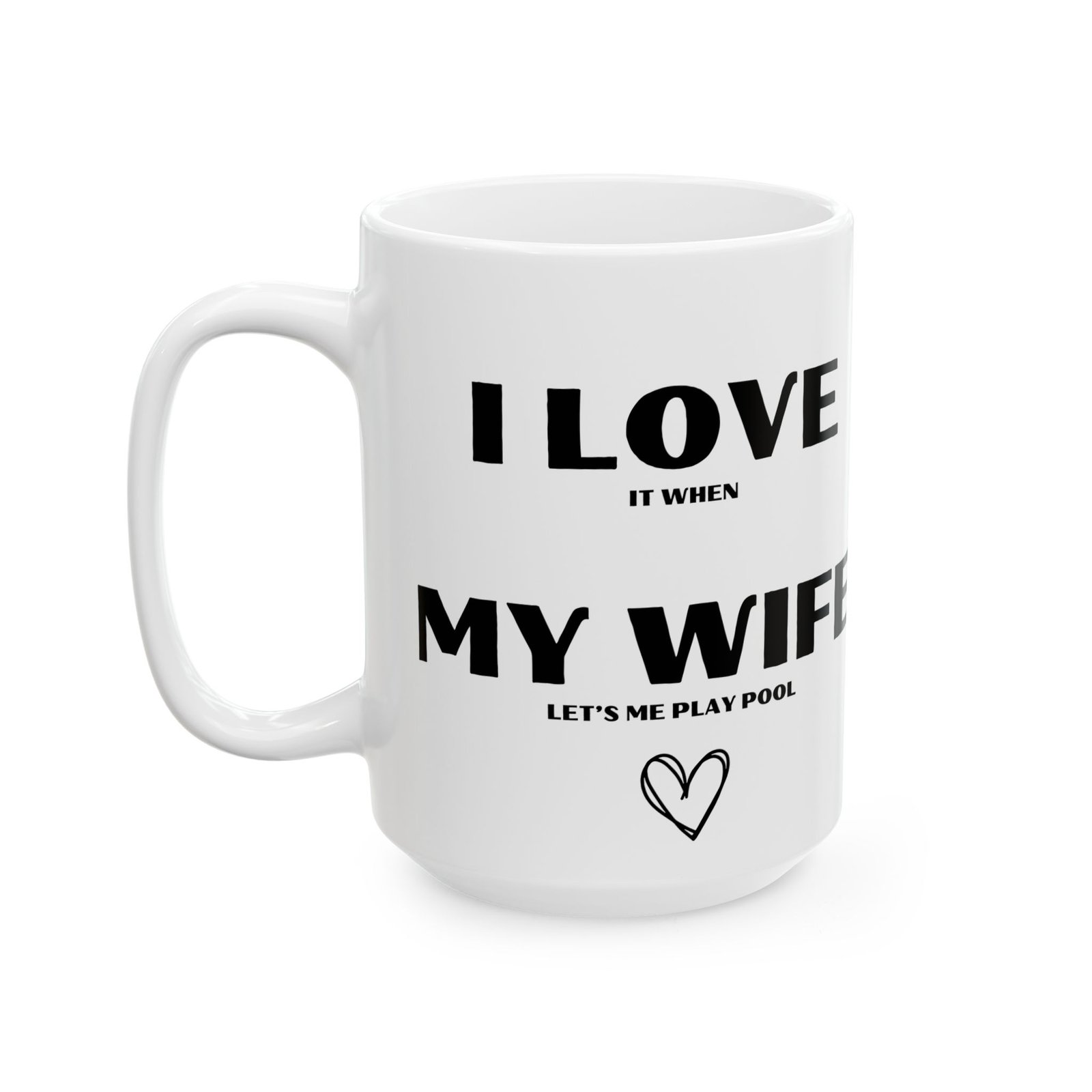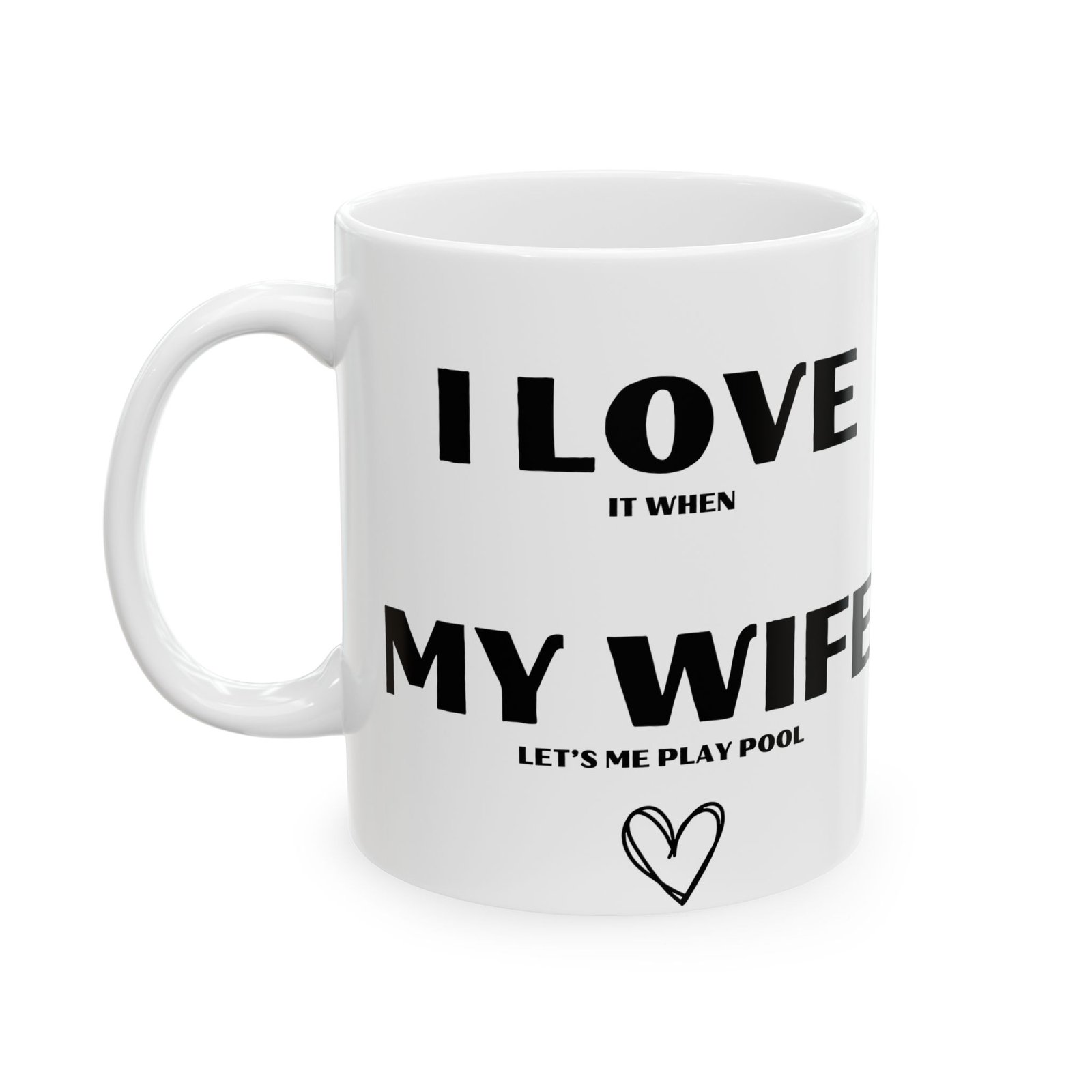 Bring a smile to any pool enthusiast’s face with this hilarious “I Love It When My Wife Lets Me Play Pool” mug.