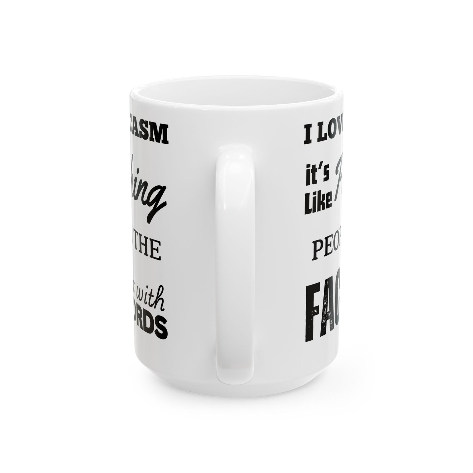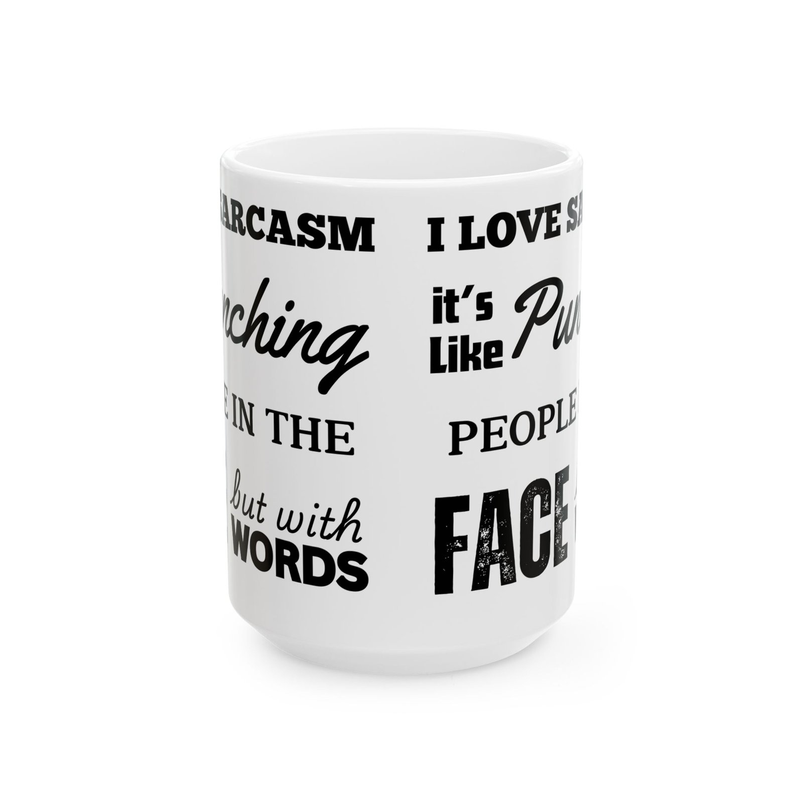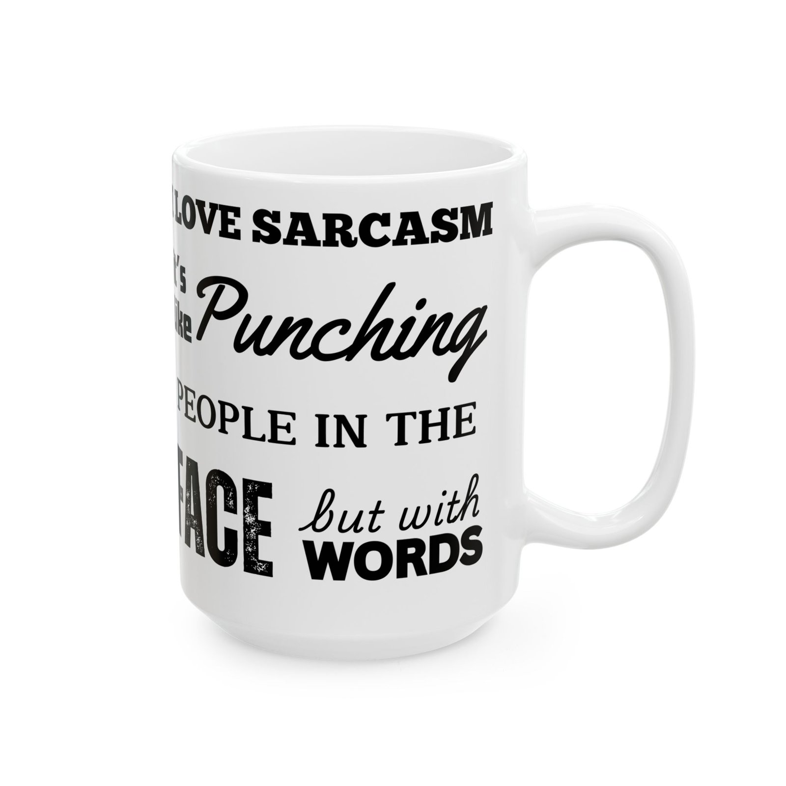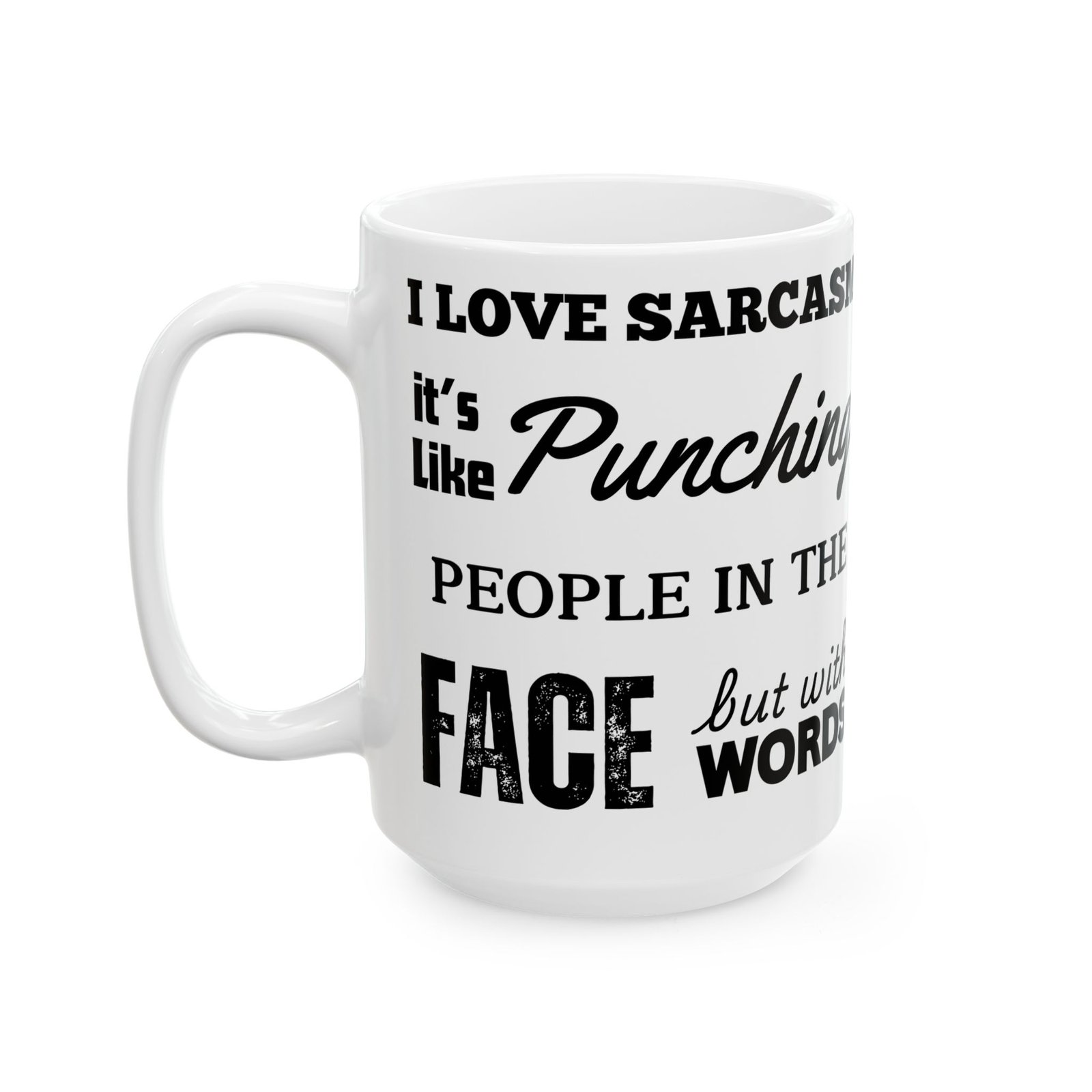 If sarcasm is your second language, this “I Love Sarcasm” mug is for you! Featuring the hilarious quote “It’s Like Punching People in the Face but with Words,” this mug is the perfect way to start your day with a laugh. Whether it’s for your daily cup of coffee or tea, or as a funny gift for someone who loves sarcasm, this high-quality ceramic mug is sure to make an impression. Microwave and dishwasher safe, it’s as practical as it is entertaining.