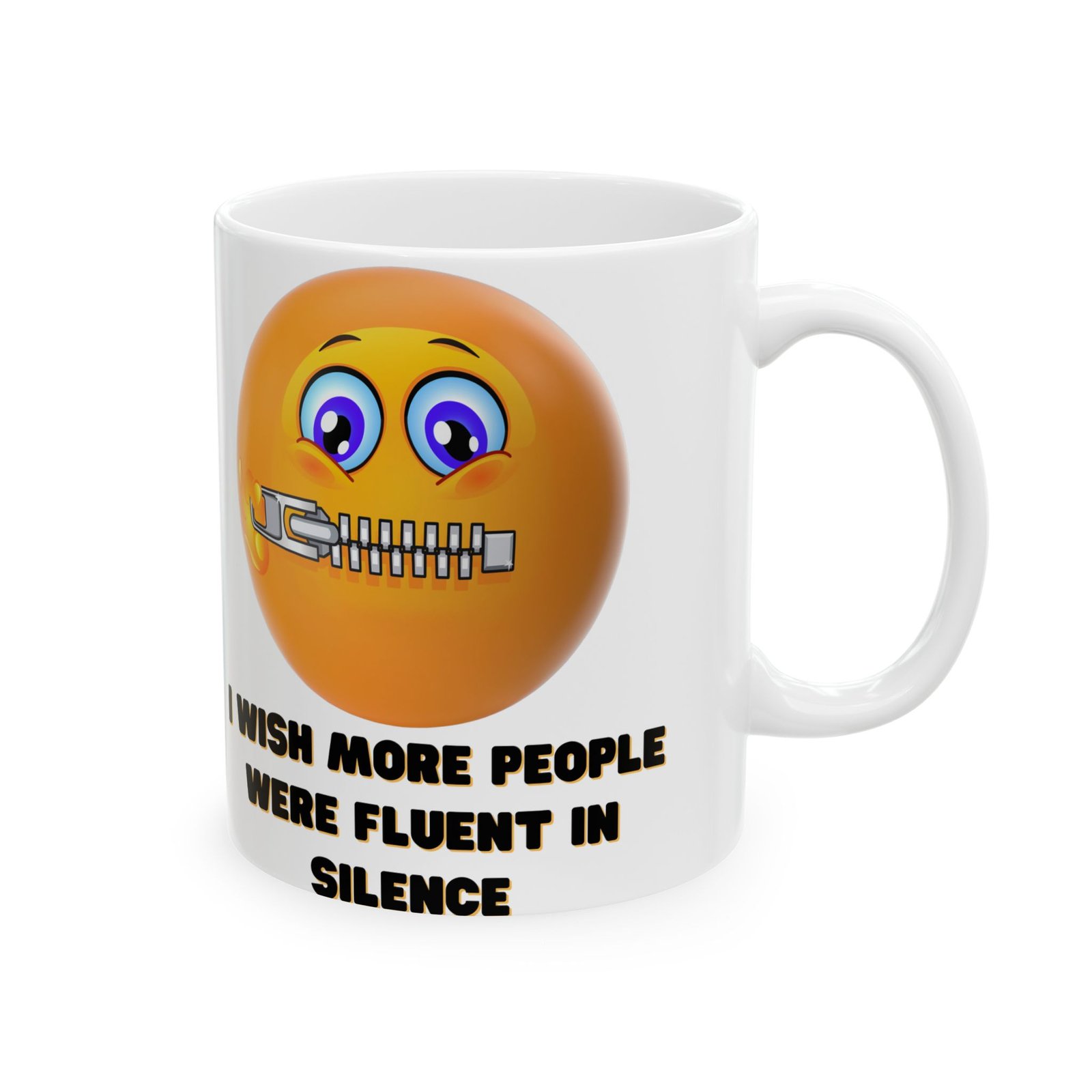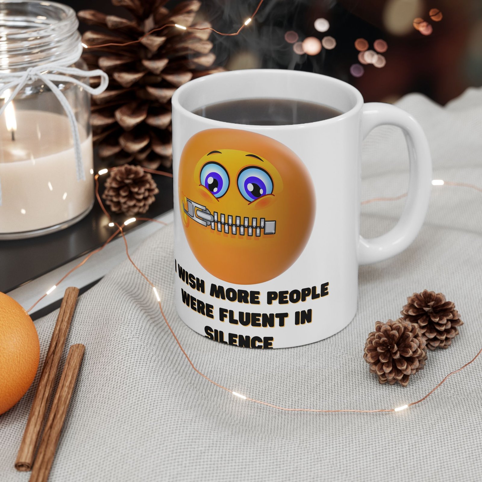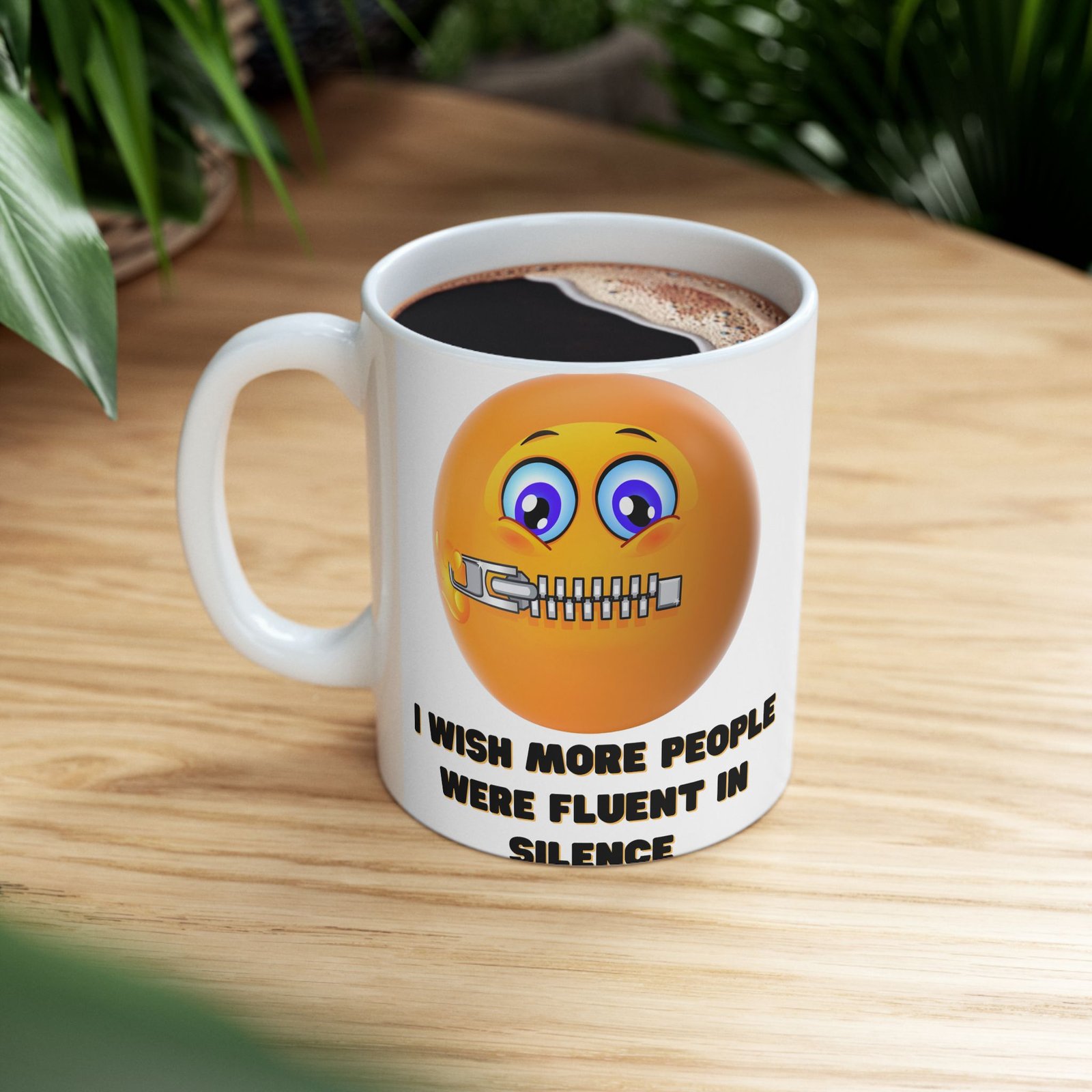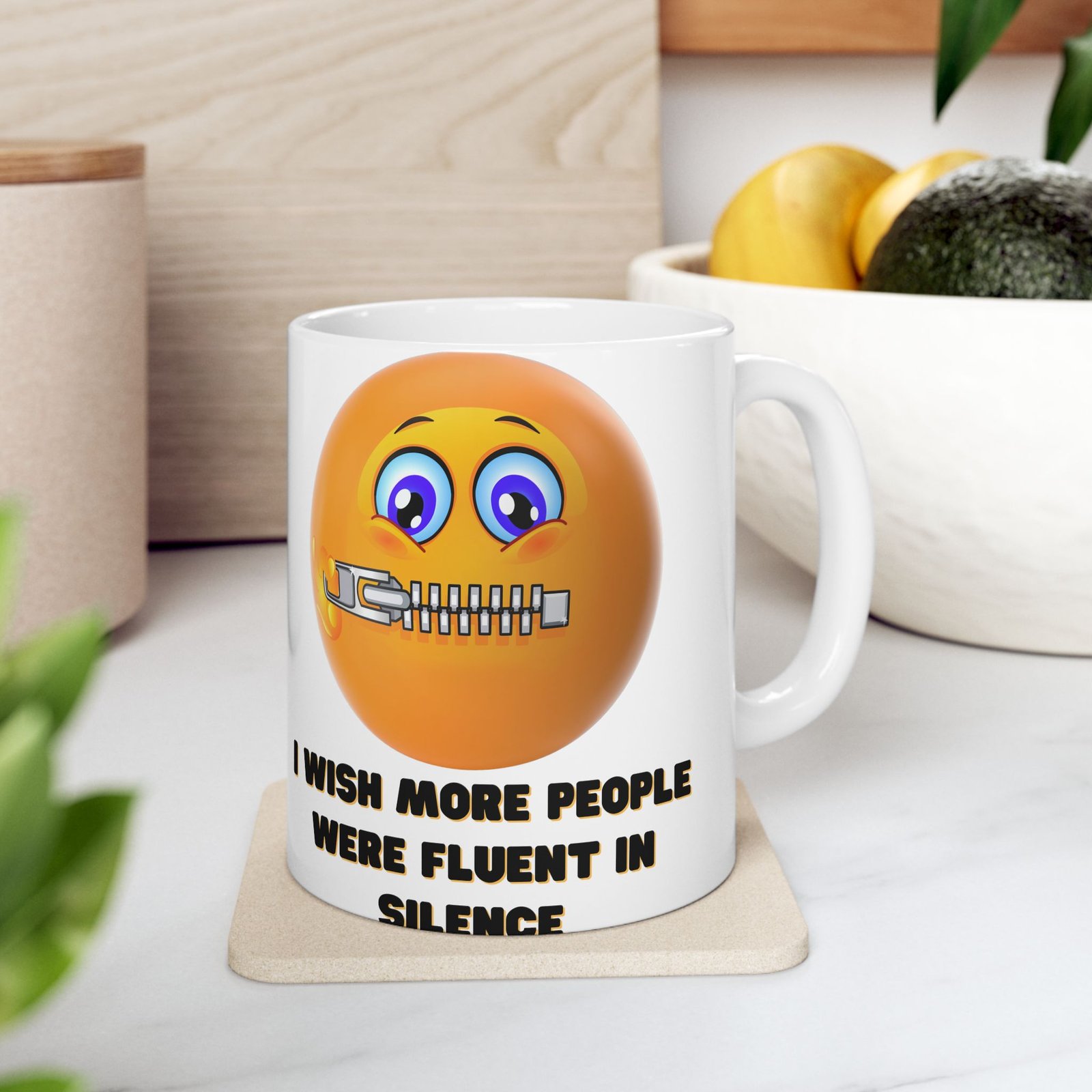 Add some sass to your coffee break with this funny mug featuring the phrase “I Wish More People Were Fluent in Silence” paired with a zipped-mouth emoji! Whether you’re trying to drop a subtle hint at the office or just enjoy a quiet moment at home, this mug is sure to bring a smile to your face (and maybe a little quiet to your surroundings). Available in both 11oz and 15oz sizes, it’s perfect for sipping your favorite hot beverages. The ceramic material is microwave and dishwasher safe, while the bold, vibrant print ensures this cheeky message stays clear and bright. It’s also a perfect gift for that one friend who could use a little quiet time!