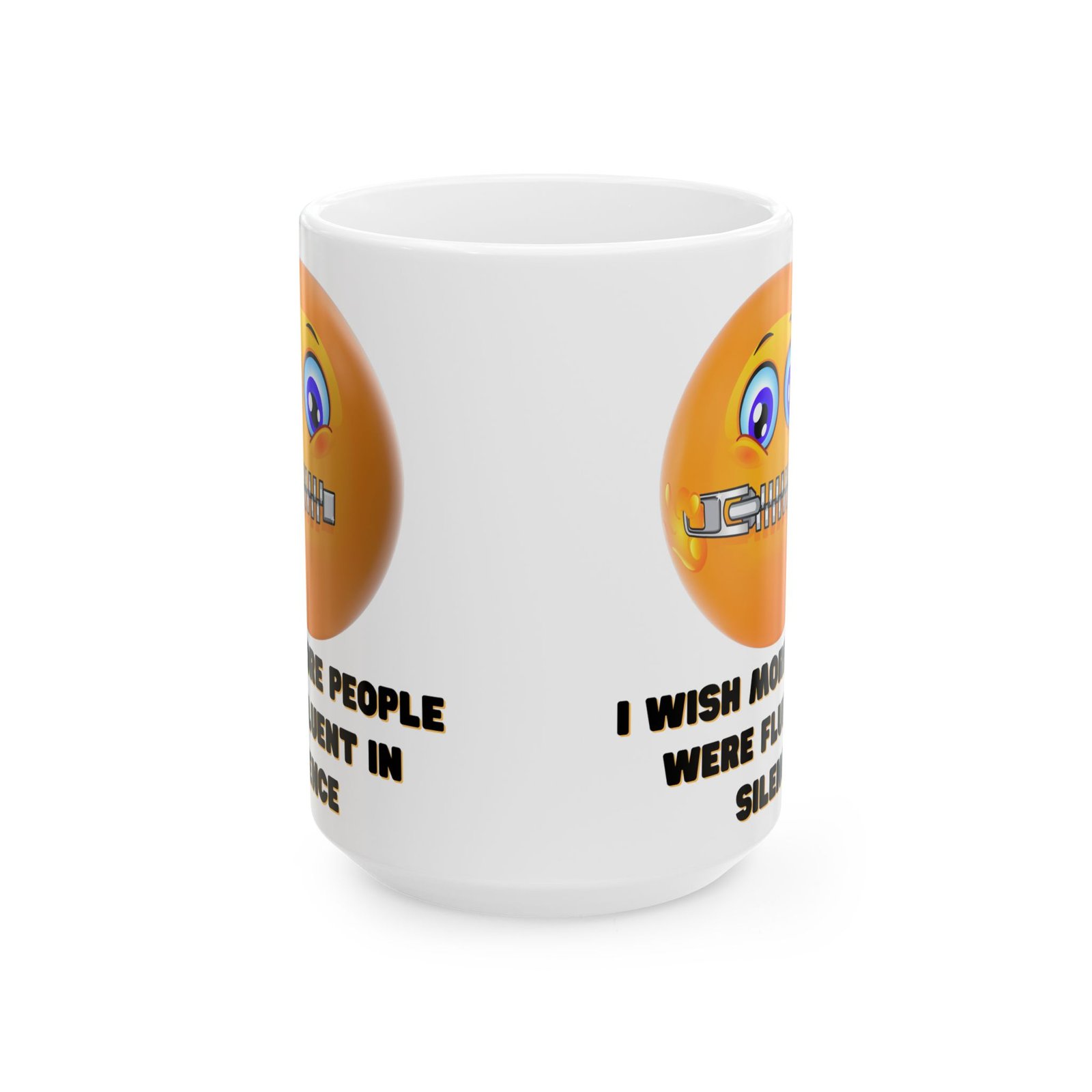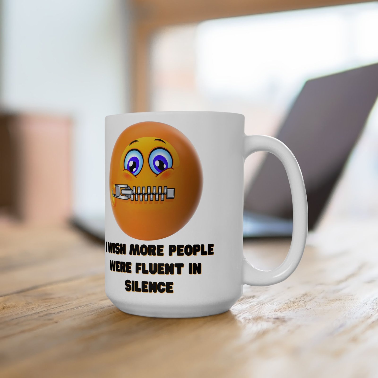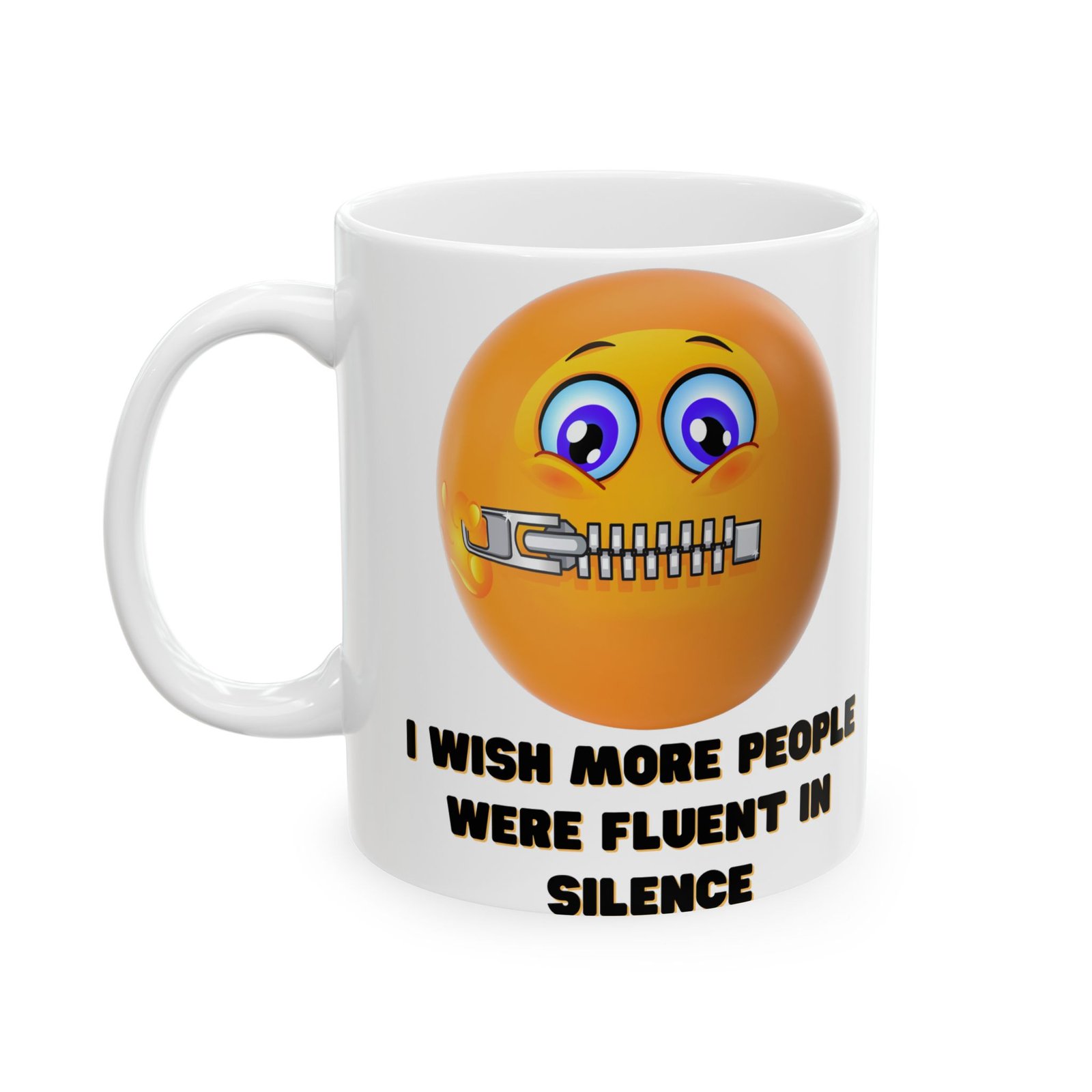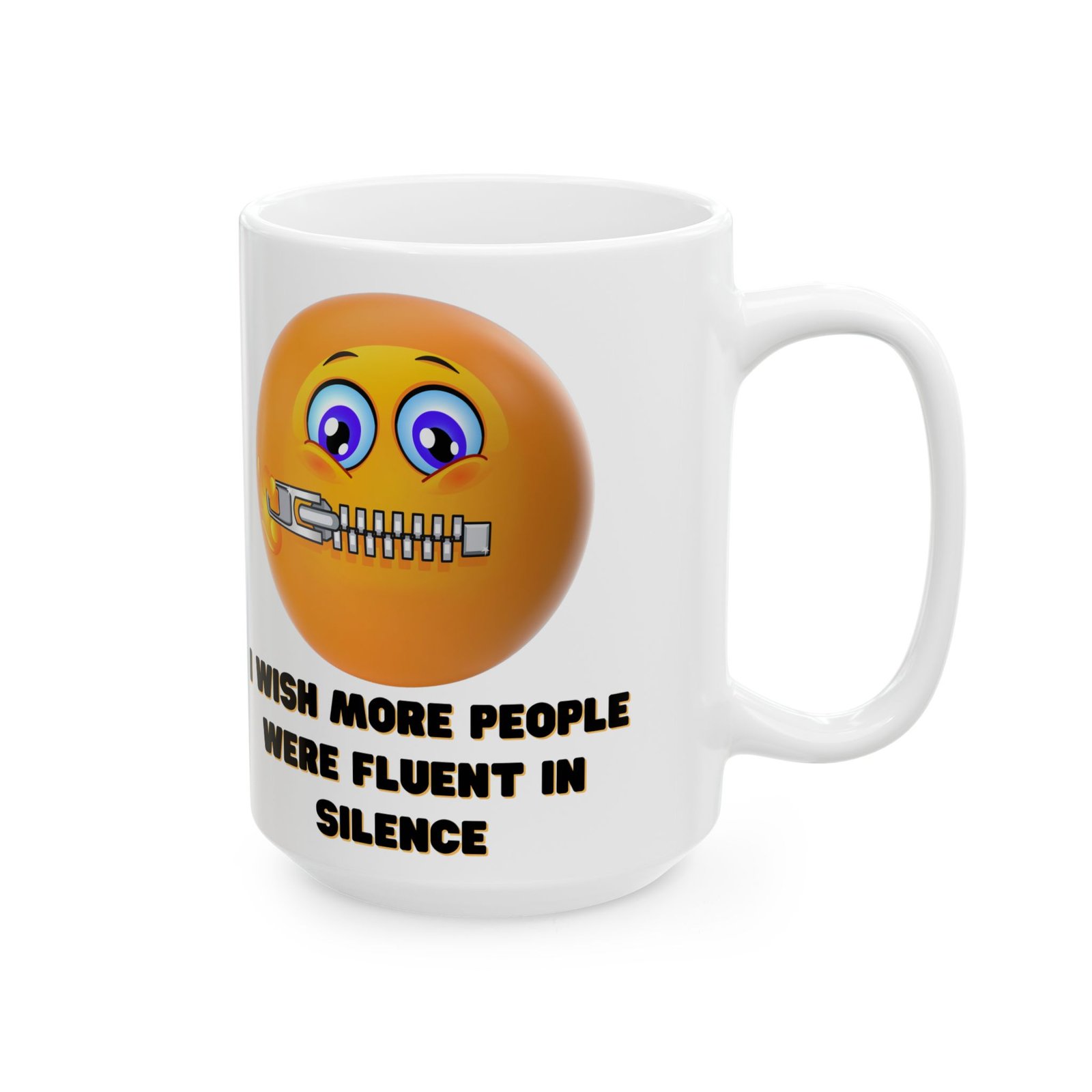 Add some sass to your coffee break with this funny mug featuring the phrase “I Wish More People Were Fluent in Silence” paired with a zipped-mouth emoji! Whether you’re trying to drop a subtle hint at the office or just enjoy a quiet moment at home, this mug is sure to bring a smile to your face (and maybe a little quiet to your surroundings). Available in both 11oz and 15oz sizes, it’s perfect for sipping your favorite hot beverages. The ceramic material is microwave and dishwasher safe, while the bold, vibrant print ensures this cheeky message stays clear and bright. It’s also a perfect gift for that one friend who could use a little quiet time!