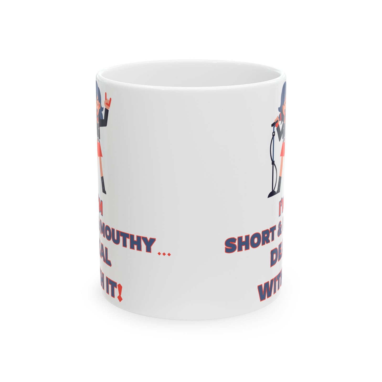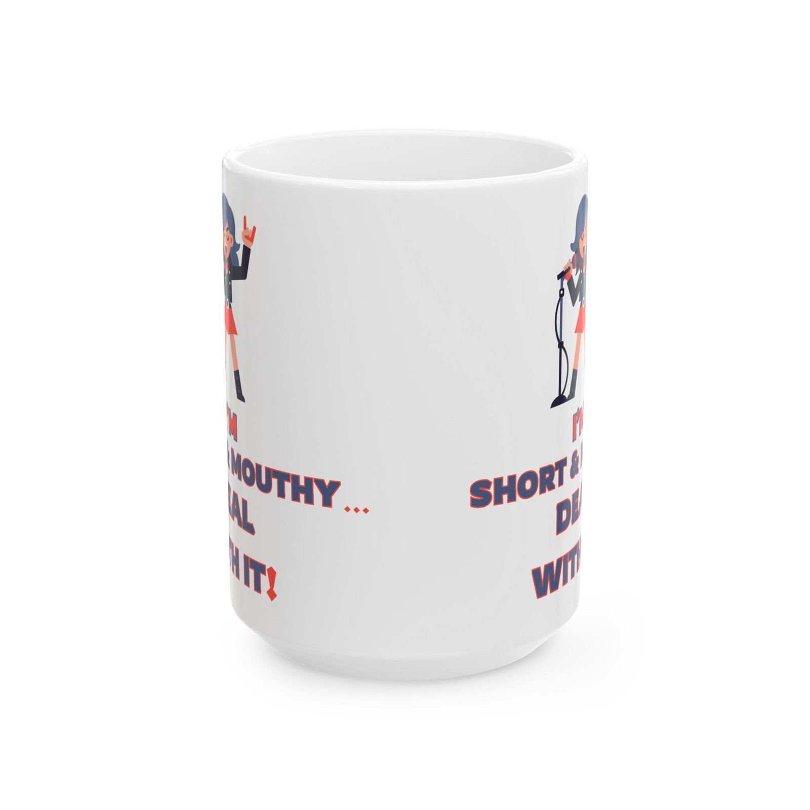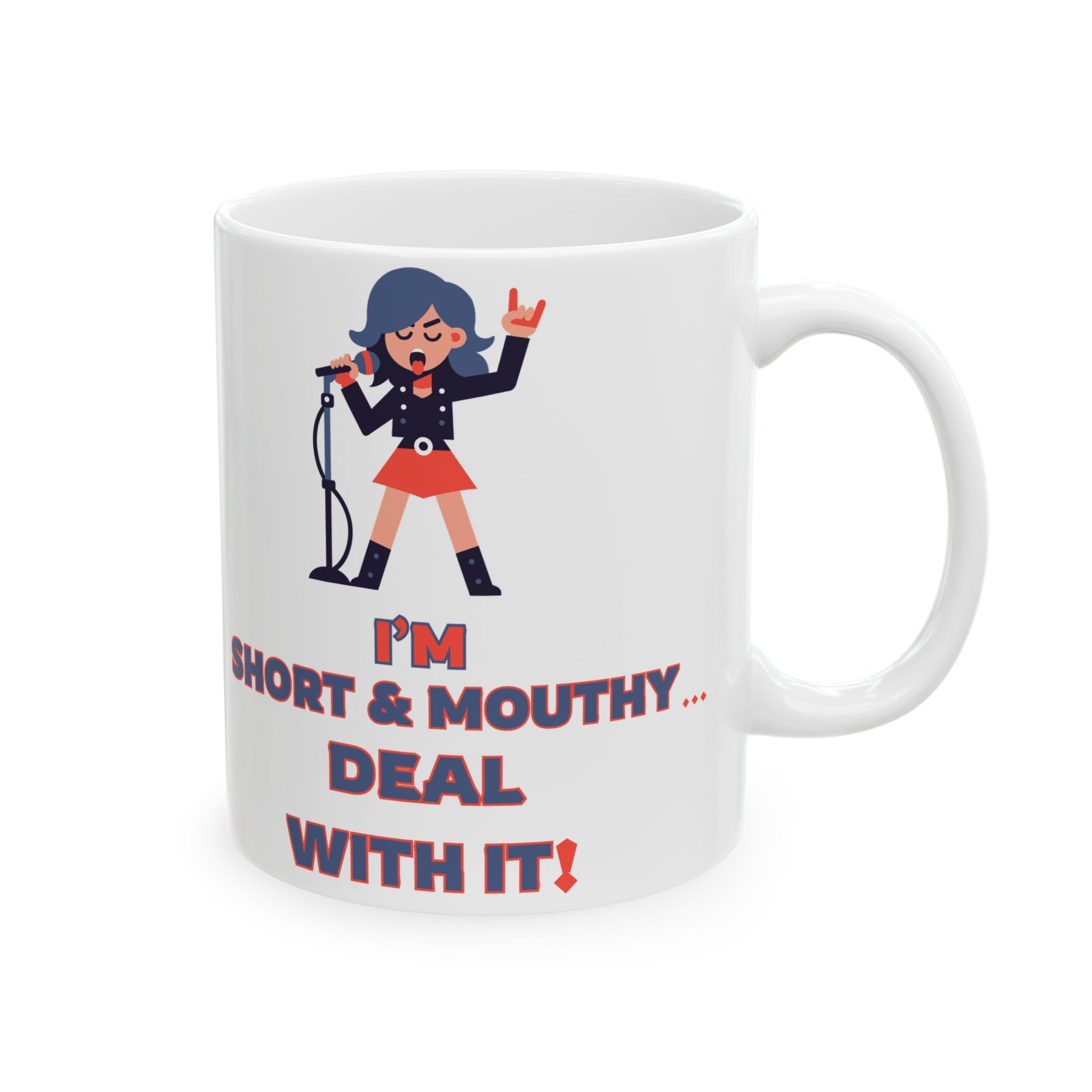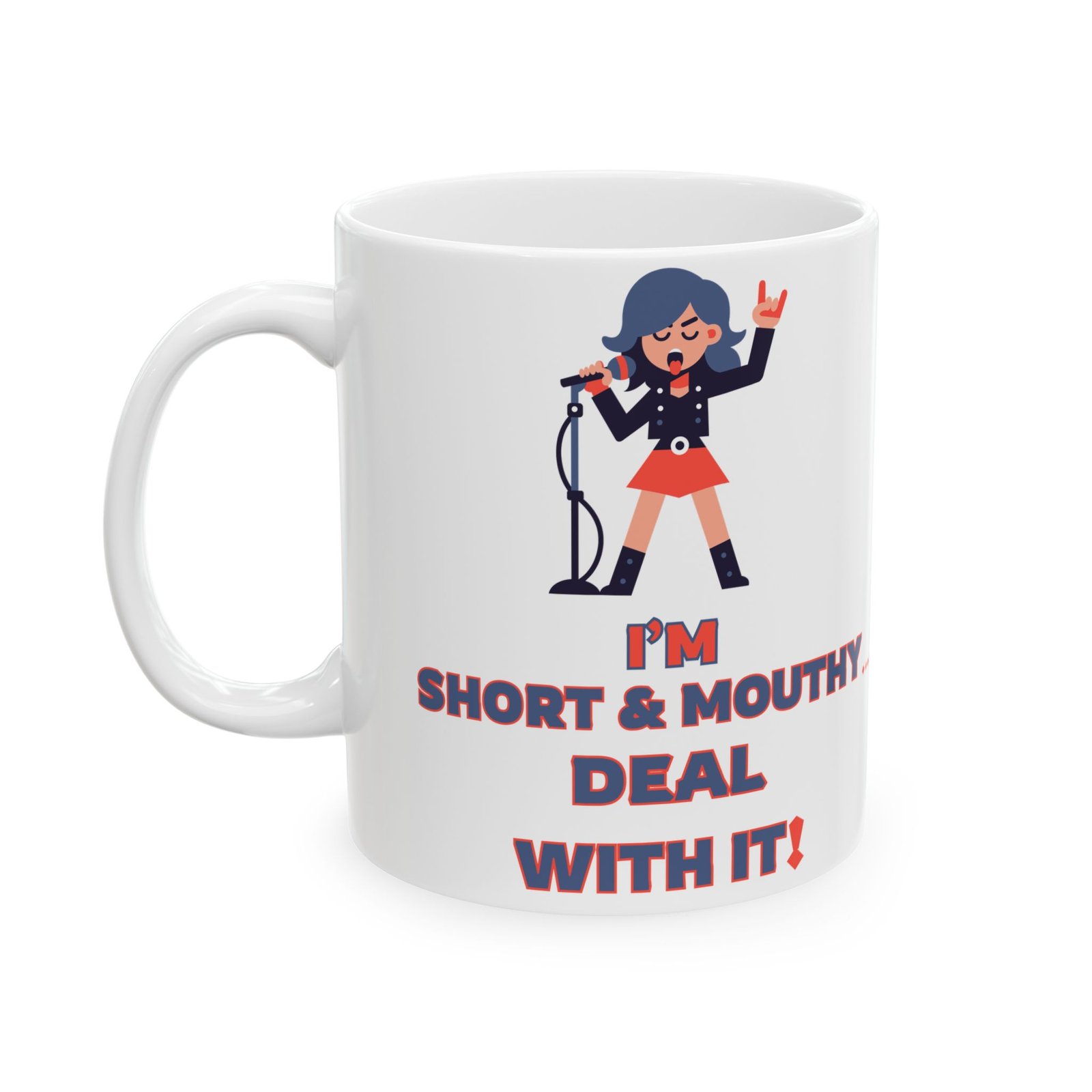 Embrace your sass with this fun and cheeky mug! Featuring the phrase “I’m Short & Mouthy… Deal with It!” alongside a playful image of a girl holding a microphone, this mug is ideal for anyone with a bold personality and a sharp sense of humor. Whether you’re grabbing your morning coffee or enjoying tea in the afternoon, this mug is available in both 11oz and 15oz sizes to suit your needs. Made from durable ceramic and printed with vibrant colors, it’s both microwave and dishwasher safe for easy use and care. Whether it’s for yourself or as a gift for a fellow firecracker, this mug is sure to bring a smile to anyone’s face!