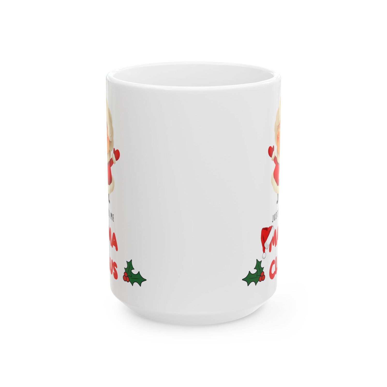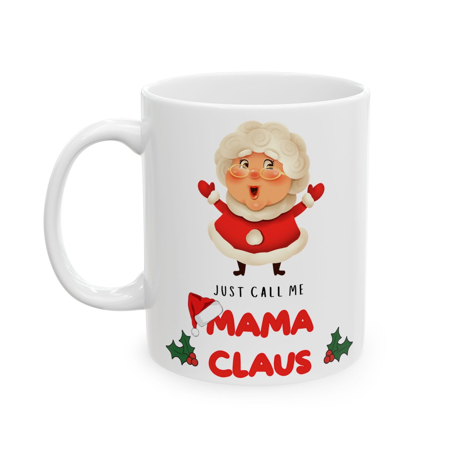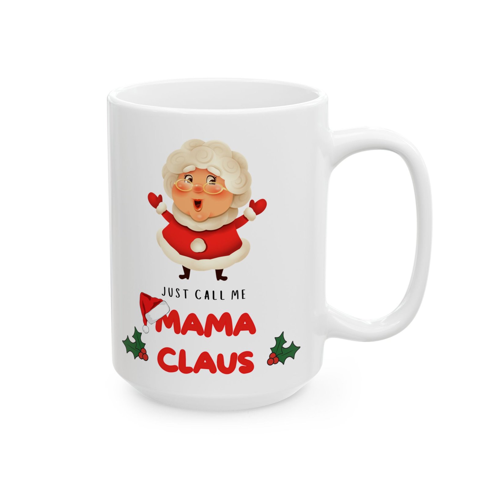 Add a touch of festive fun to your holiday mornings with the “Just Call Me Mama Claus” mug! for the holiday-loving mom or any Mrs. Claus at heart, this delightful mug celebrates the warmth and cheer of the season. Adorned with playful typography that proudly states “Just Call Me Mama Claus,” it’s the ideal companion for sipping hot cocoa, coffee, or your favorite holiday drink. Available in both 11oz and 15oz sizes, this mug is crafted from ceramic that’s both microwave and dishwasher safe.