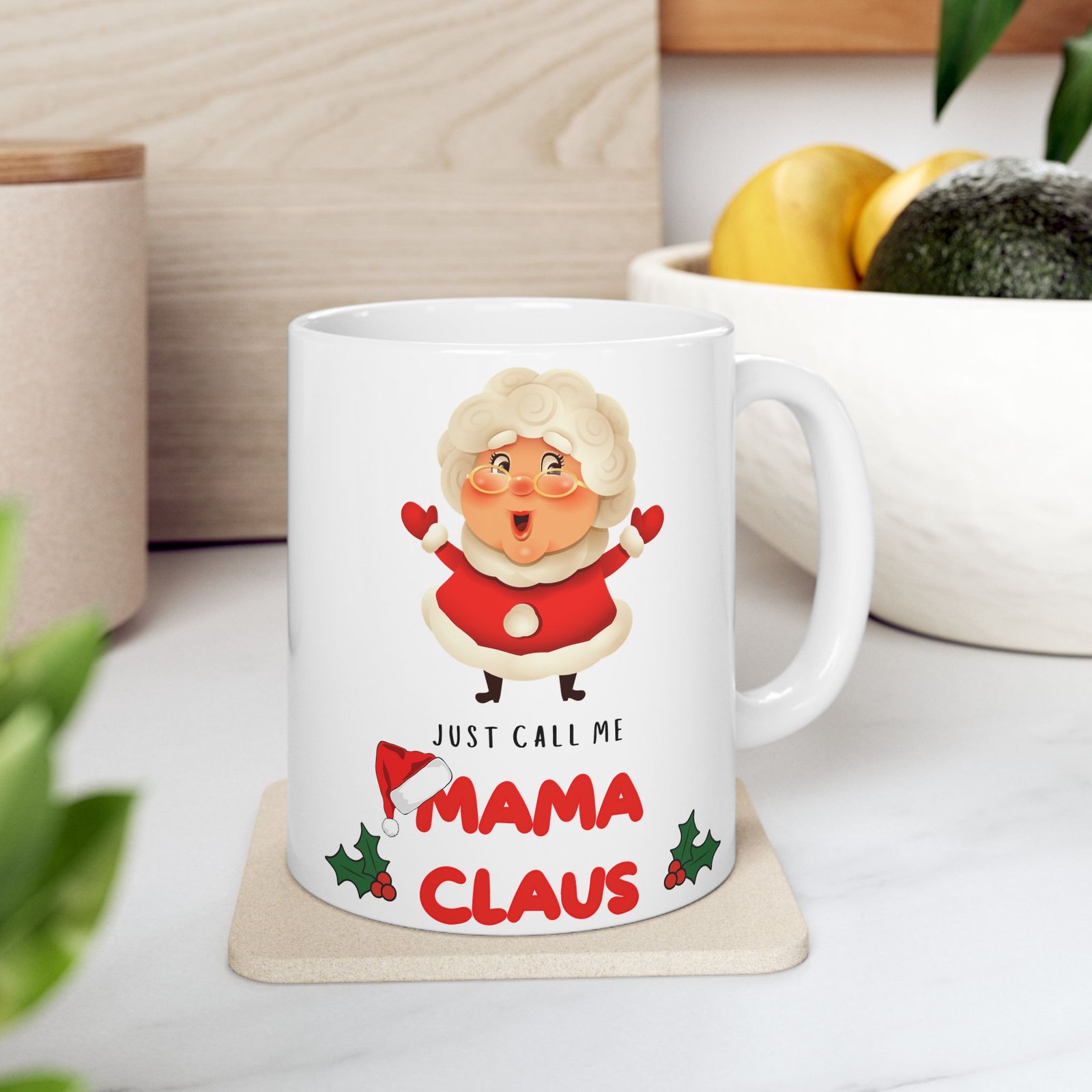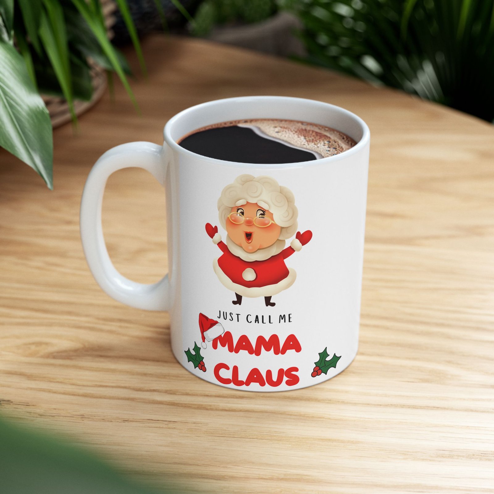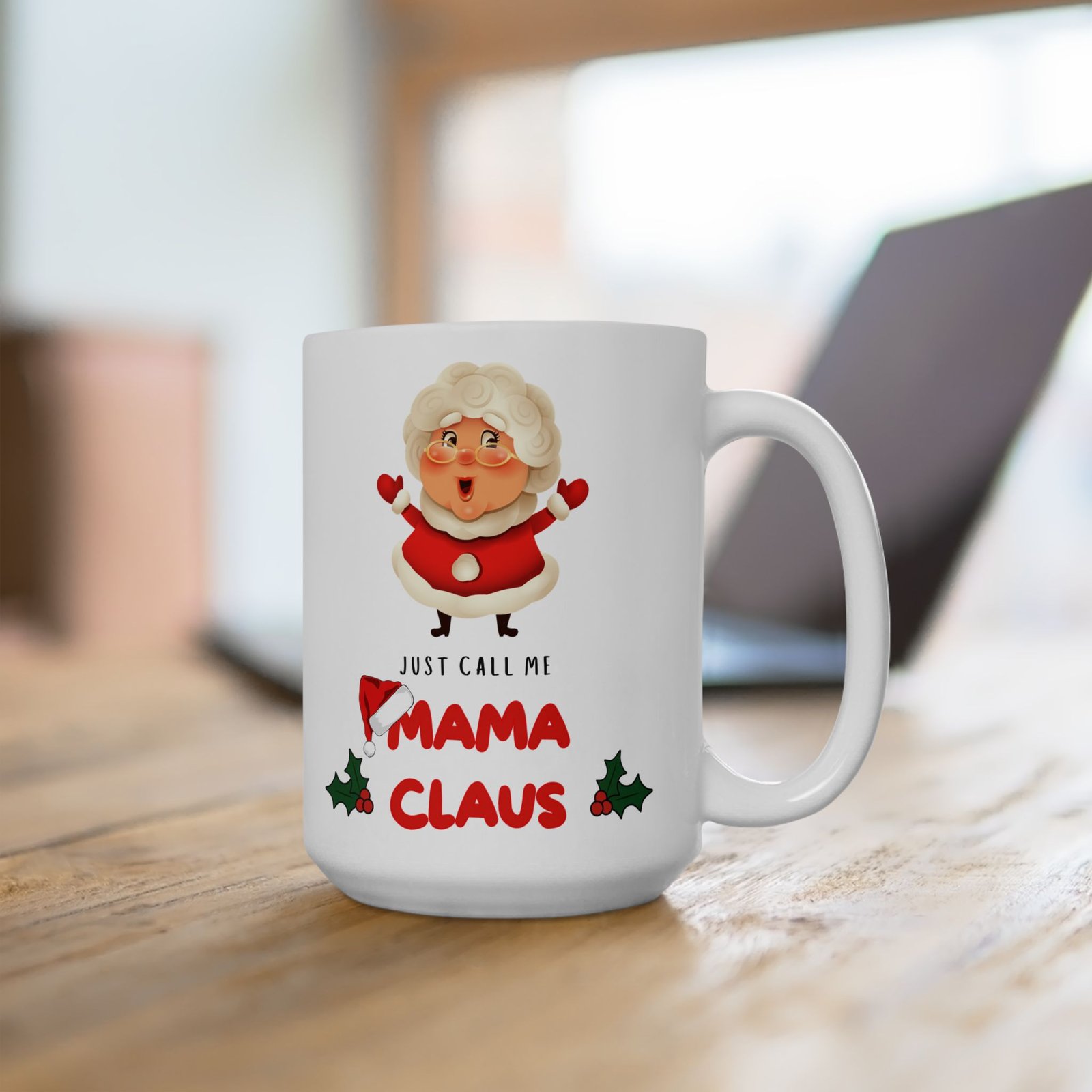 Add a touch of festive fun to your holiday mornings with the “Just Call Me Mama Claus” mug! for the holiday-loving mom or any Mrs. Claus at heart, this delightful mug celebrates the warmth and cheer of the season. Adorned with playful typography that proudly states “Just Call Me Mama Claus,” it’s the ideal companion for sipping hot cocoa, coffee, or your favorite holiday drink. Available in both 11oz and 15oz sizes, this mug is crafted from ceramic that’s both microwave and dishwasher safe.