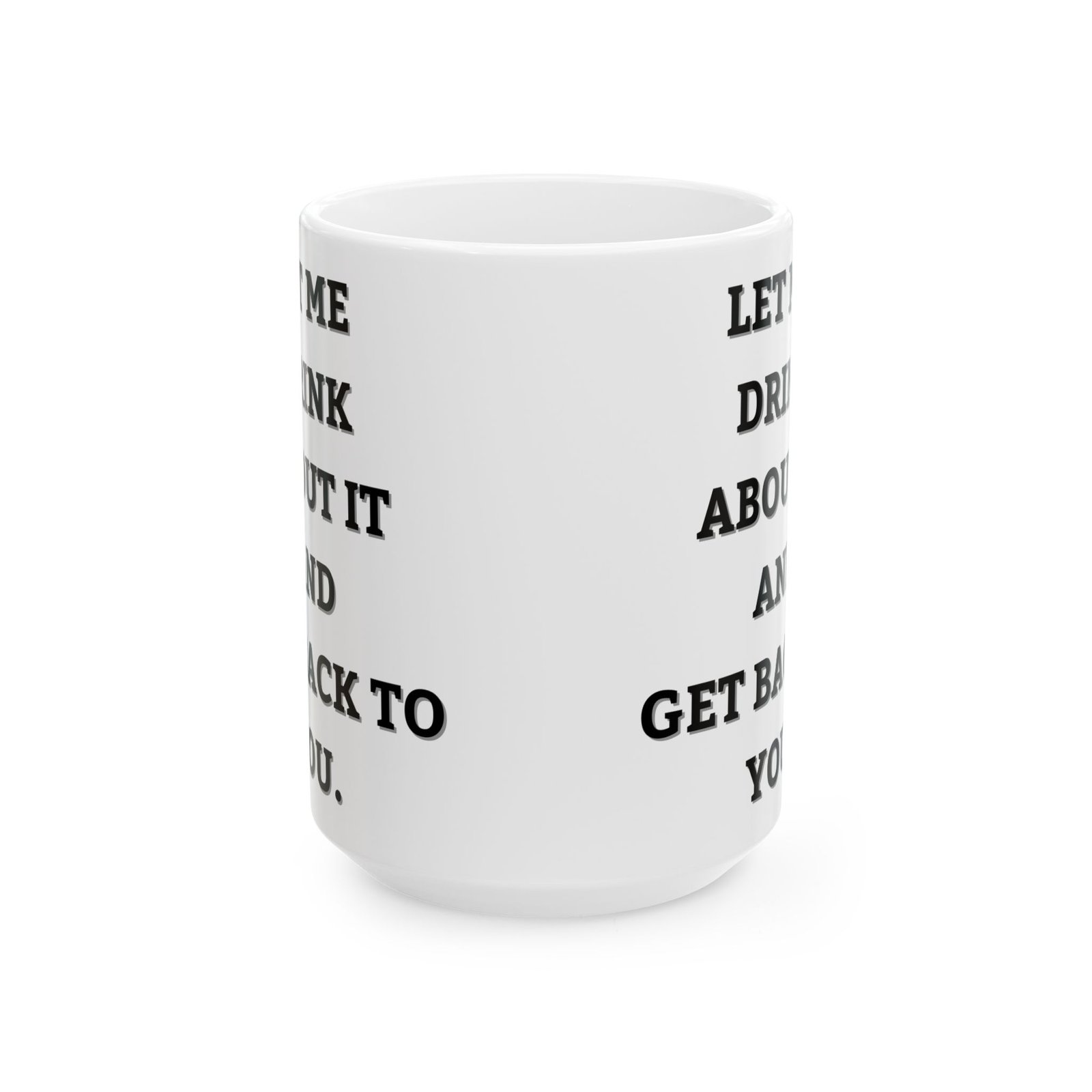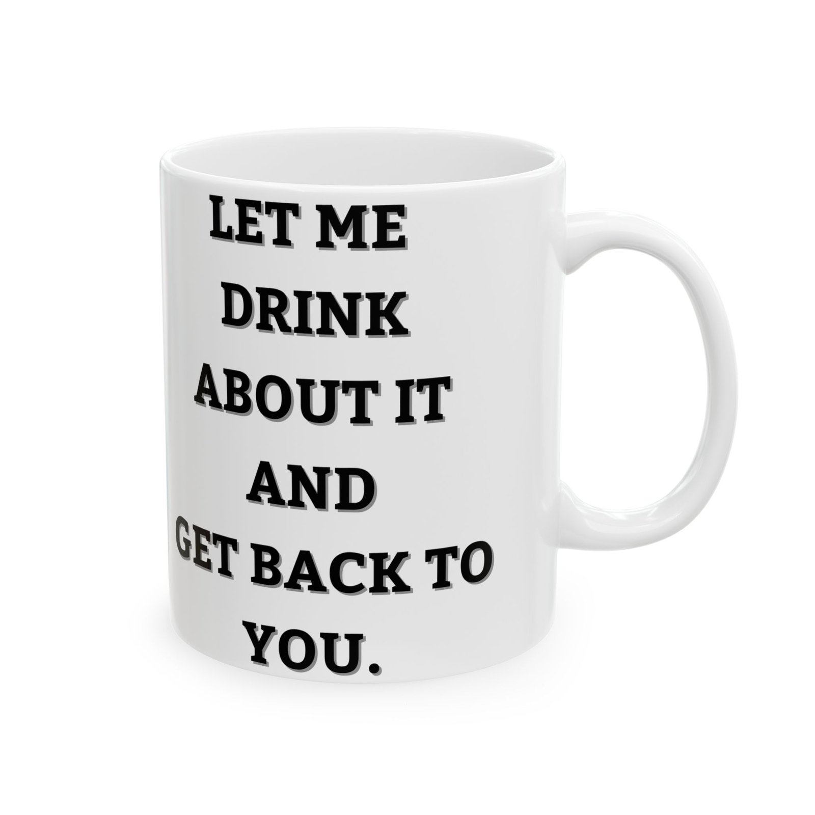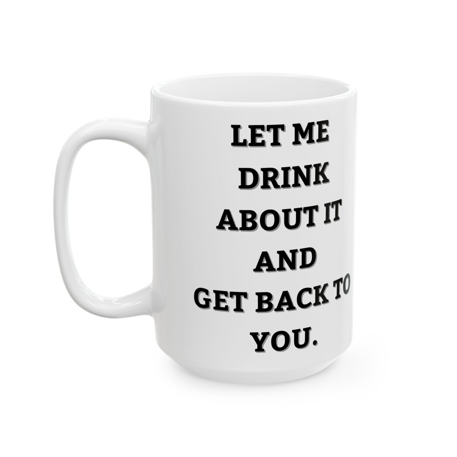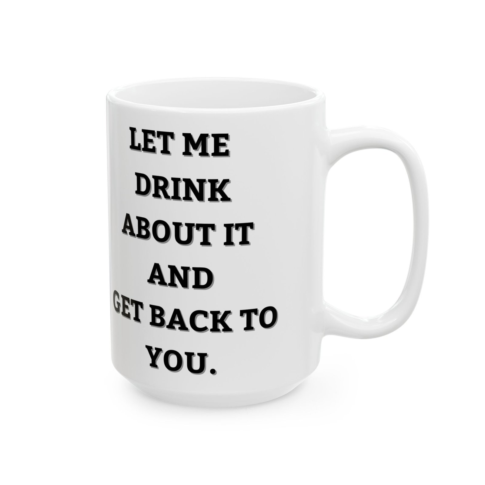Some decisions need a little extra… consideration. This “Let Me Drink About It and I’ll Get Back to You” mug brings humor to your morning coffee or evening tea ritual. for anyone who believes that sometimes the best answers come after a good drink (or two)! Available in both 11oz and 15oz sizes, this mug is the companion for all those “I’ll think about it” moments.
