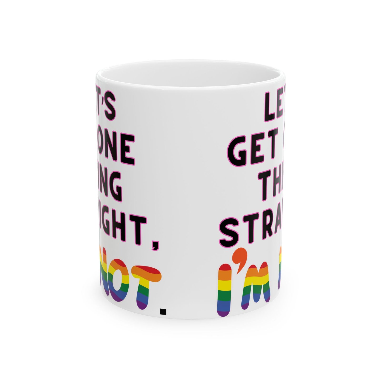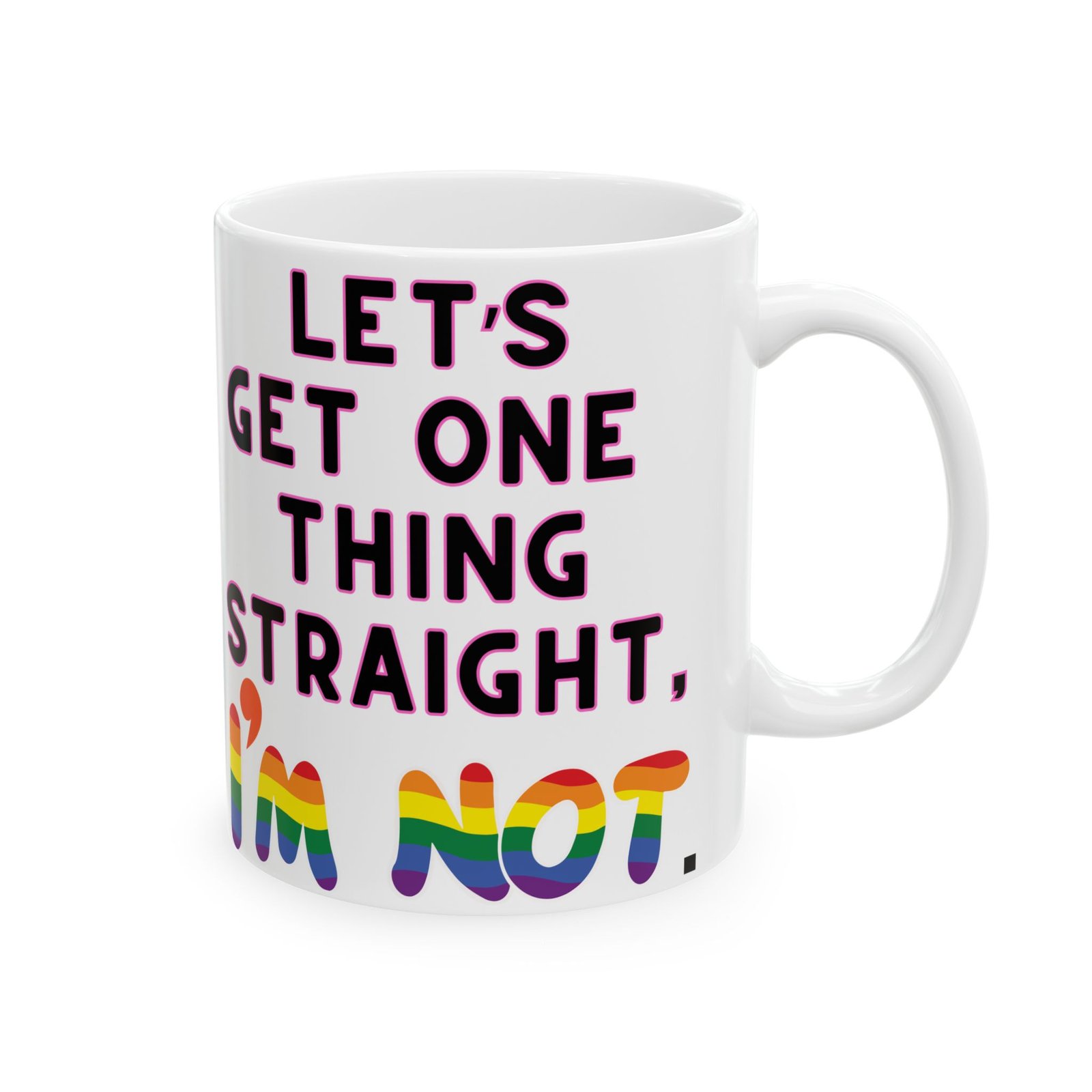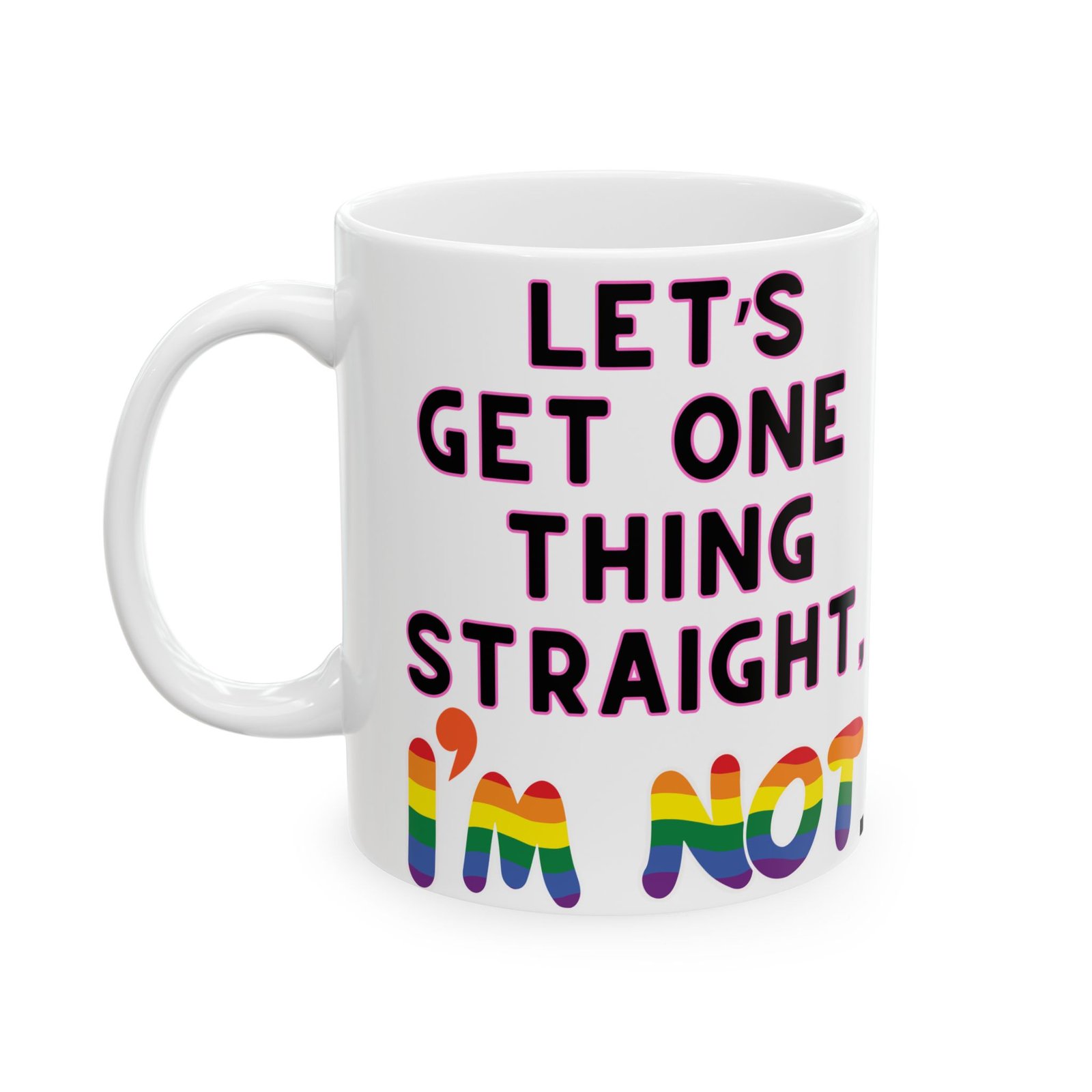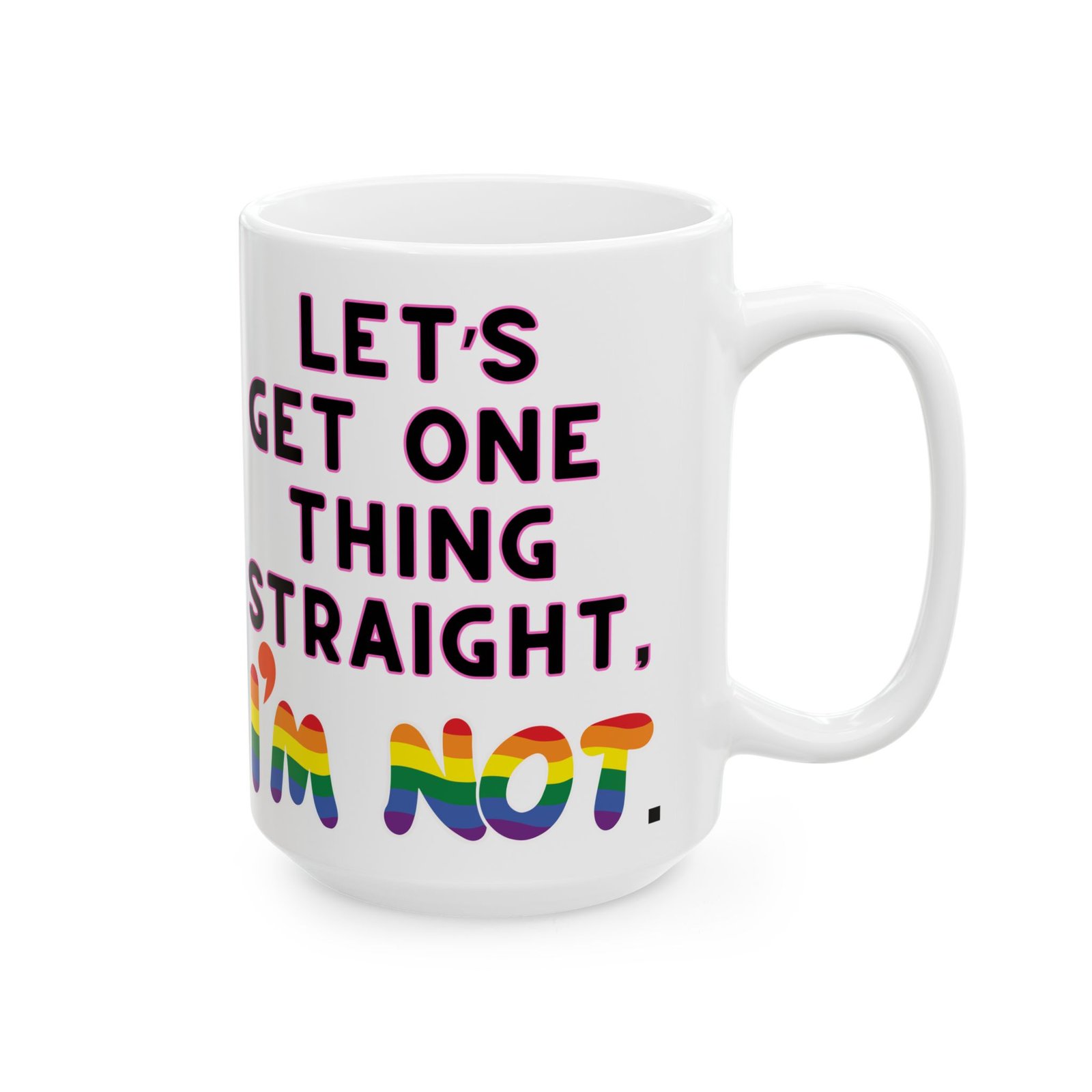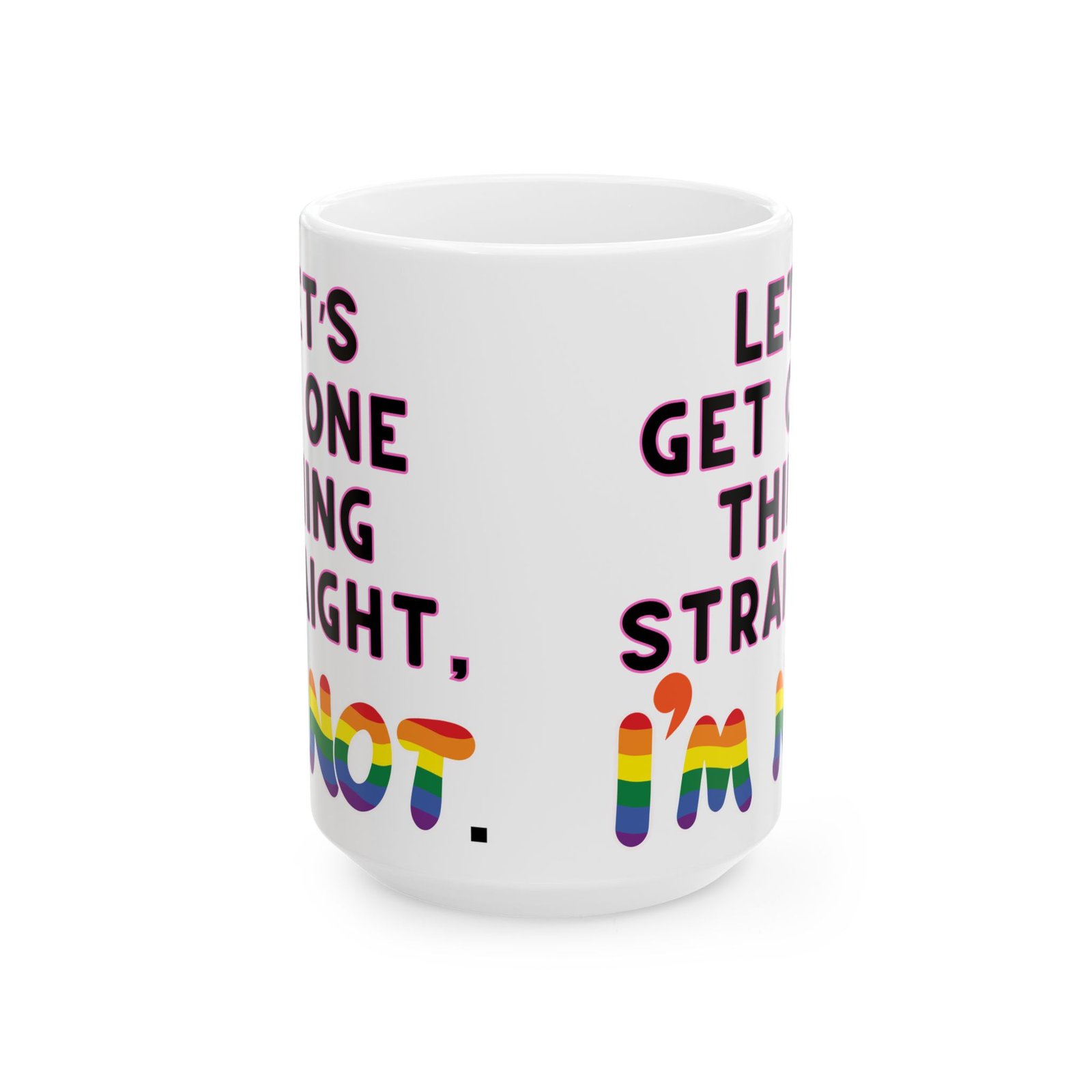 Let’s Get One Thing Straight, I’m Not Mug – Bright Rainbow Pride Colors – 11oz & 15oz – Perfect for LGBTQ+ Pride!