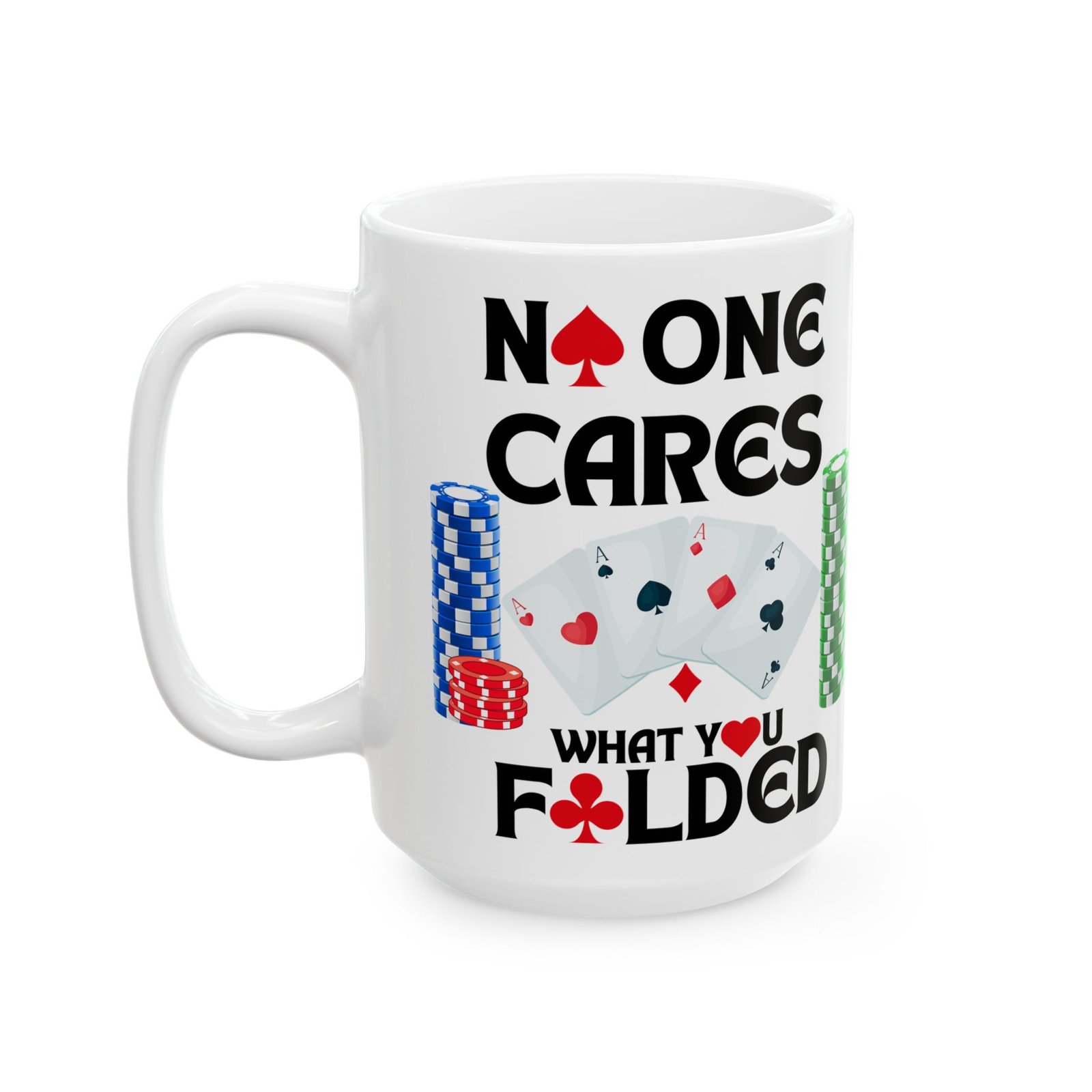 This poker-themed mug, available in both 11oz and 15oz sizes, is perfect for those who live for the game.