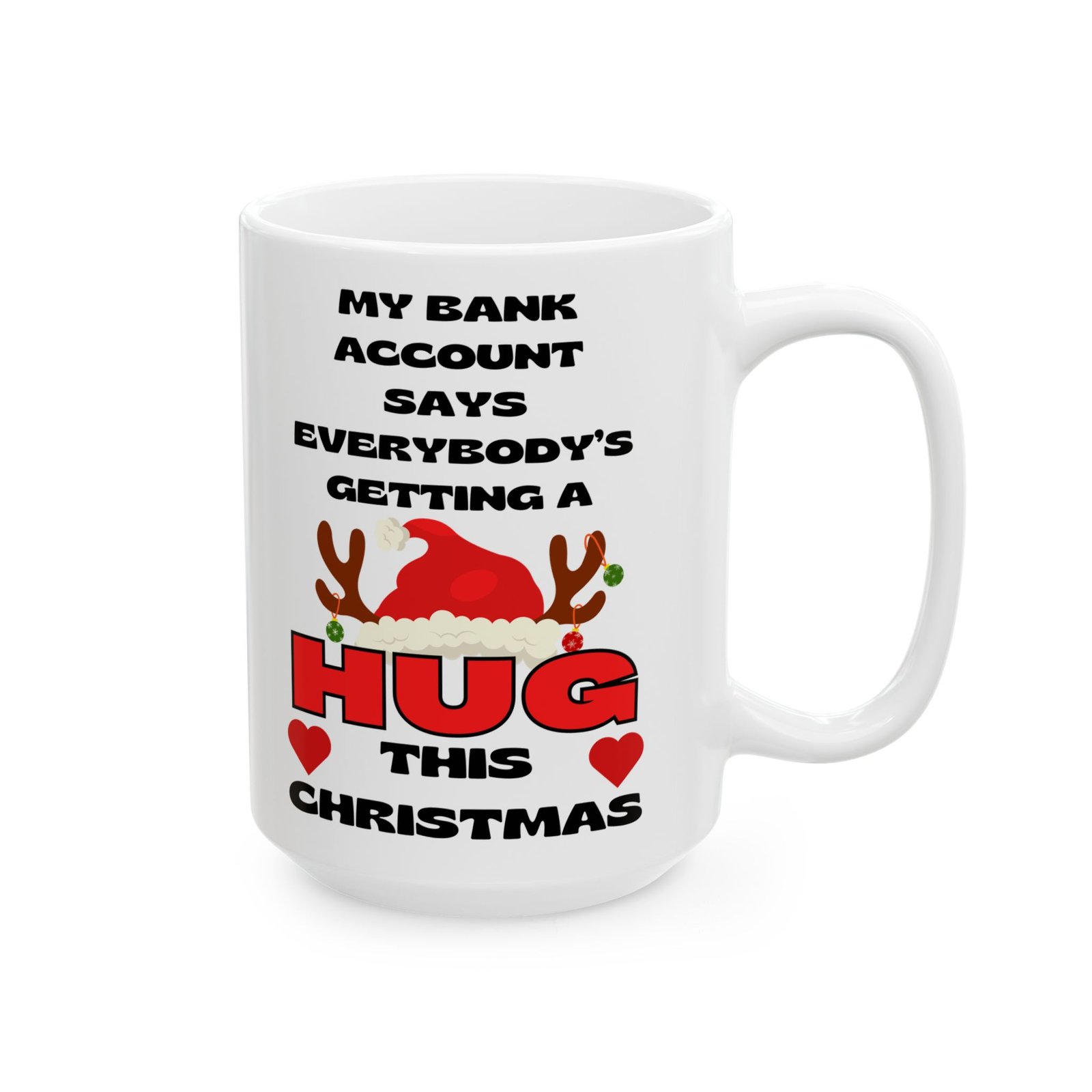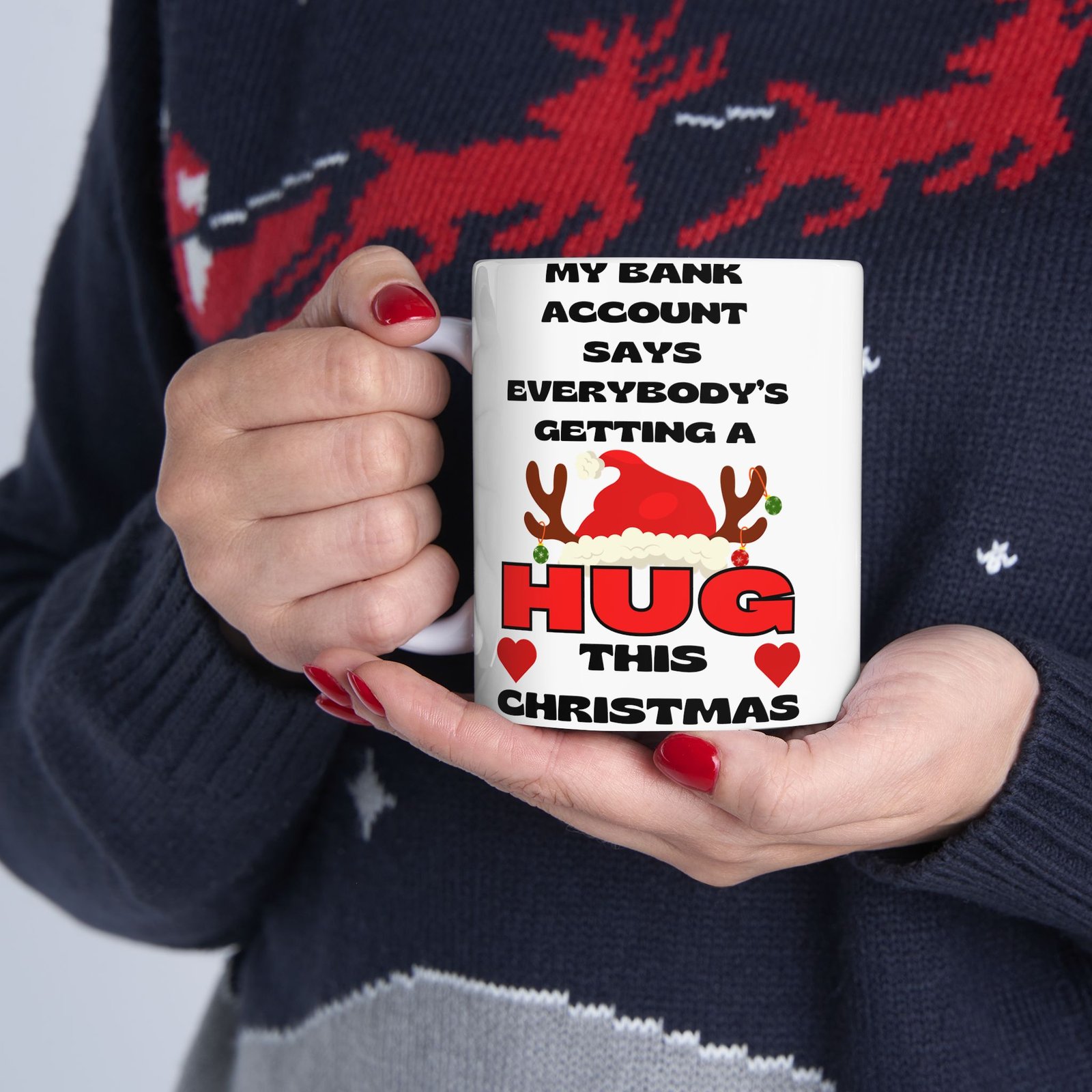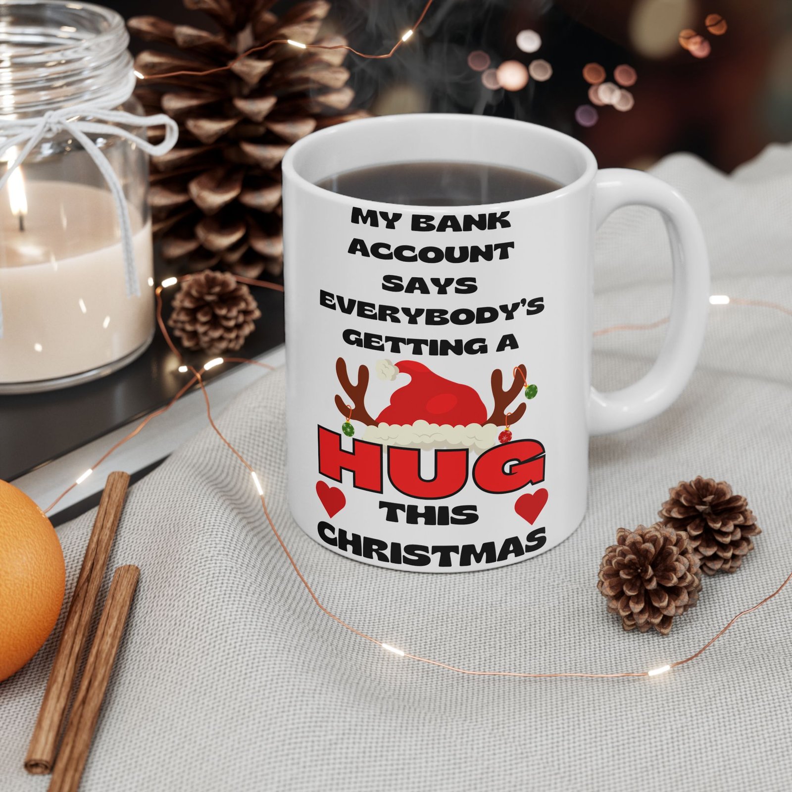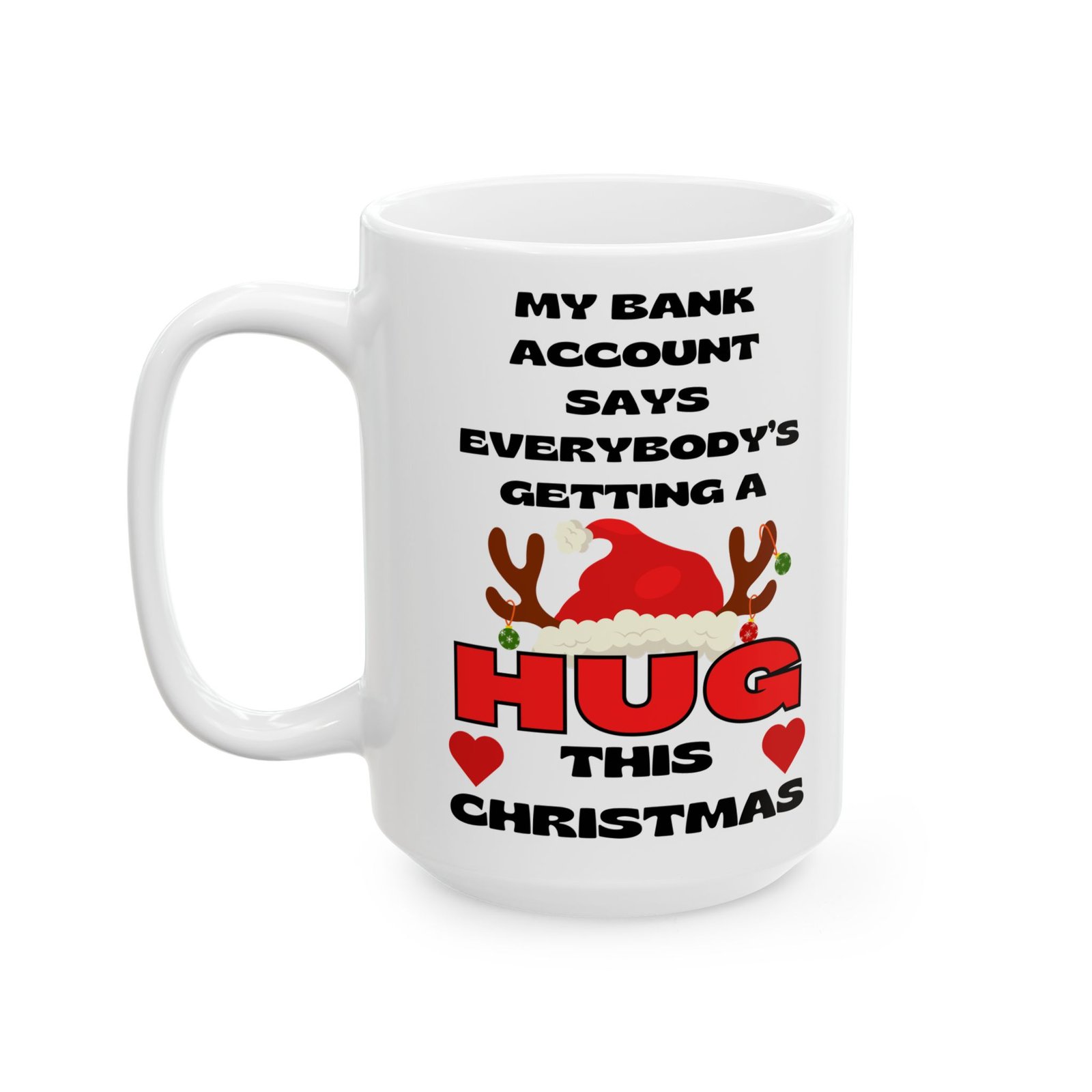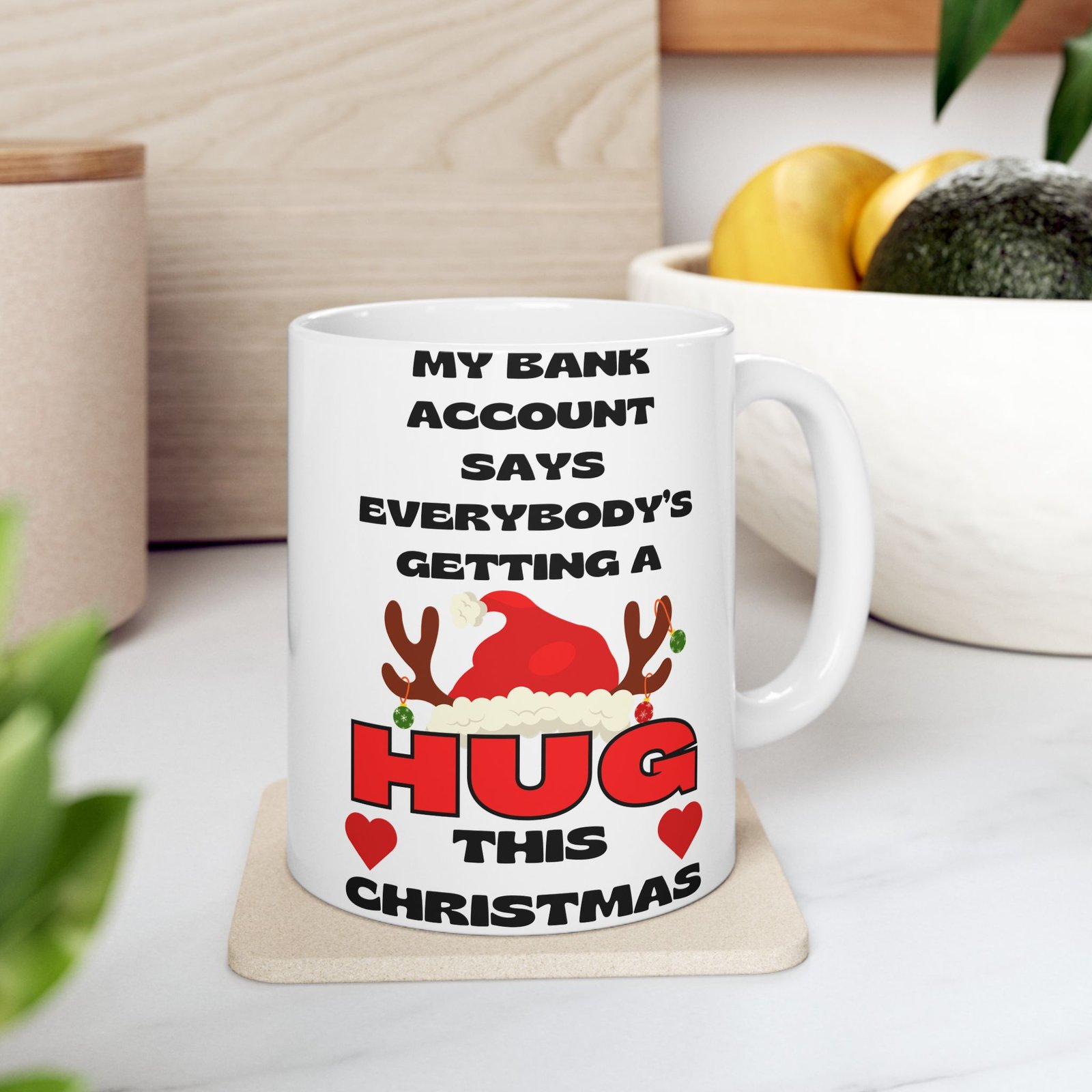 My Bank Account Says Everybody’s Getting a Hug This Christmas Mug – Funny, Sarcastic, Festive Gift Ceramic Mug, (11oz, 15oz)