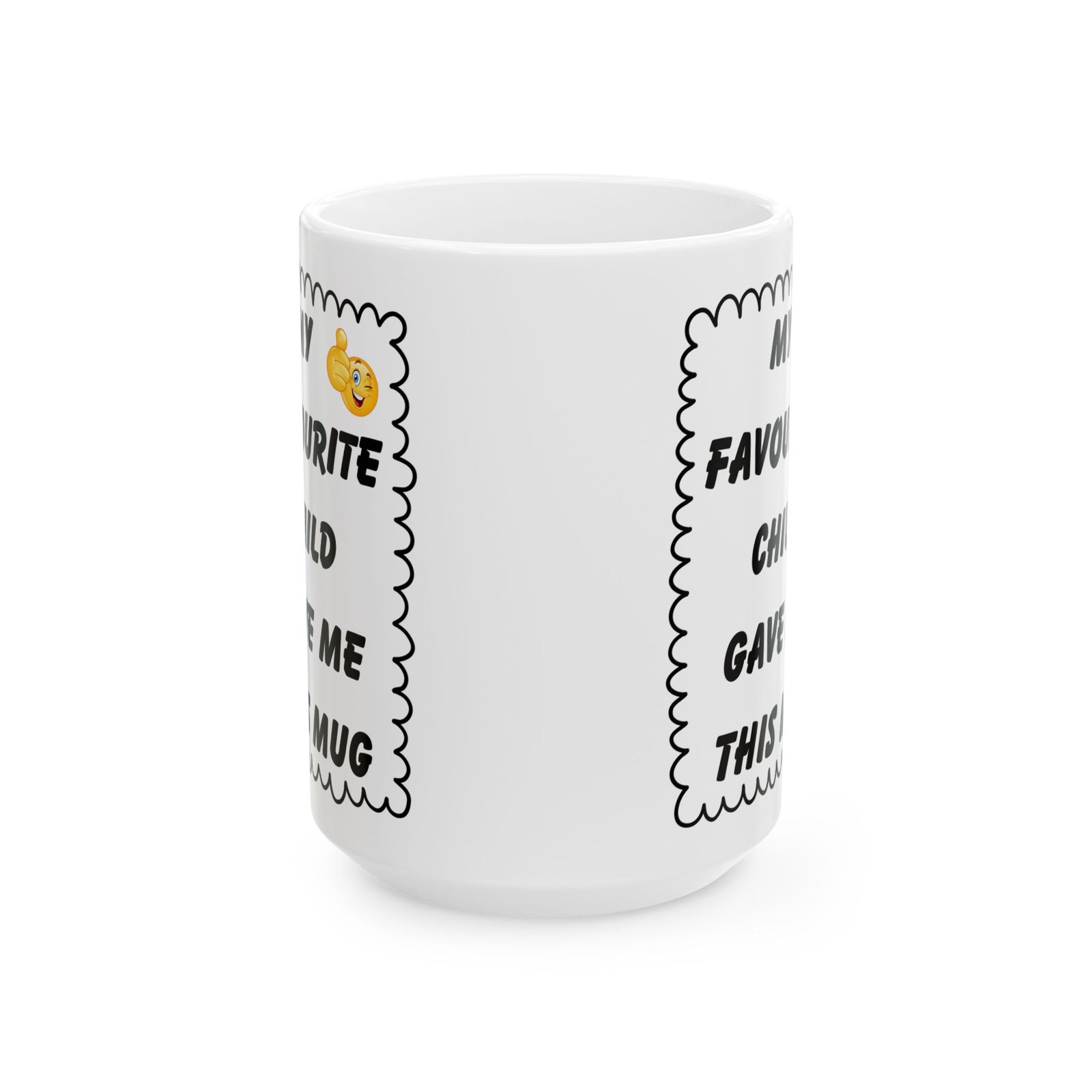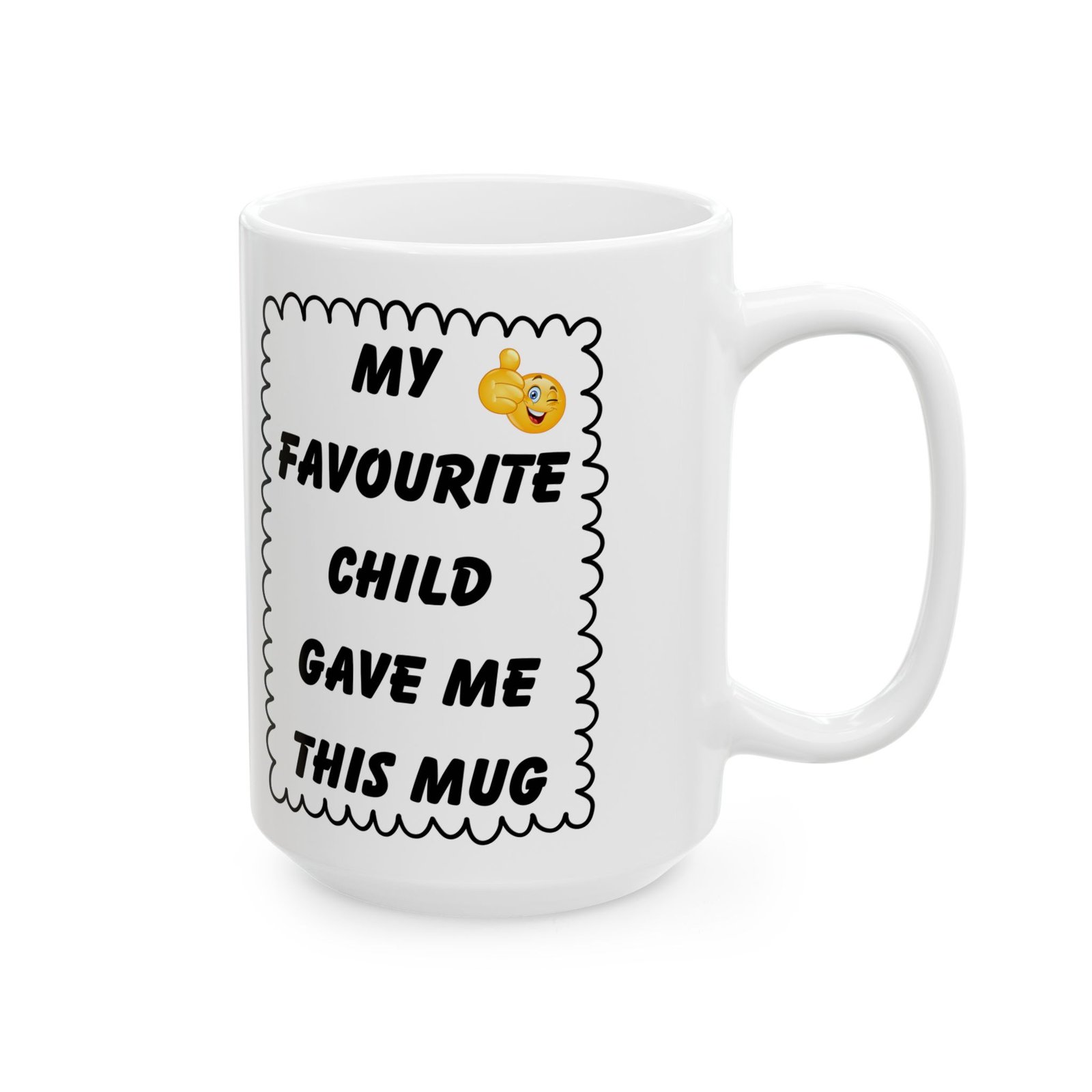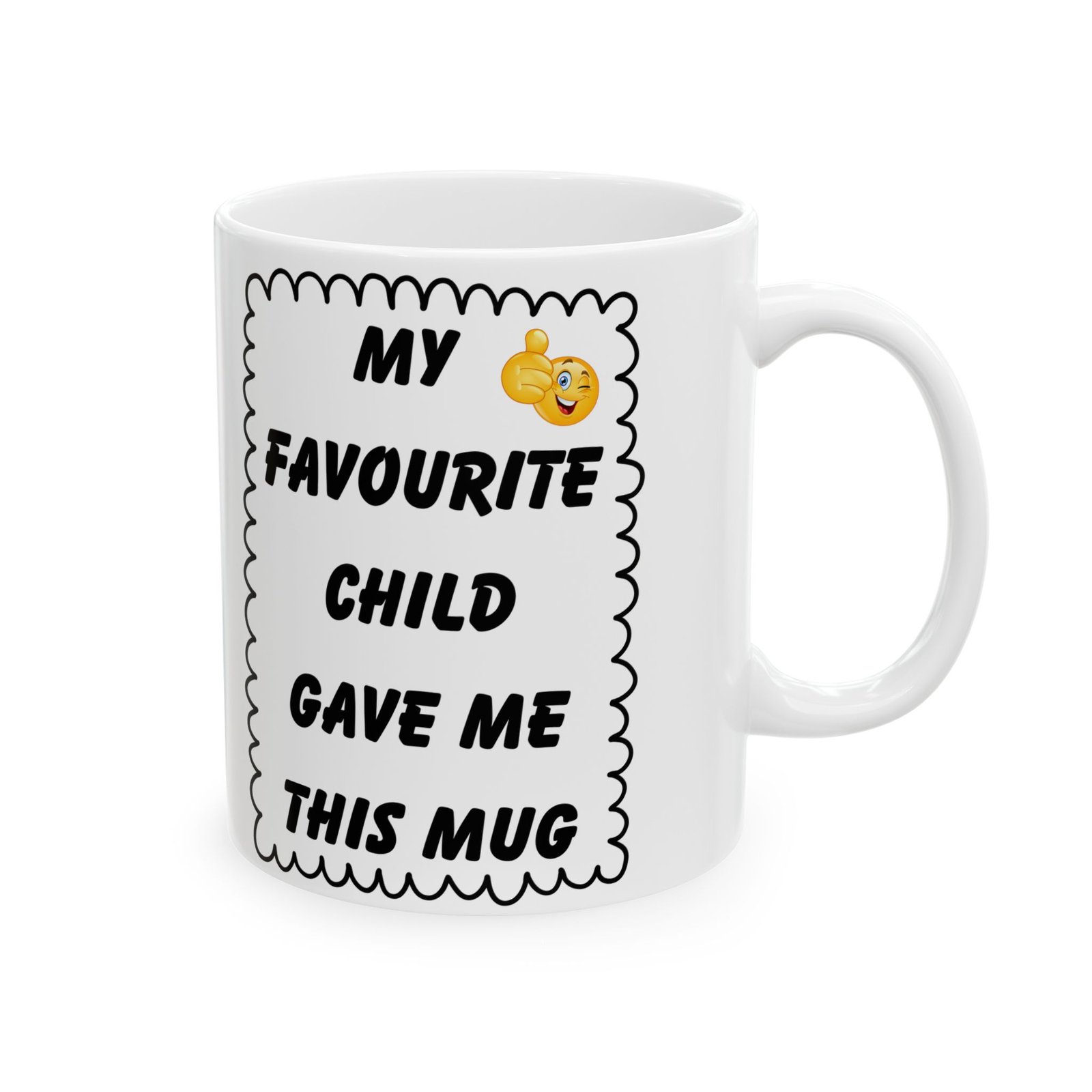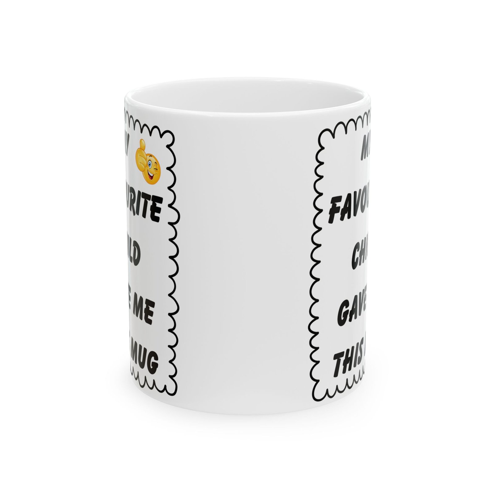 My Favourite Child Gave Me This Mug – Funny Cheeky Winking Emoji Coffee Cup, 11 & 15 oz Gift for Parents, Mom, or Dad