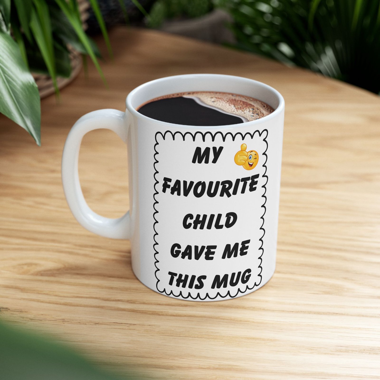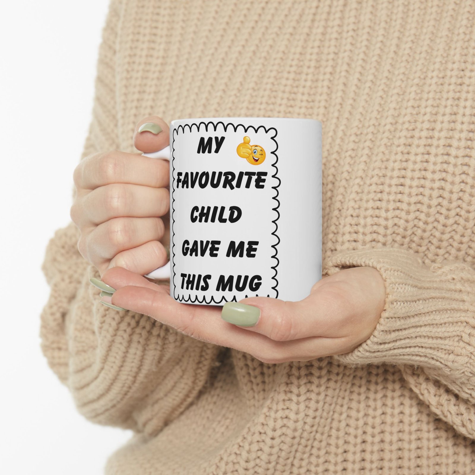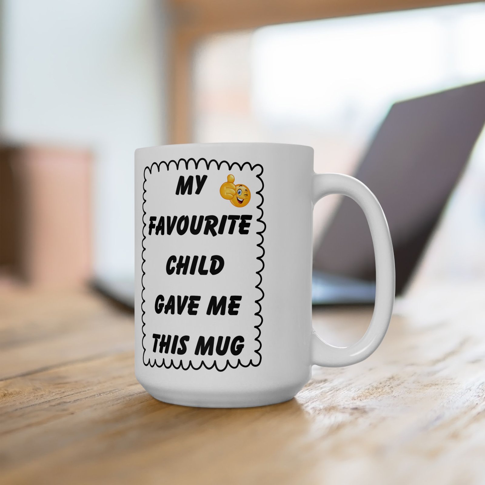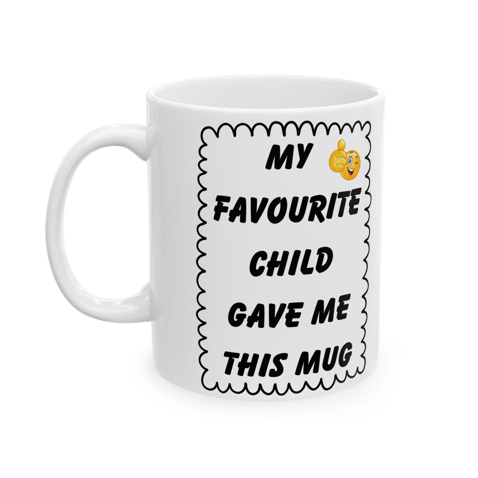 My Favourite Child Gave Me This Mug – Funny Cheeky Winking Emoji Coffee Cup, 11 & 15 oz Gift for Parents, Mom, or Dad
