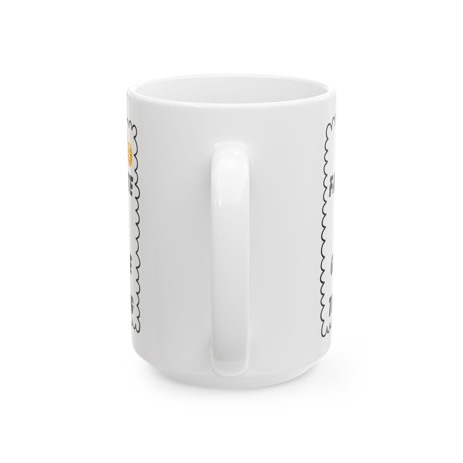 Bring a little cheeky humor into your parent’s day with the “My Favourite Child Gave Me This Mug”! Featuring a fun and bold design with a winking emoji, this mug is sure to get a laugh from moms, dads, or any parent with a great sense of humor. Available in both 11 oz and 15 oz sizes, this ceramic mug is for their morning coffee, tea, or any beverage of choice. It’s dishwasher and microwave safe, making it as practical as it is funny. Whether it’s for Mother’s Day, Father’s Day, or a just-because surprise, this mug will make any parent proud to have their “favorite” child. Get ready to win some brownie points!