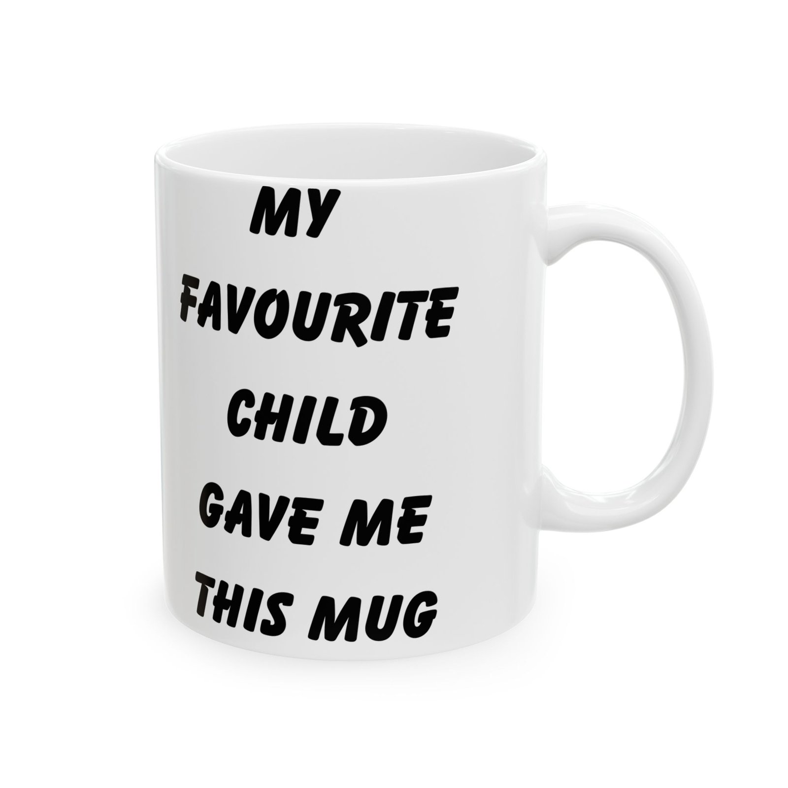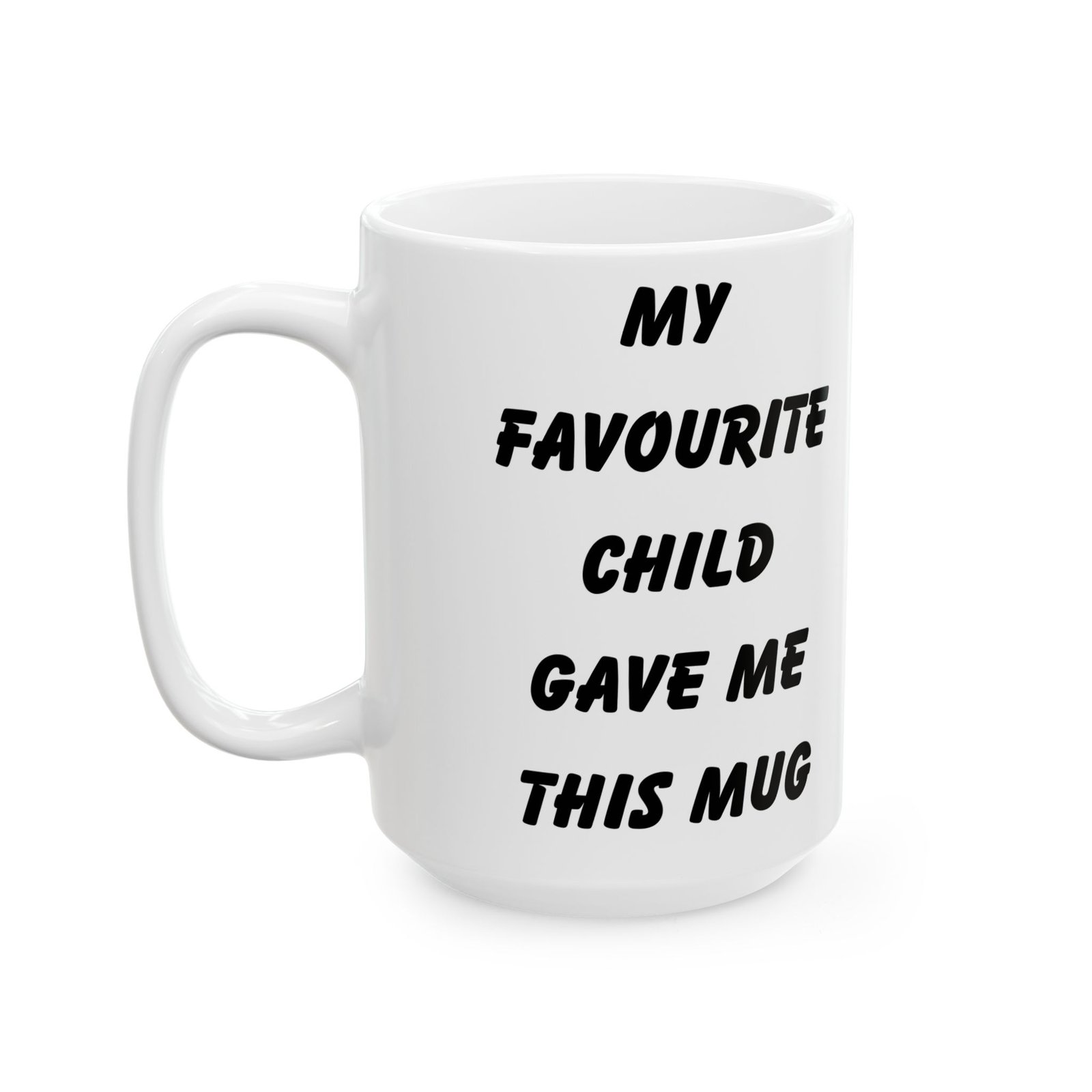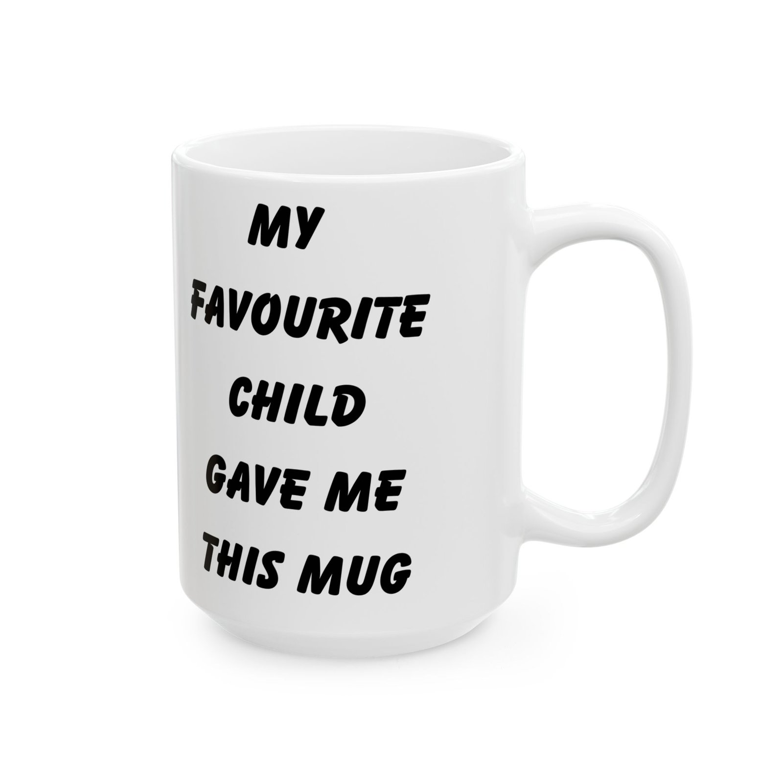 Celebrate being the favorite with the “My Favourite Child Gave Me This Mug”—the ultimate funny gift for parents! Whether you’re gifting it for a birthday, Mother’s Day, or Father’s Day, this mug brings humor and joy to any coffee or tea routine. Available in 11 oz and 15 oz sizes, it’s made from durable ceramic and designed making it the perfect blend of humor and style. It’s microwave and dishwasher safe, so it’s both practical and easy to clean. Surprise your mom or dad with this fun mug and watch them enjoy a laugh every time they use it!