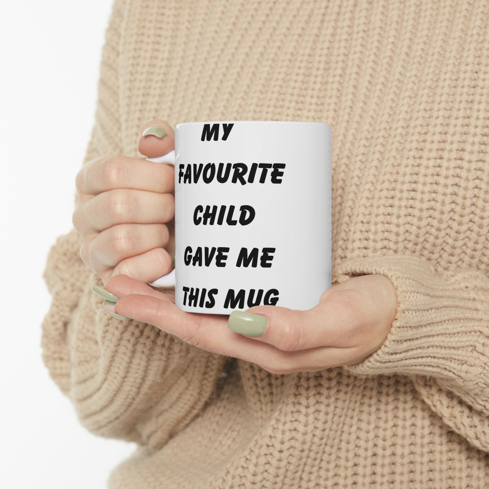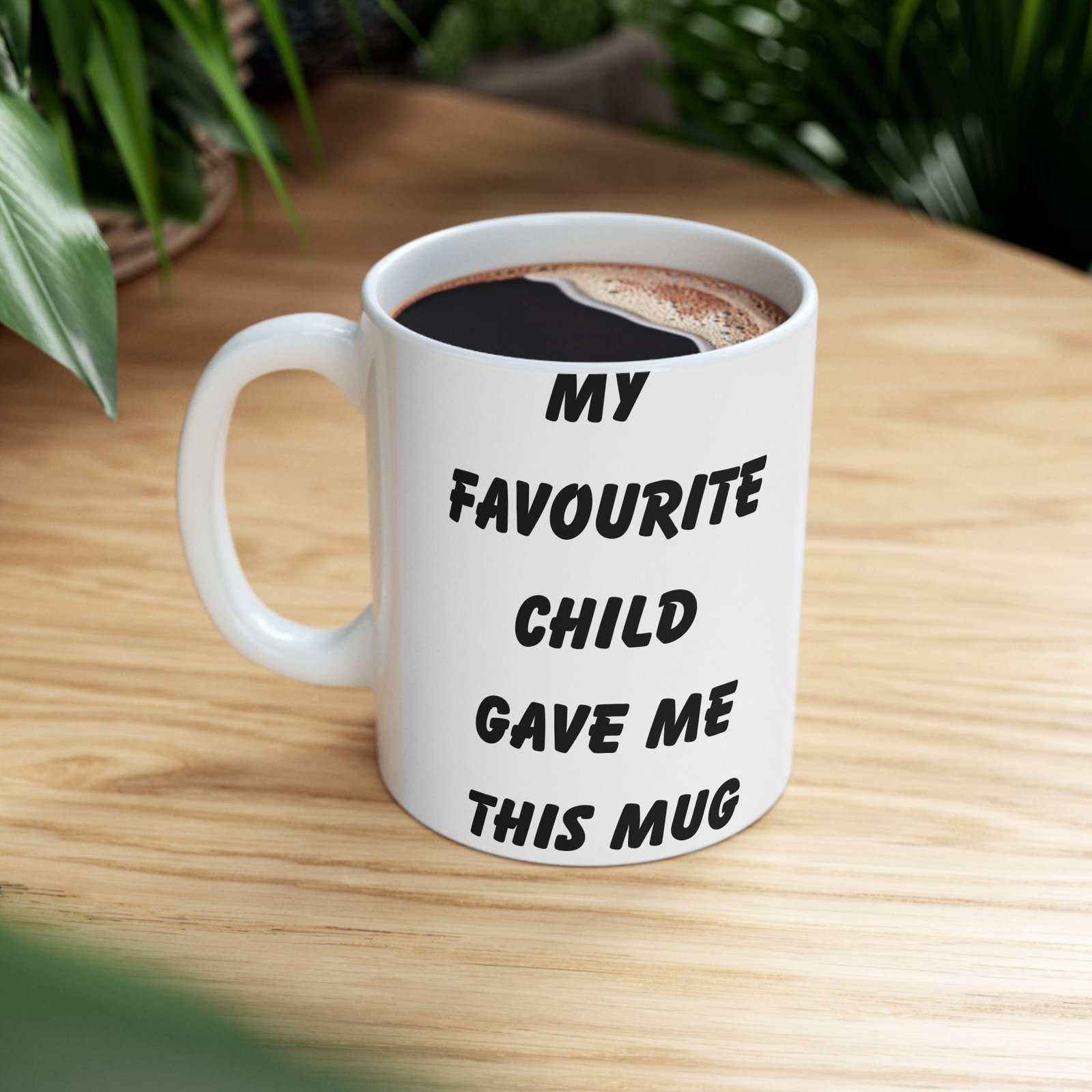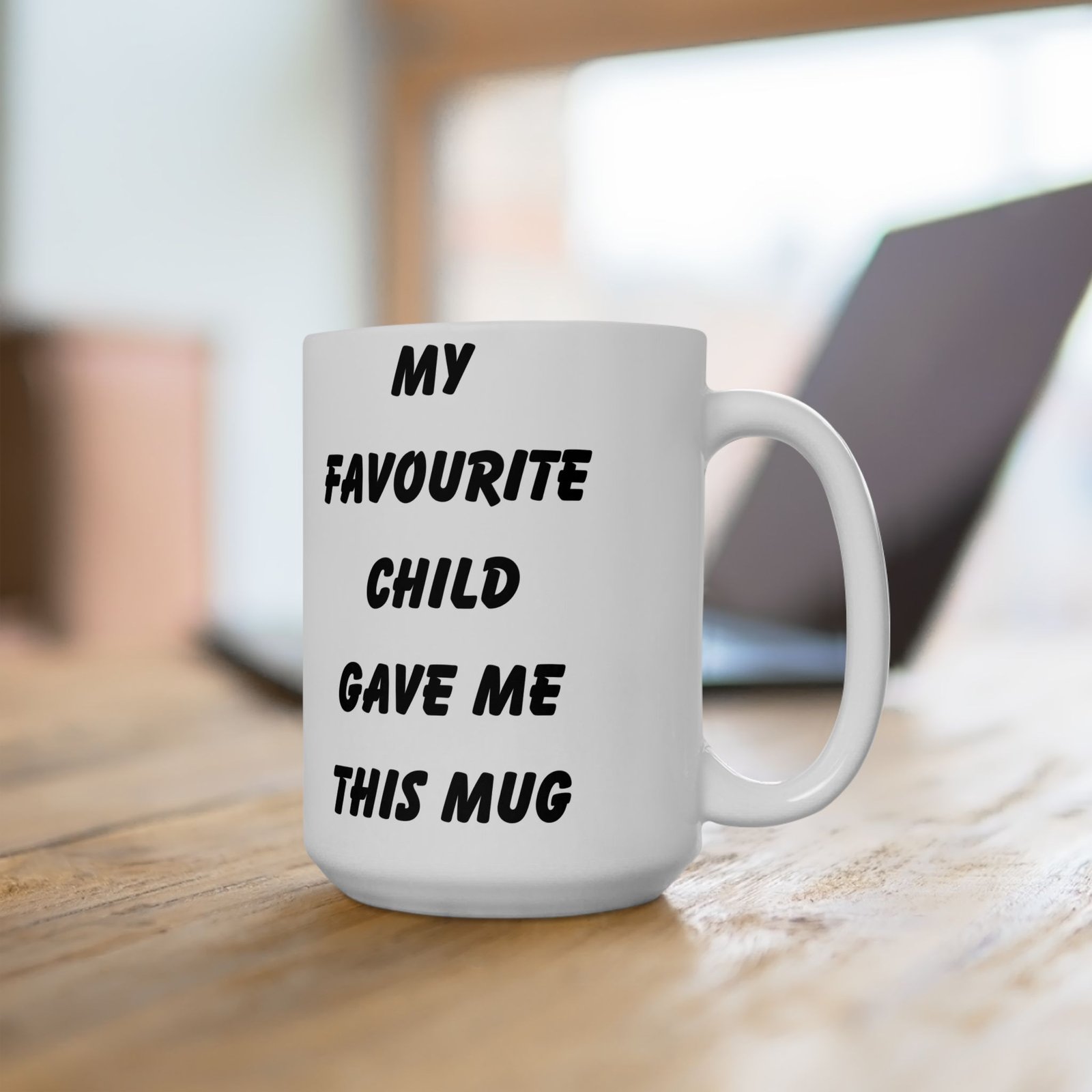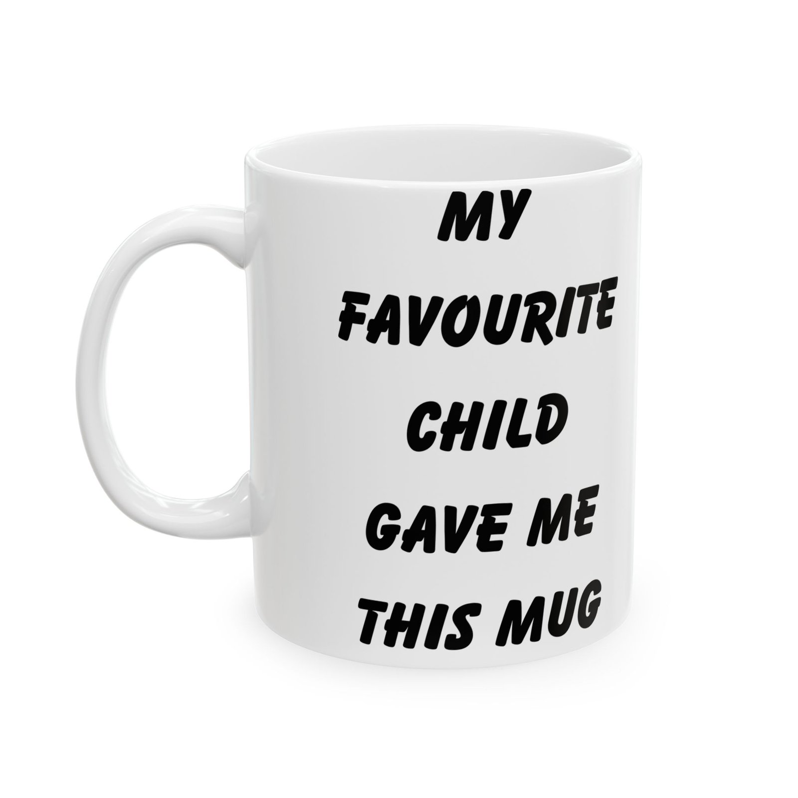 Celebrate being the favorite with the “My Favourite Child Gave Me This Mug”—the ultimate funny gift for parents! Whether you’re gifting it for a birthday, Mother’s Day, or Father’s Day, this mug brings humor and joy to any coffee or tea routine. Available in 11 oz and 15 oz sizes, it’s made from durable ceramic and designed making it the perfect blend of humor and style. It’s microwave and dishwasher safe, so it’s both practical and easy to clean. Surprise your mom or dad with this fun mug and watch them enjoy a laugh every time they use it!