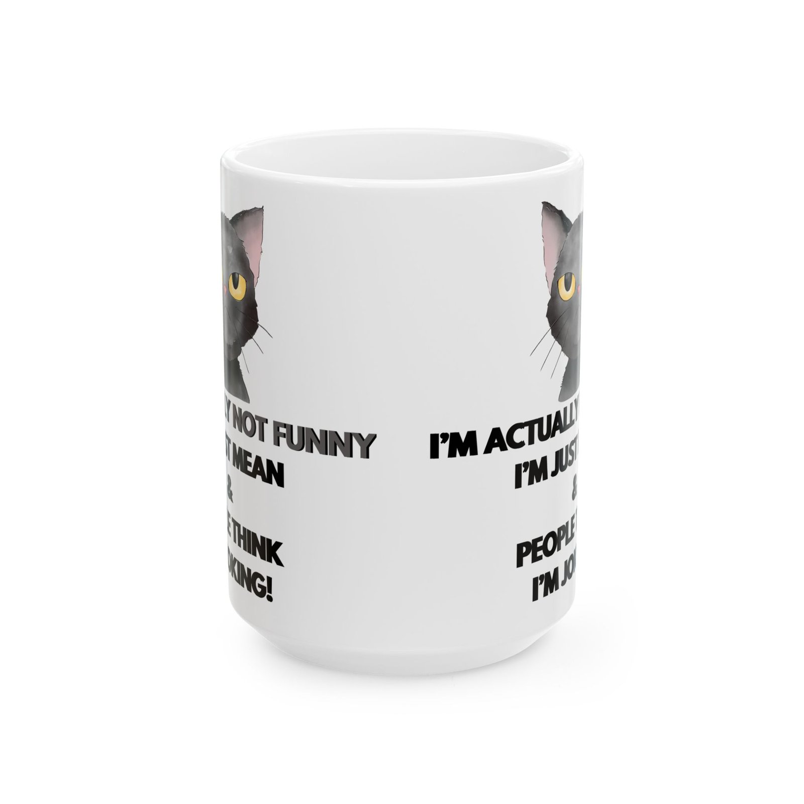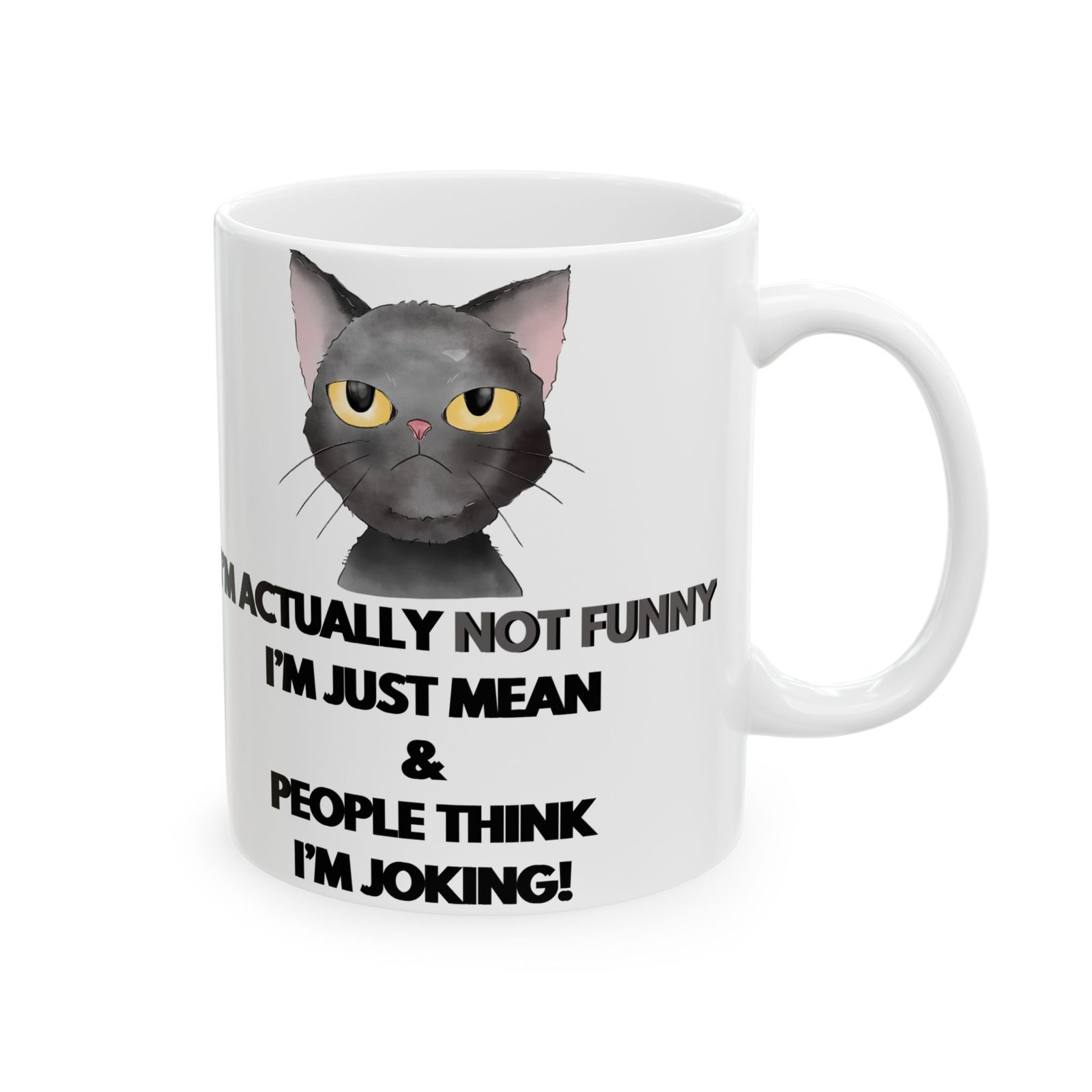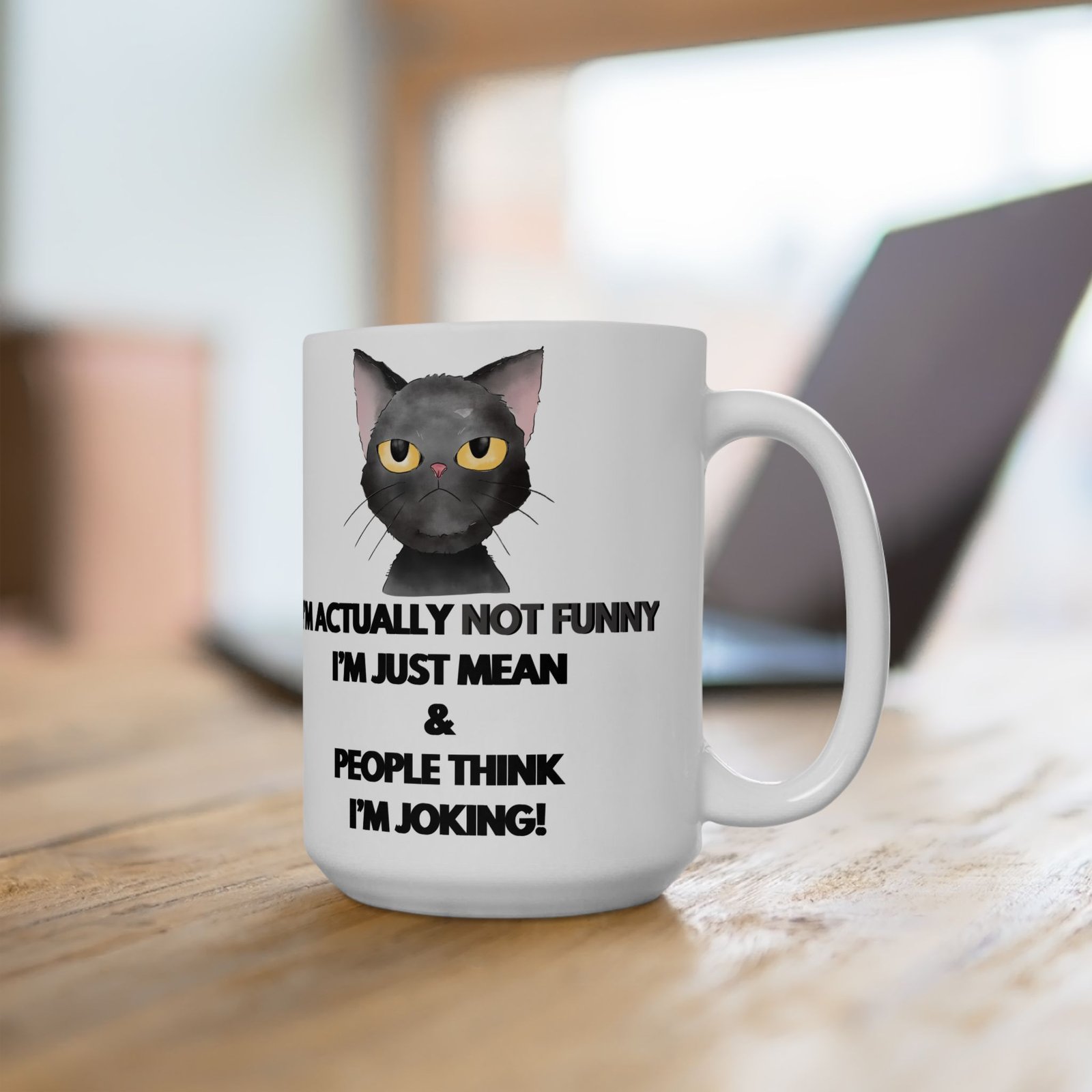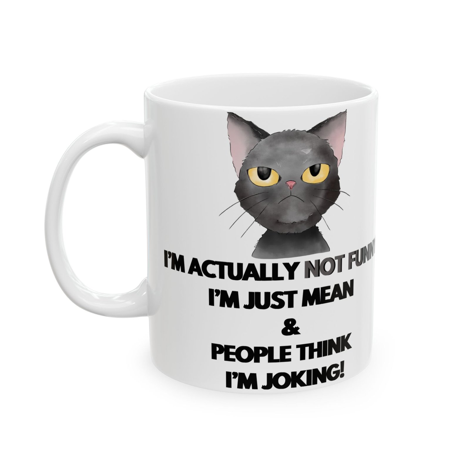 Sometimes, you’re not trying to be funny—you’re just being real, and this Not Funny, Just Mean Coffee Mug says it all! Featuring the bold phrase, “I’m Actually Not Funny, I’m Just Mean & People Think I’m Joking!” alongside a grumpy cat face, this mug is perfect for anyone who’s unapologetically sarcastic. Available in 11oz and 15oz, this mug is microwave and dishwasher safe, making it easy to use and clean. It’s the perfect gift for those with a biting sense of humor, whether at the office, home, or anywhere else. Great for sarcastic coworker gifts, funny office mugs, or just showing off your true self.