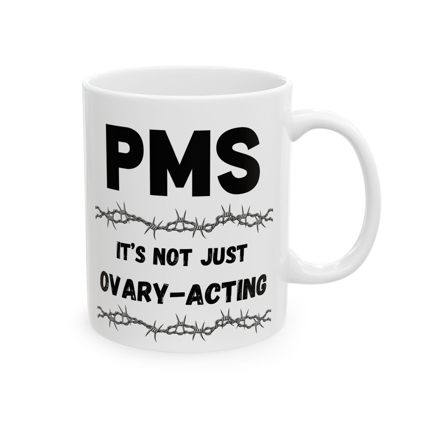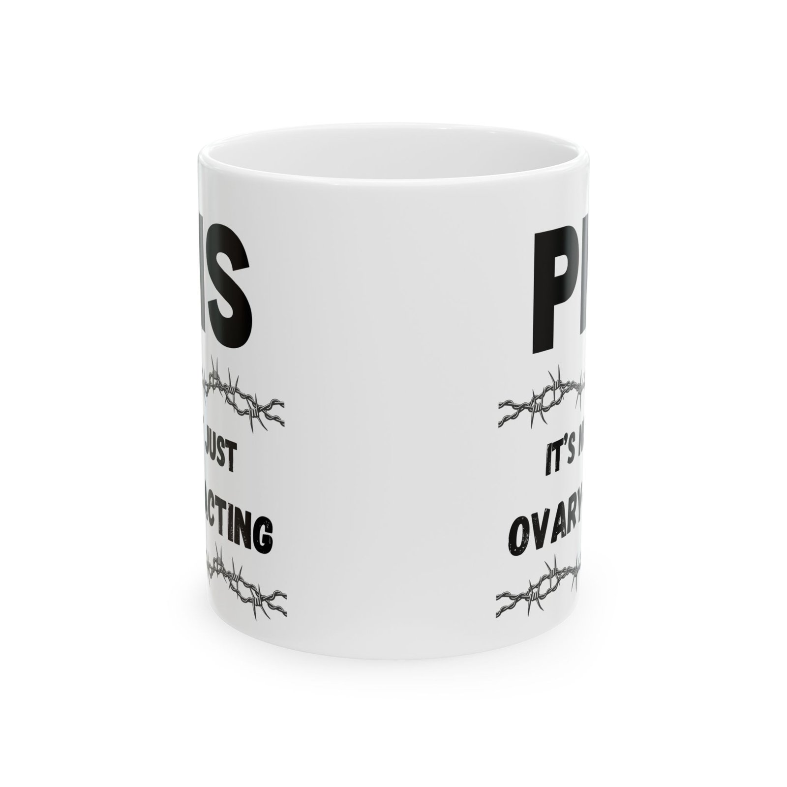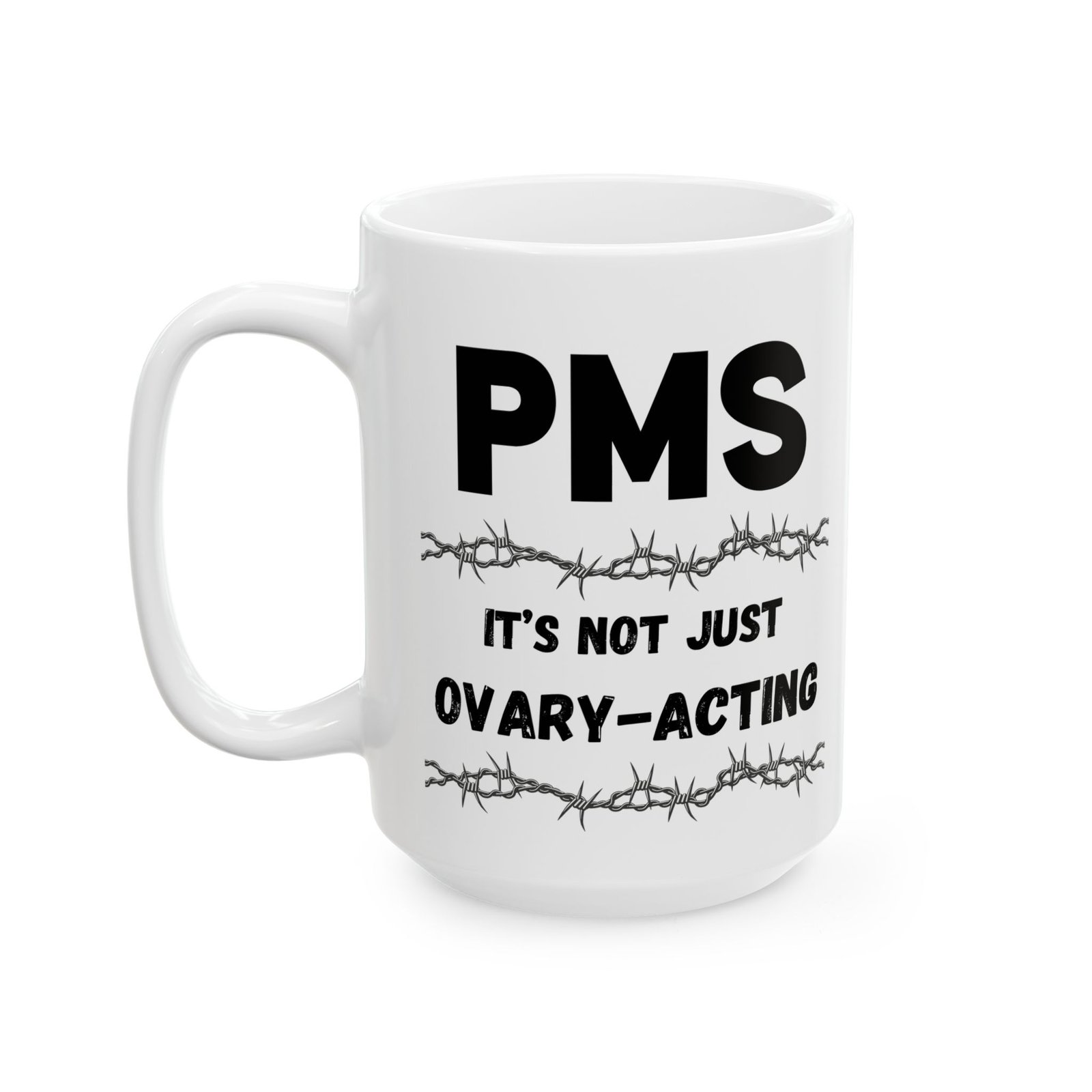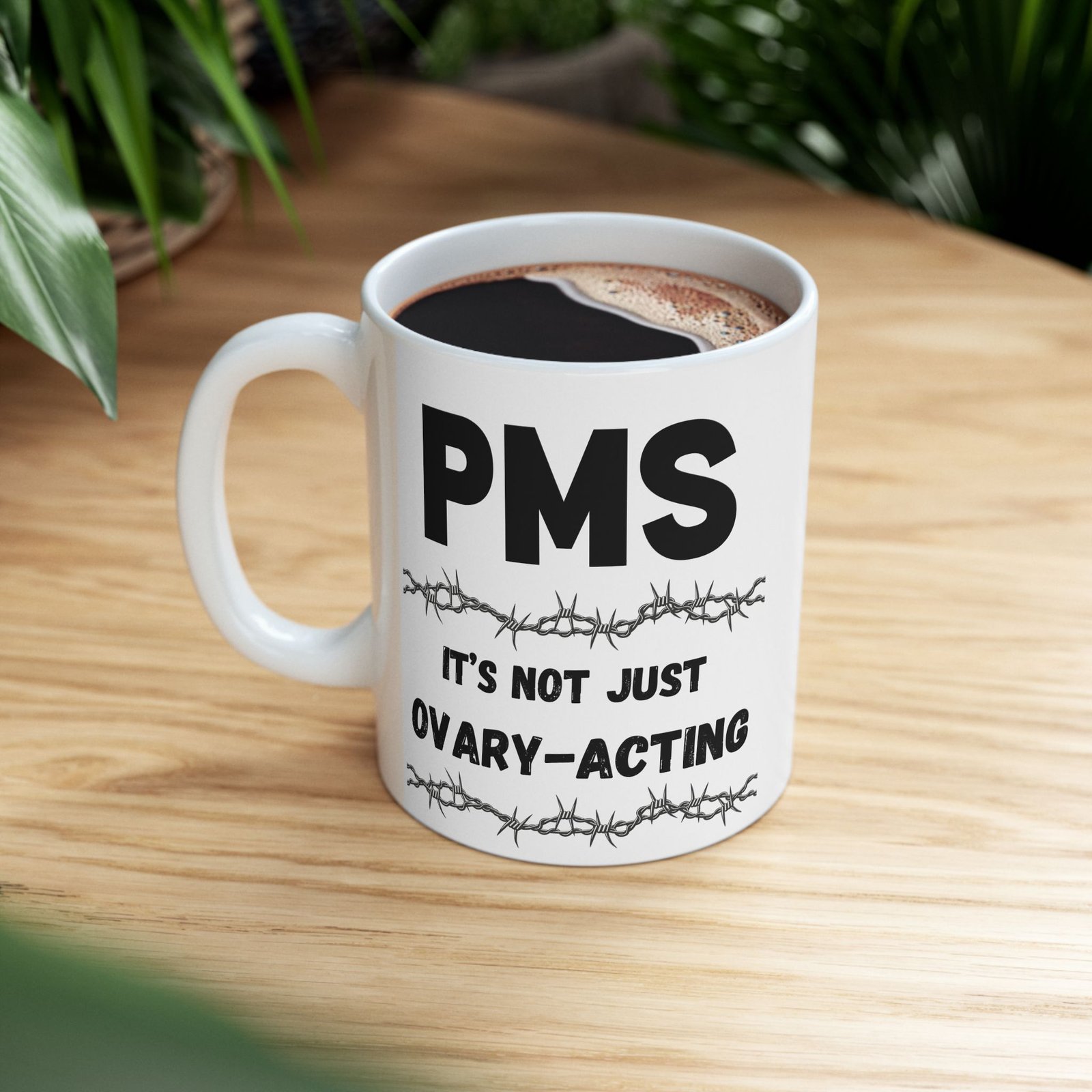 Meet the PMS “Not Just Ovary-Acting” Mug—the perfect blend of humor and attitude for those days when you’re feeling a little extra. Designed with a barbed wire motif and sarcastic phrase, this mug lets you sip your coffee while reminding the world that it’s not just hormones; it’s your personality! Available in 11oz and 15oz sizes, it’s perfect for every mood and morning. Made from high-quality ceramic, this mug is microwave and dishwasher safe, keeping it convenient and ready to use. Whether it’s a treat for yourself or a gift for that sarcastic friend, this mug is bound to get laughs and maybe a few knowing nods.