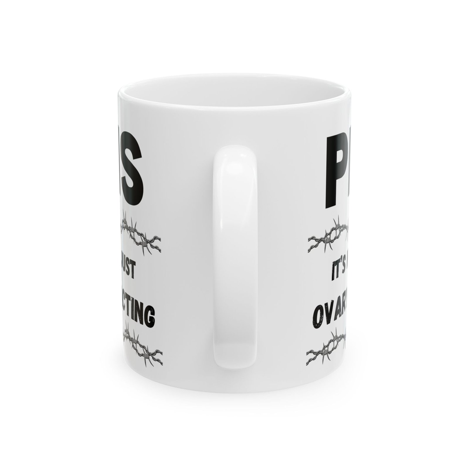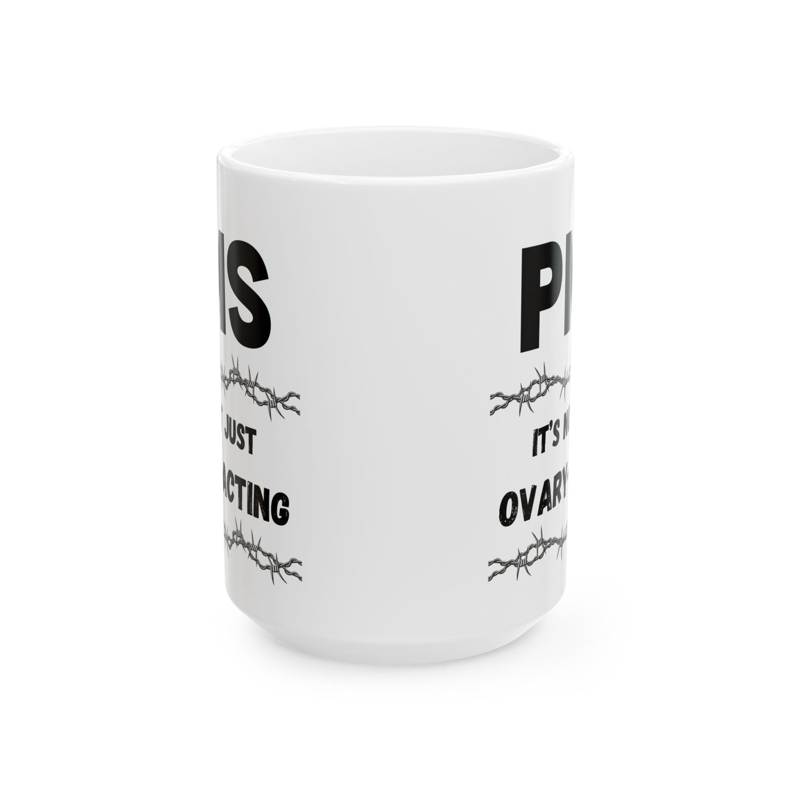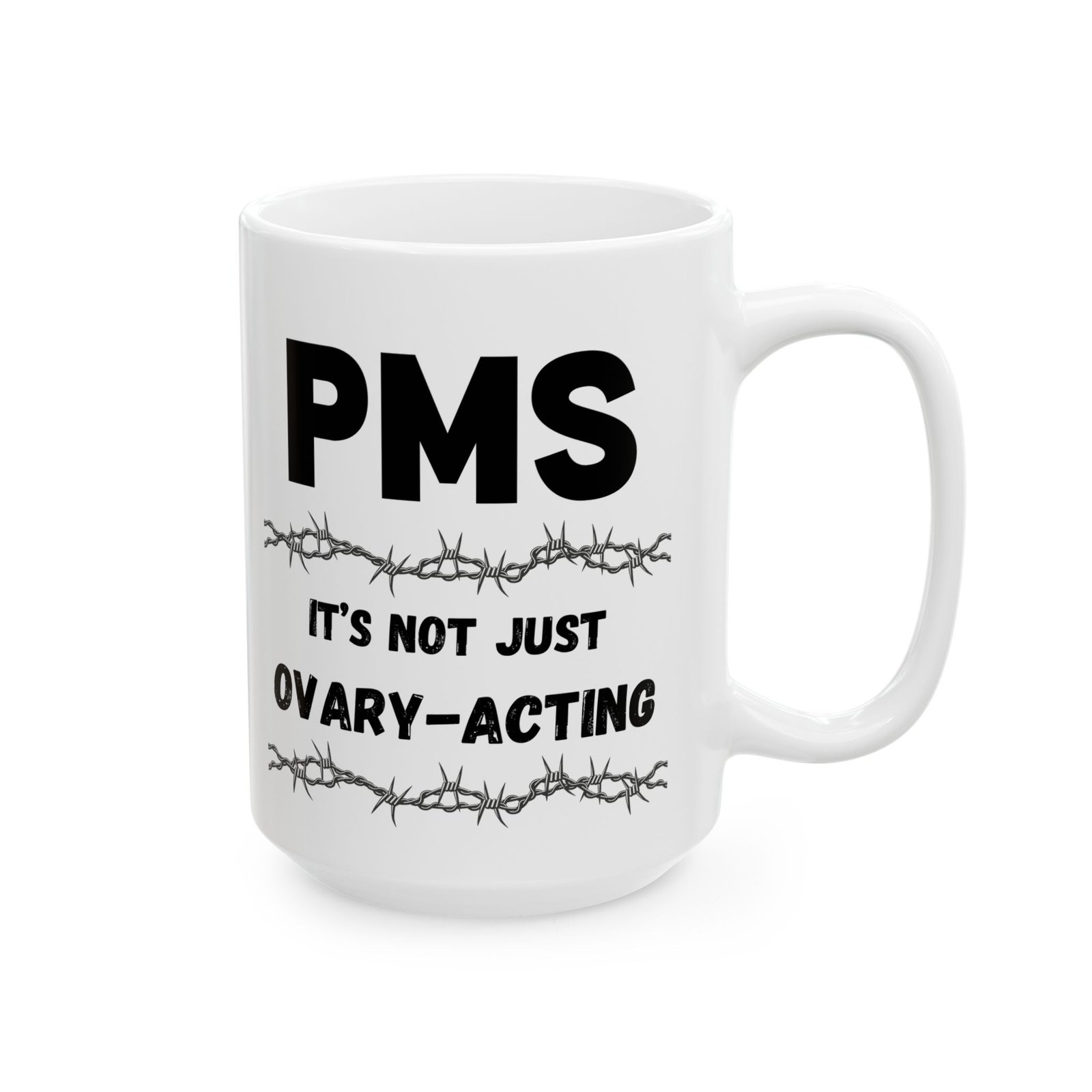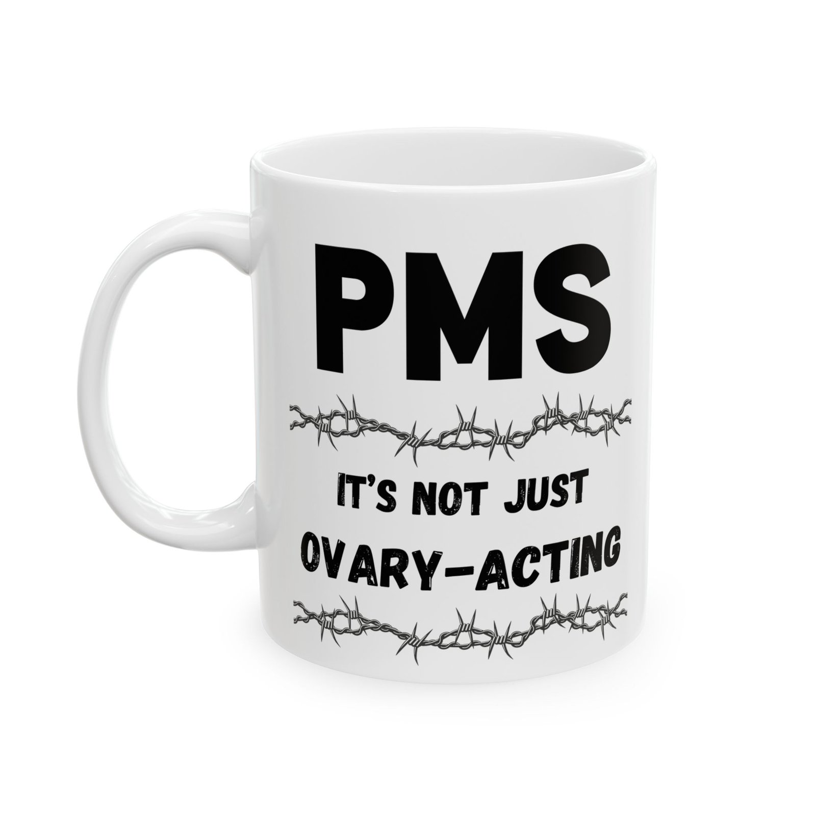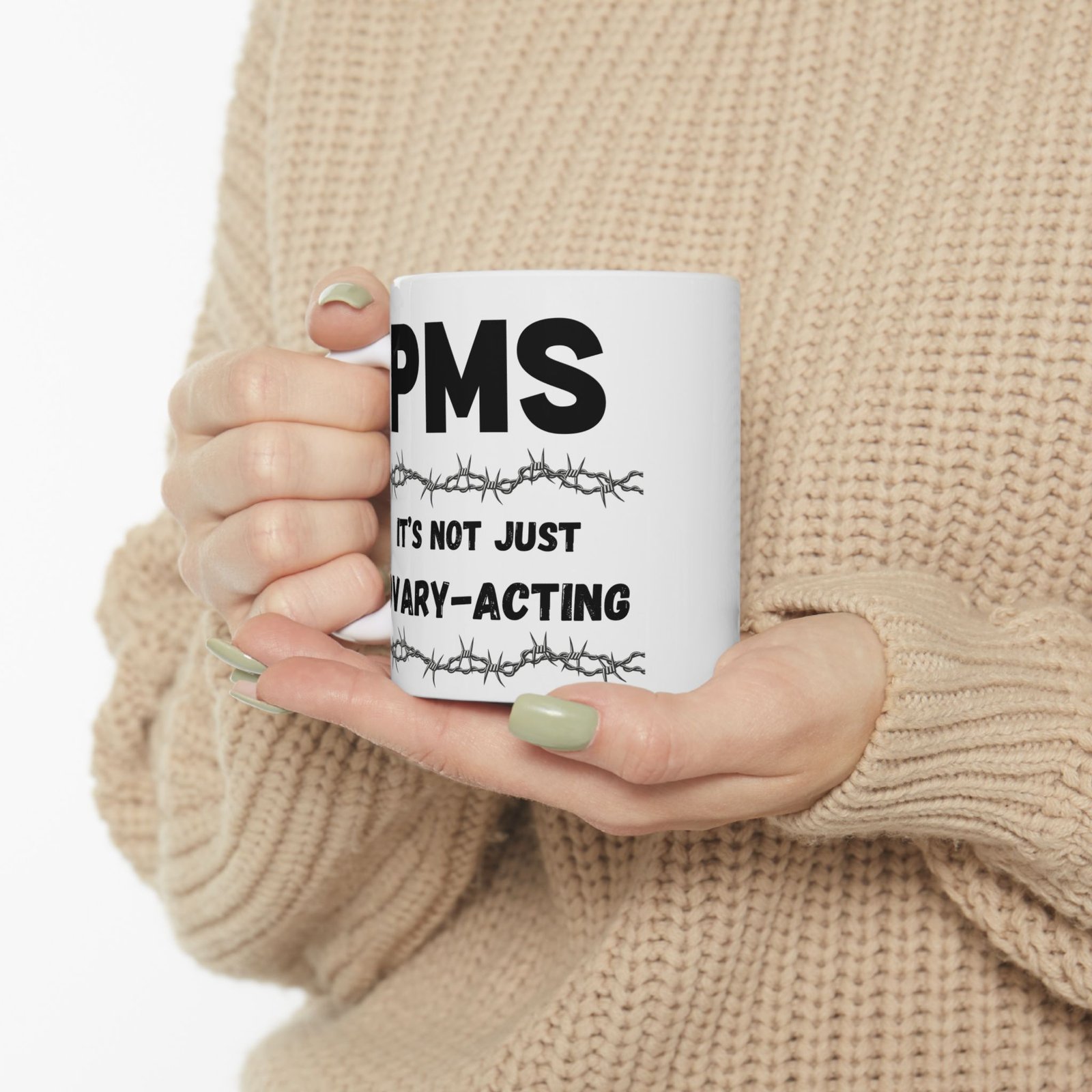 Meet the PMS “Not Just Ovary-Acting” Mug—the perfect blend of humor and attitude for those days when you’re feeling a little extra. Designed with a barbed wire motif and sarcastic phrase, this mug lets you sip your coffee while reminding the world that it’s not just hormones; it’s your personality! Available in 11oz and 15oz sizes, it’s perfect for every mood and morning. Made from high-quality ceramic, this mug is microwave and dishwasher safe, keeping it convenient and ready to use. Whether it’s a treat for yourself or a gift for that sarcastic friend, this mug is bound to get laughs and maybe a few knowing nods.