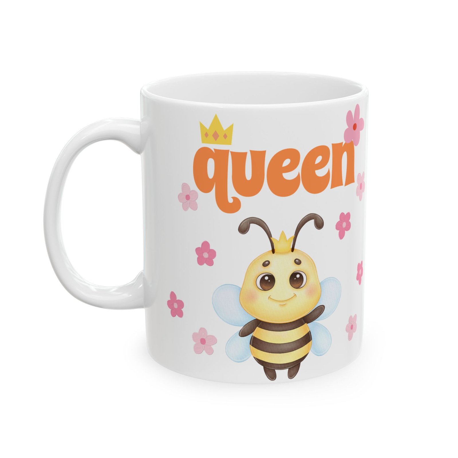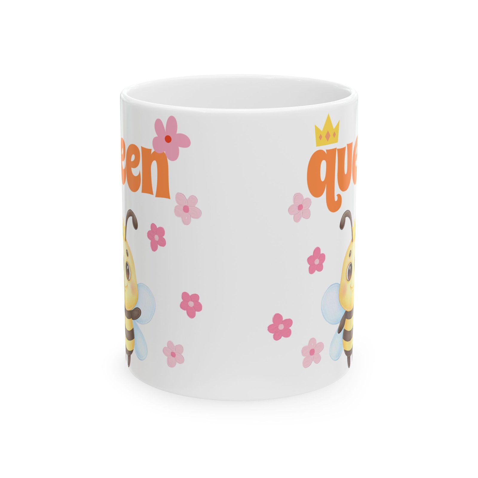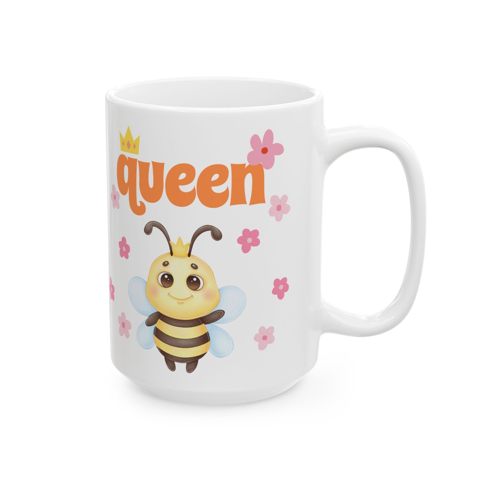 Available in both 11oz and 15oz sizes, this mug features a cute bee wearing a crown, surrounded by cheerful little flowers.