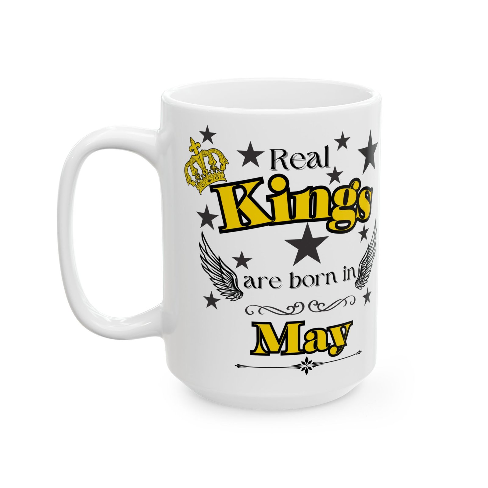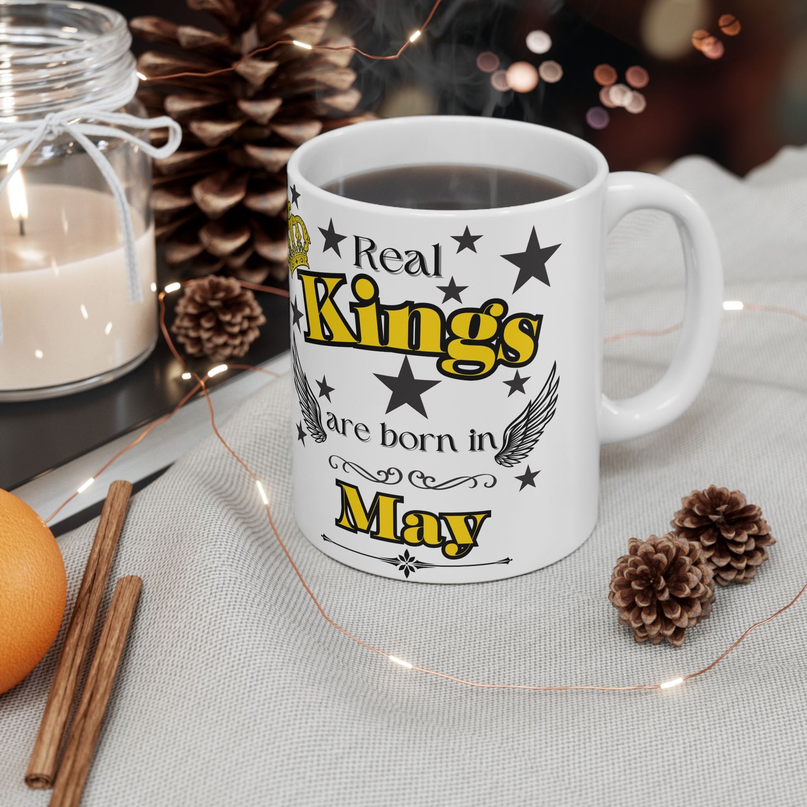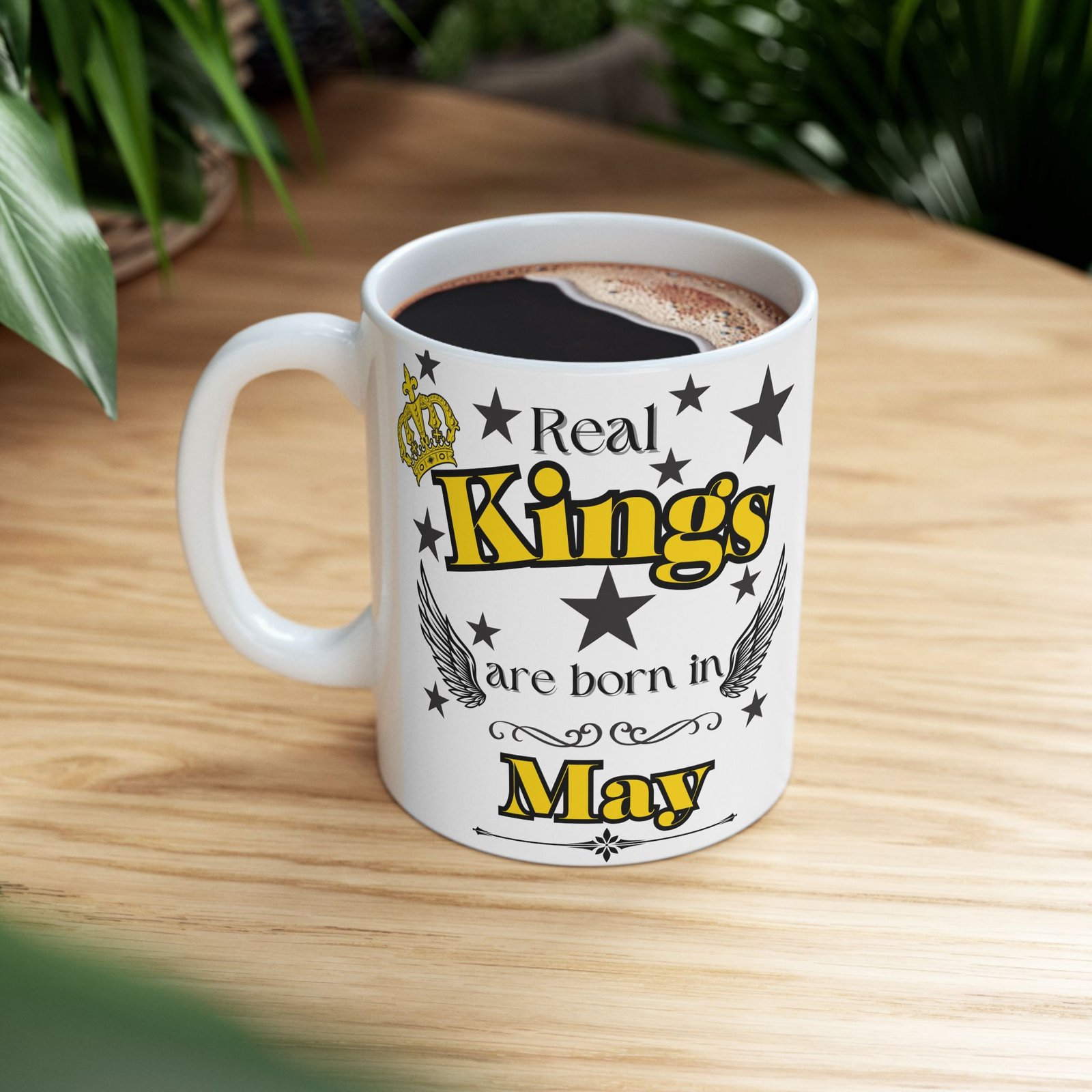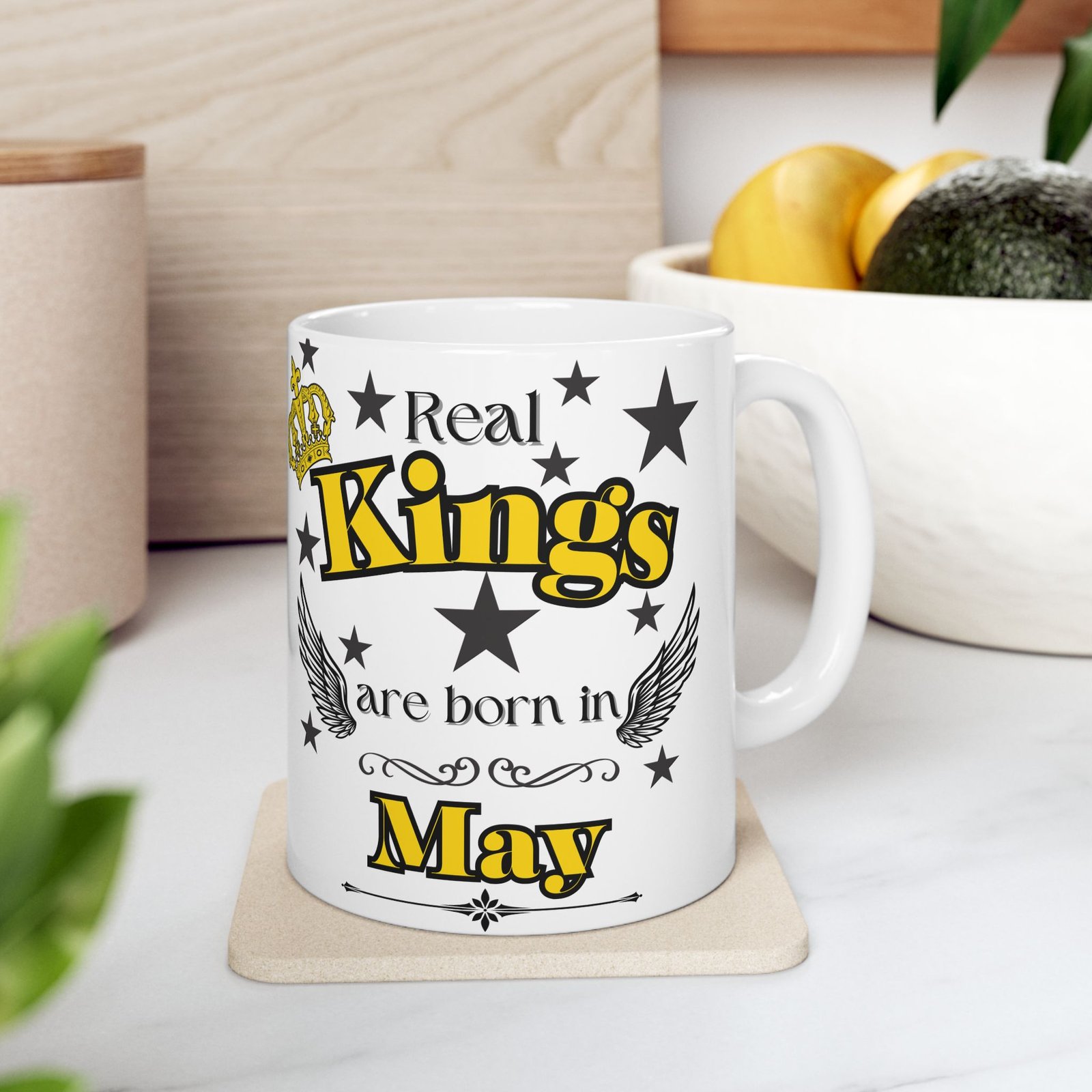 Show your royal pride with the “Real Kings Are Born in May” mug!
