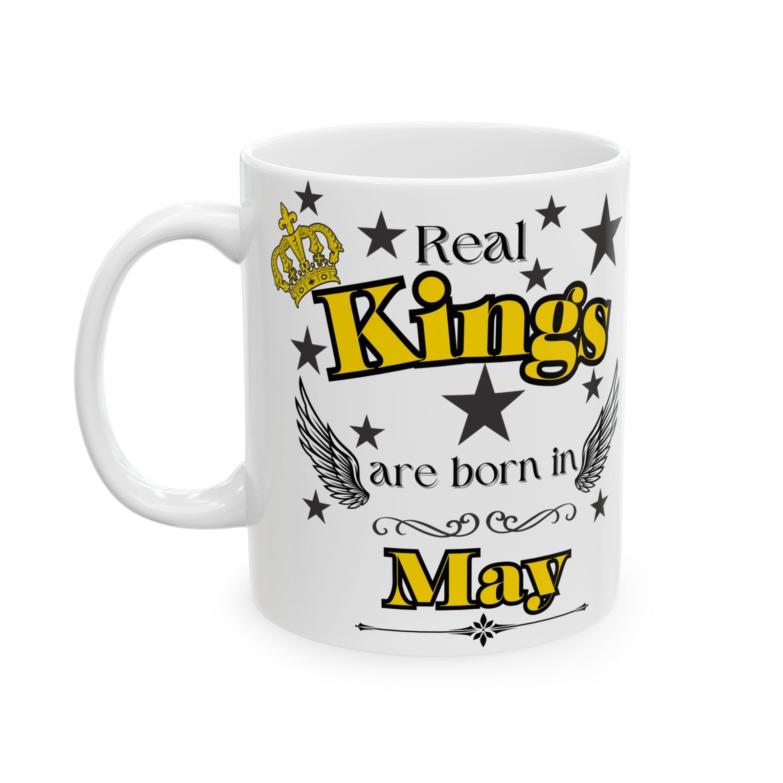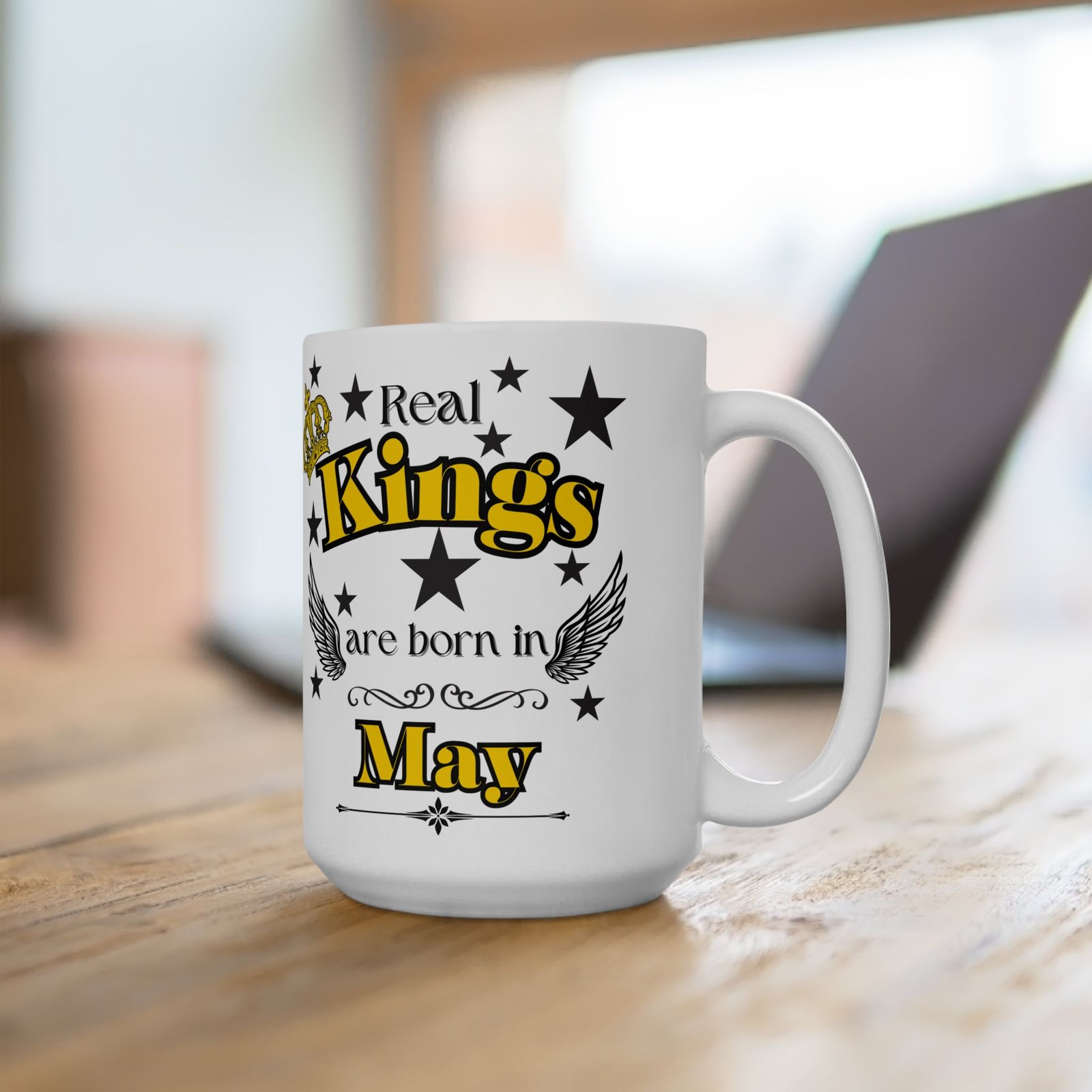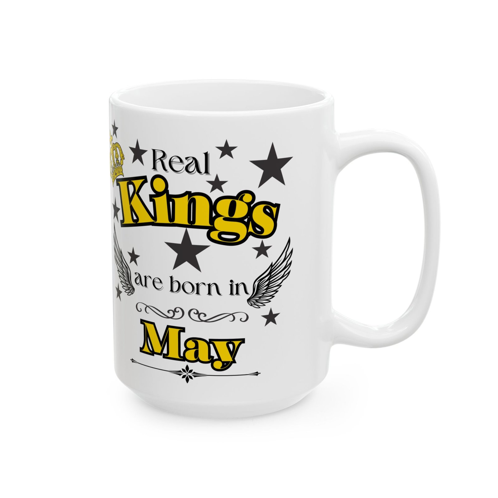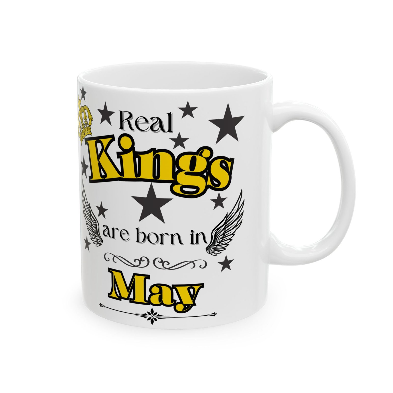 Show your royal pride with the “Real Kings Are Born in May” mug!