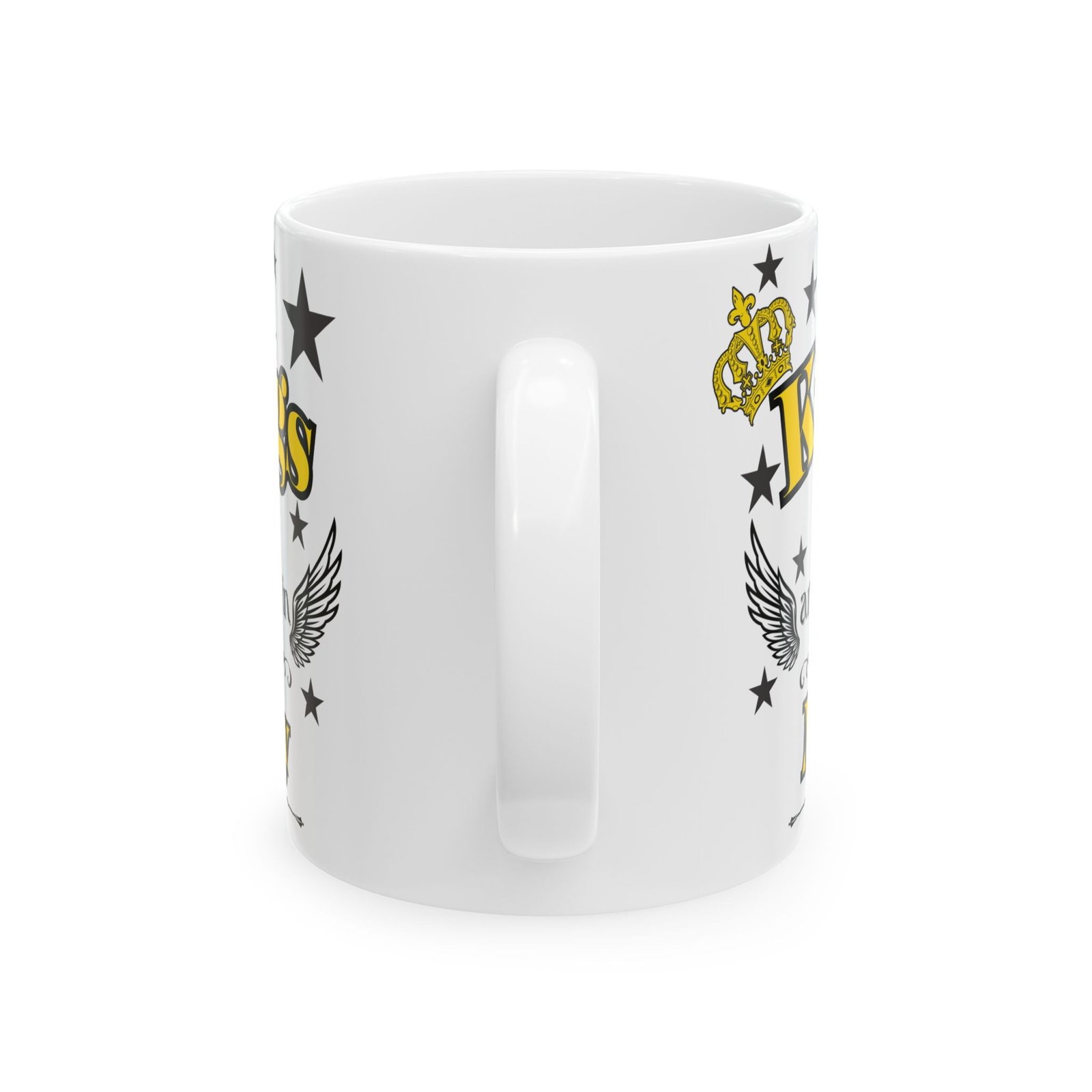 Featuring a striking gold and black crown design, it adds a touch of sophistication to every sip. The high-gloss finish makes it a standout piece in any mug collection.